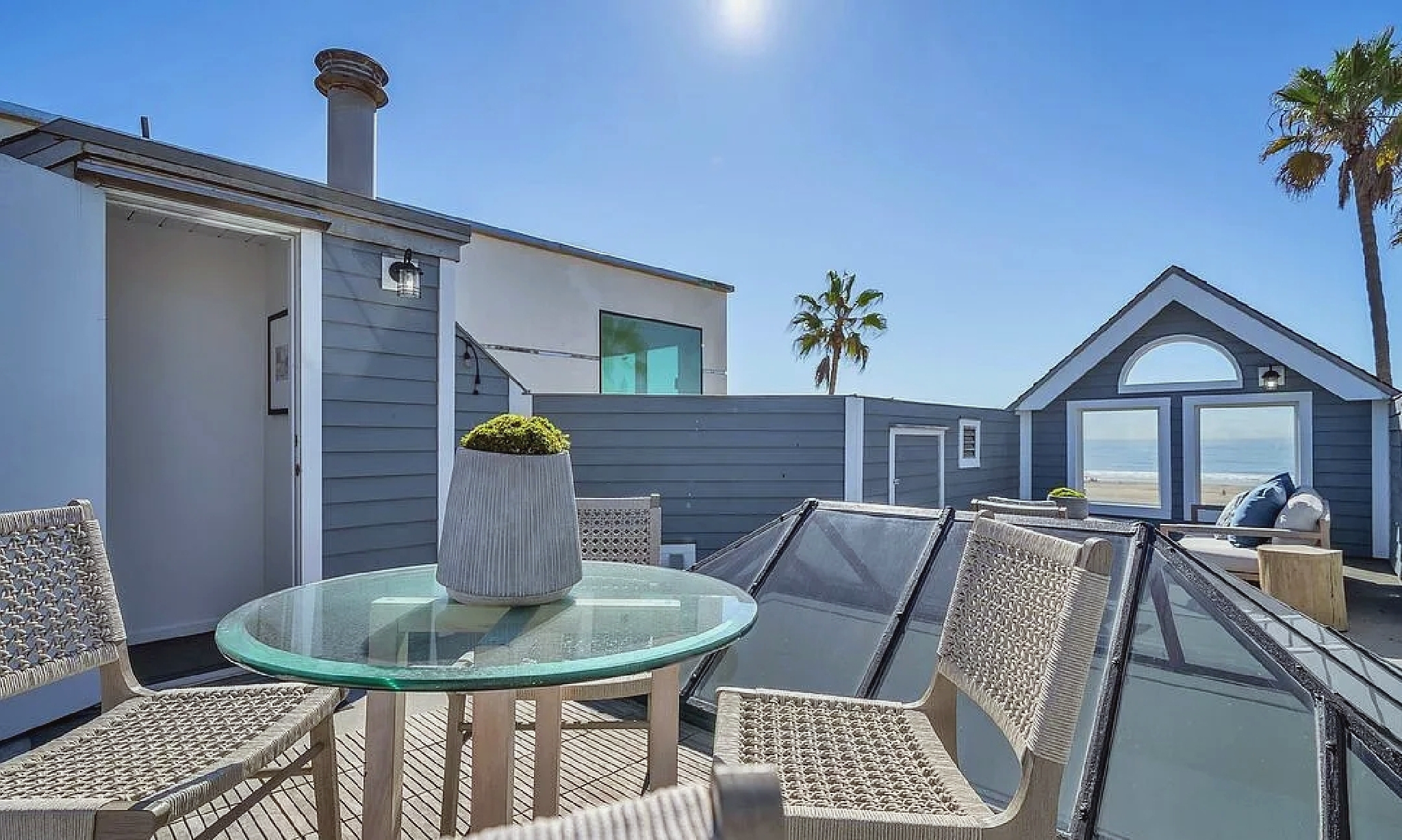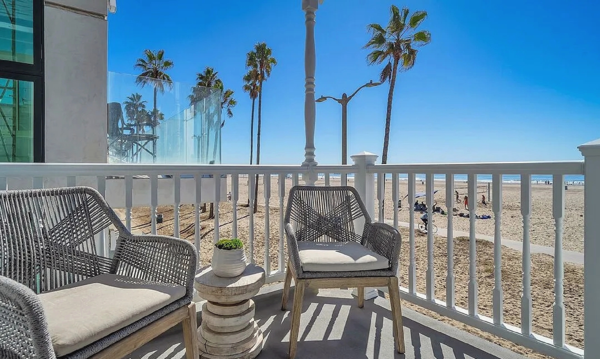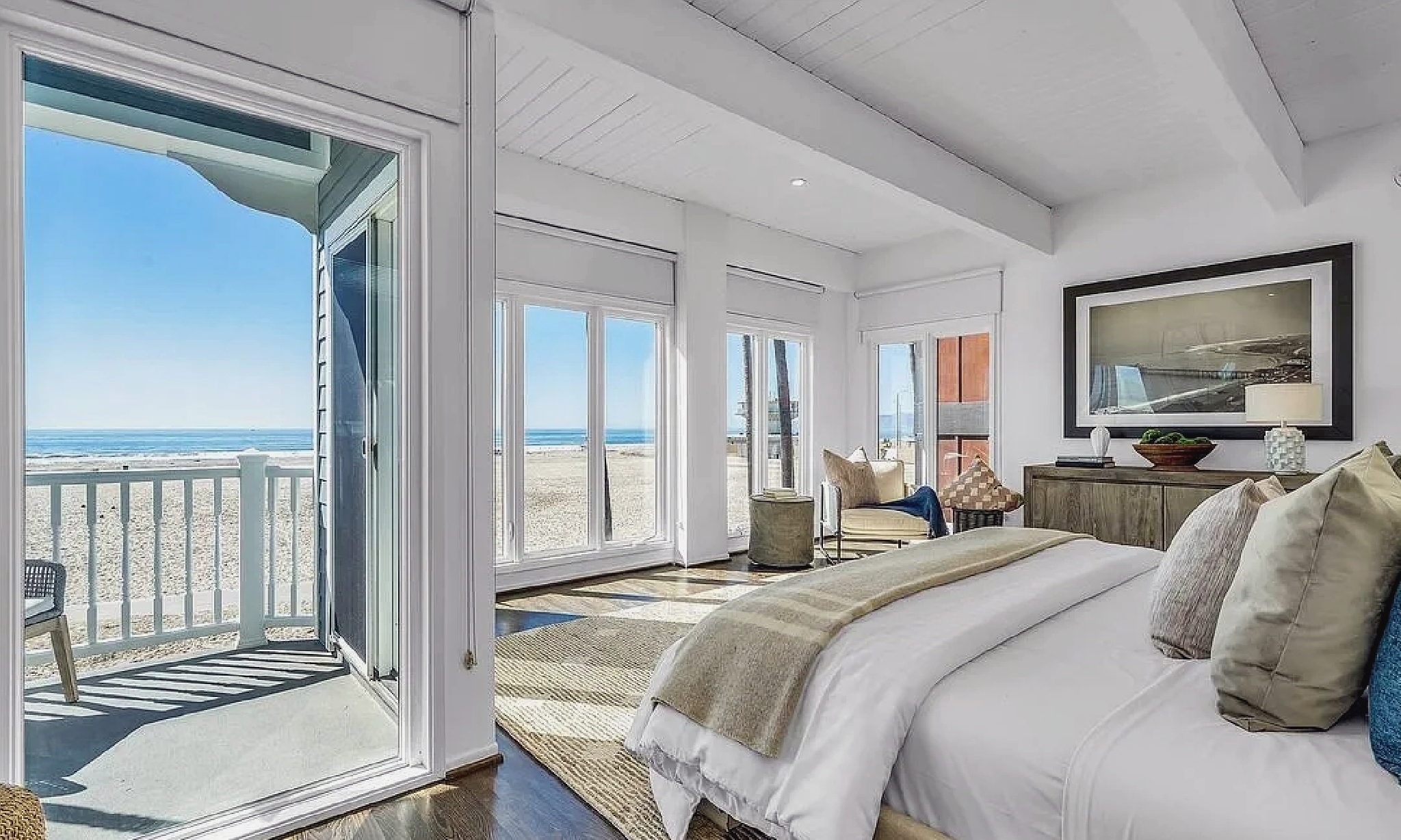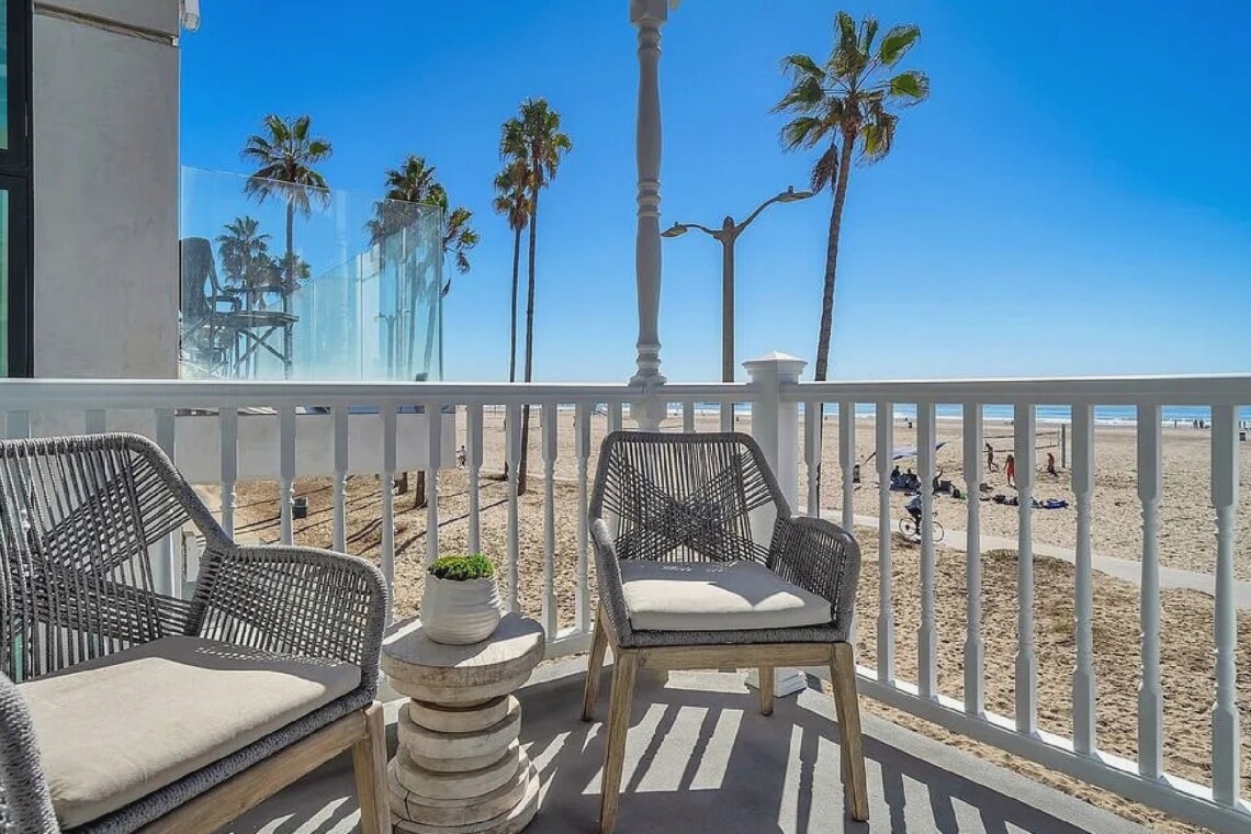 This rare beachfront residence offers panoramic, front-facing views of the Pacific from the living room, primary suite, and upper deck. Multiple balconies and open living spaces make it ideal for enjoying sunsets, beach walks, or relaxing by the ocean breeze. Inside, the home provides spacious bedrooms, updated baths, and inviting common areas designed for comfort and gatherings. Located directly on the sand, it sits steps from the Venice Boardwalk, Pier, Muscle Beach, and vibrant shops and restaurants. A true coastal retreat that captures the lively spirit of Venice Beach.