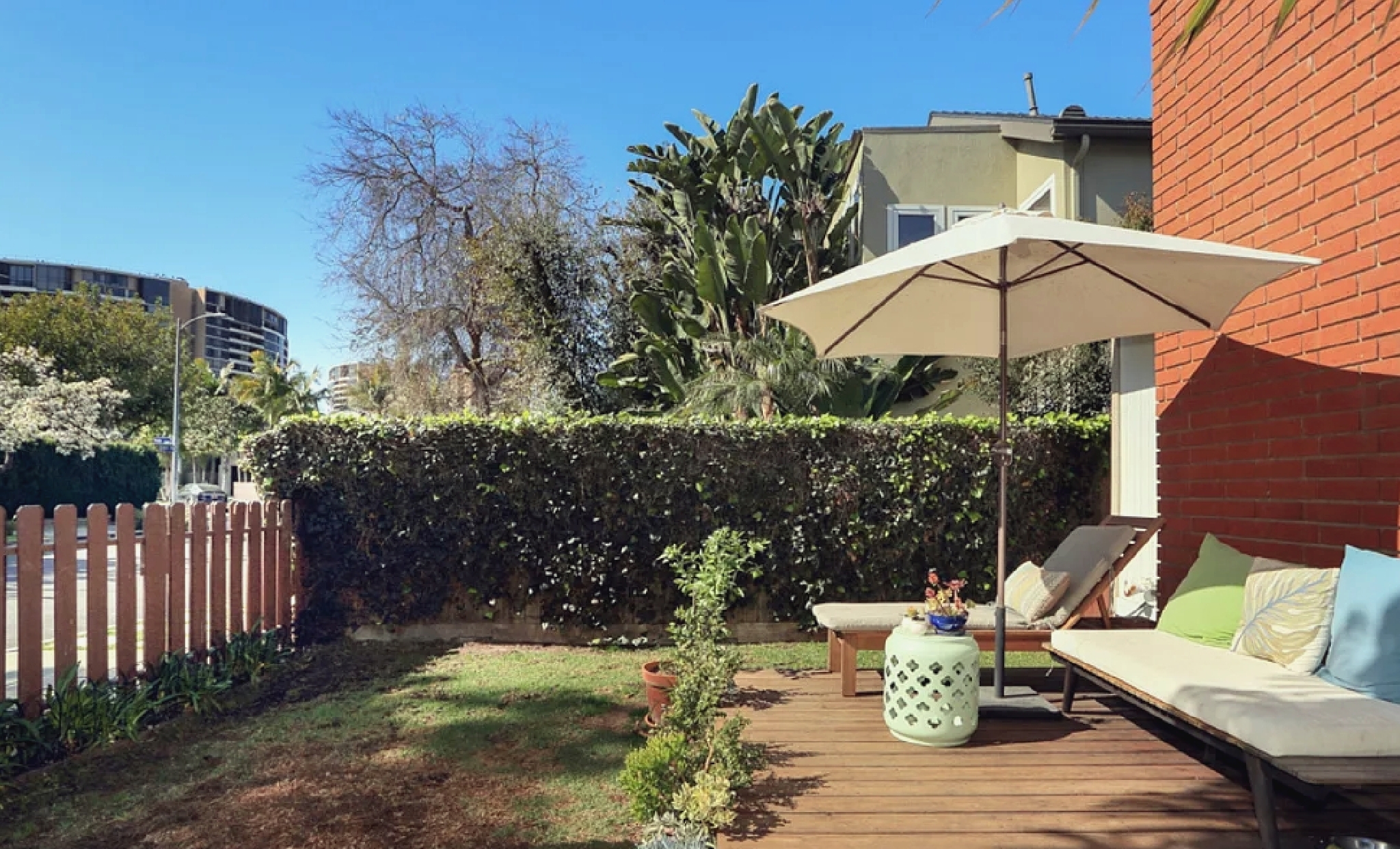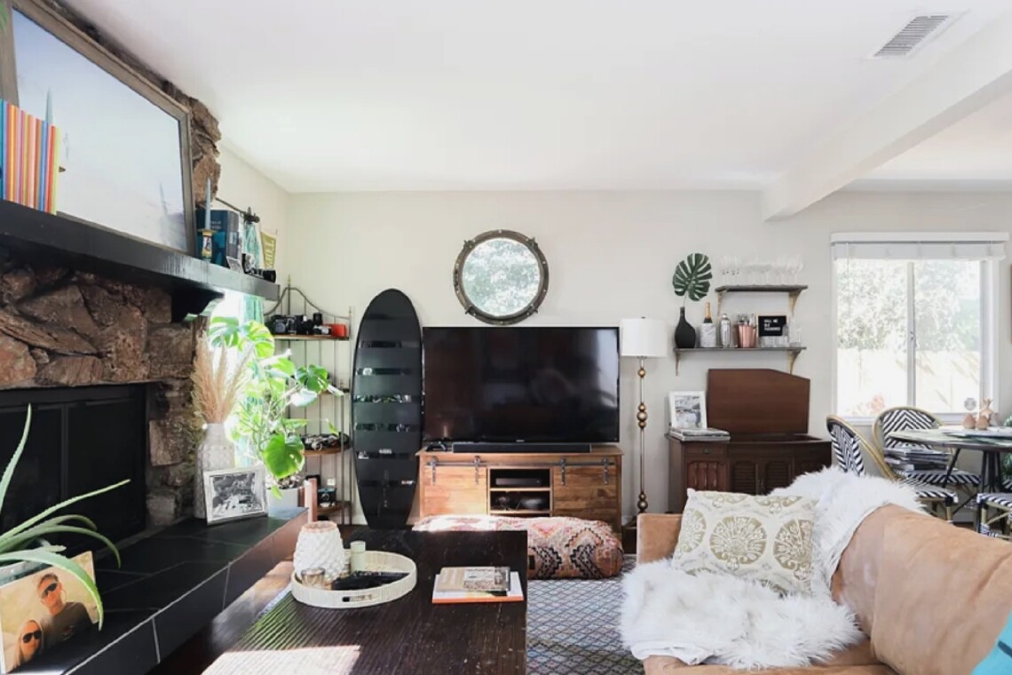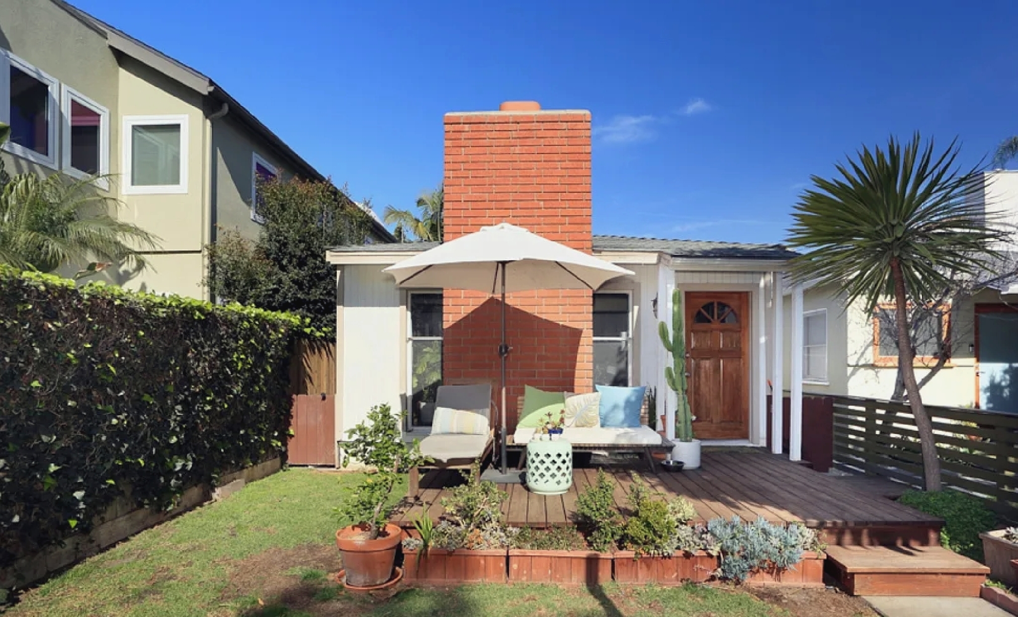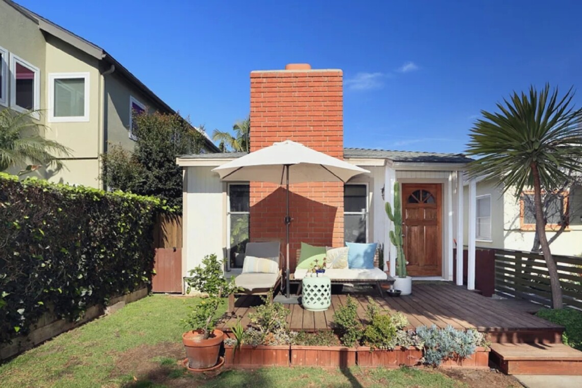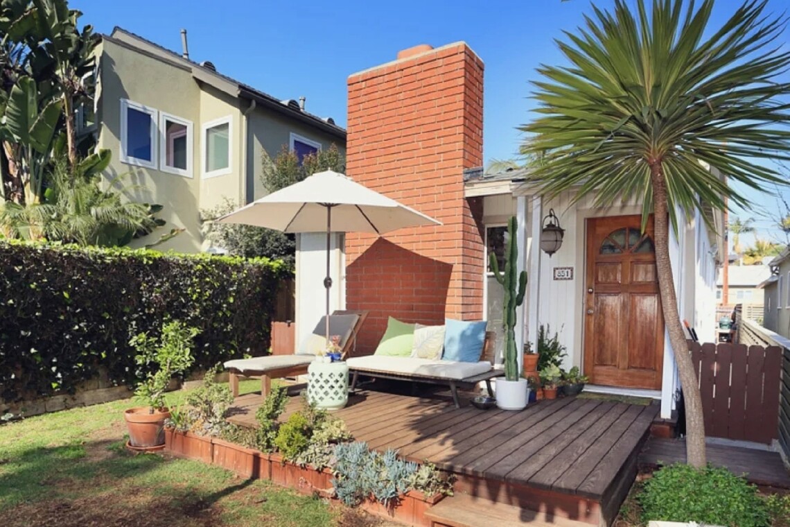 This quintessential beach bungalow captures the relaxed spirit of coastal living with a sun-filled private yard and inviting outdoor deck. A striking stone fireplace anchors the main living area, adding warmth and character to the open space. The kitchen connects seamlessly to the living area, while the rear access leads to a garage and covered carport, offering flexibility for parking or outdoor entertaining. Perfectly situated within walking distance to Abbot Kinney, the beach, and Marina dining spots, this home offers a rare mix of charm and convenience.