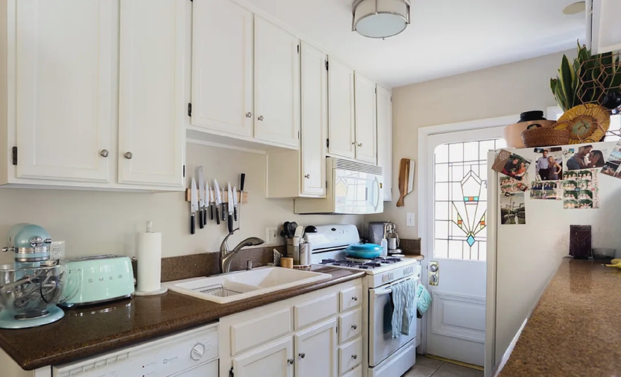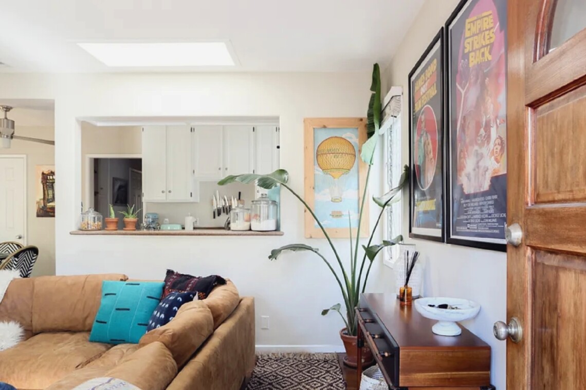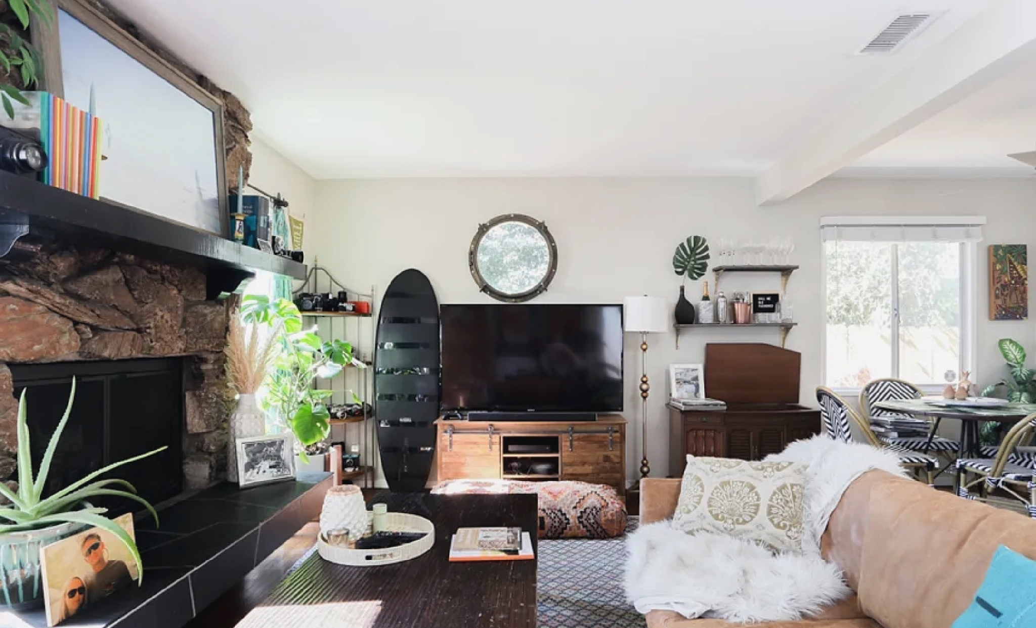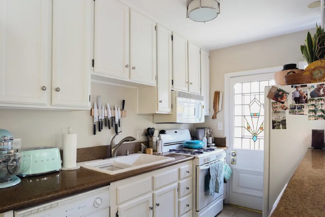 This quintessential beach bungalow captures the relaxed spirit of coastal living with a sun-filled private yard and inviting outdoor deck. A striking stone fireplace anchors the main living area, adding warmth and character to the open space. The kitchen connects seamlessly to the living area, while the rear access leads to a garage and covered carport, offering flexibility for parking or outdoor entertaining. Perfectly situated within walking distance to Abbot Kinney, the beach, and Marina dining spots, this home offers a rare mix of charm and convenience.