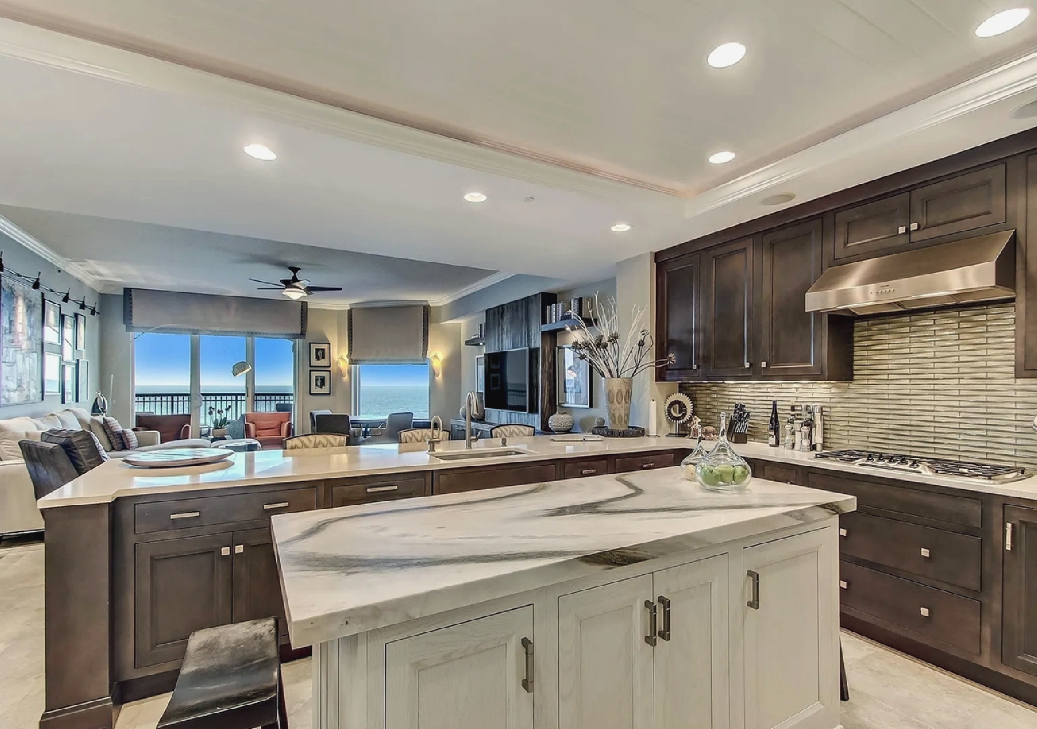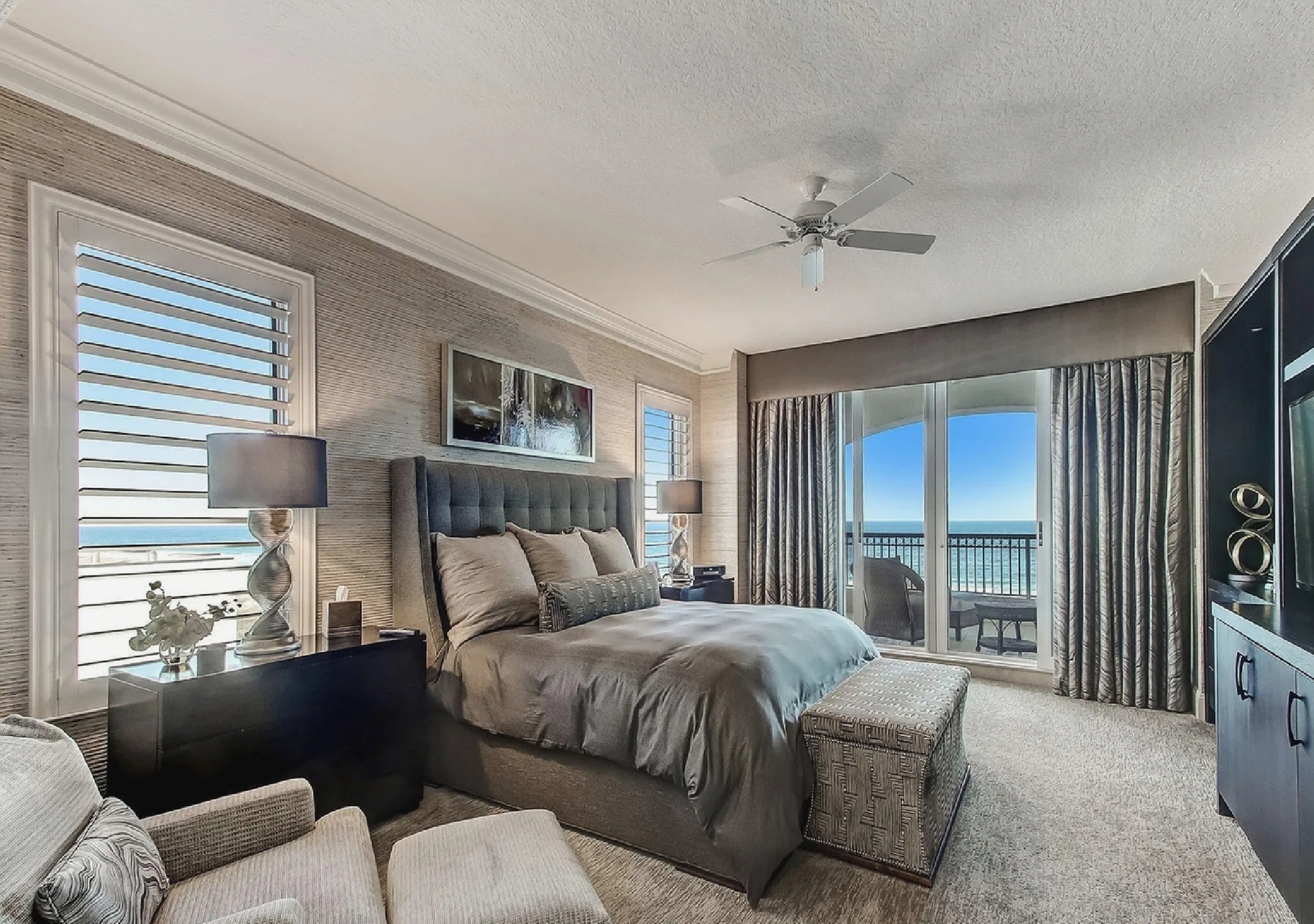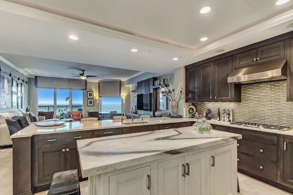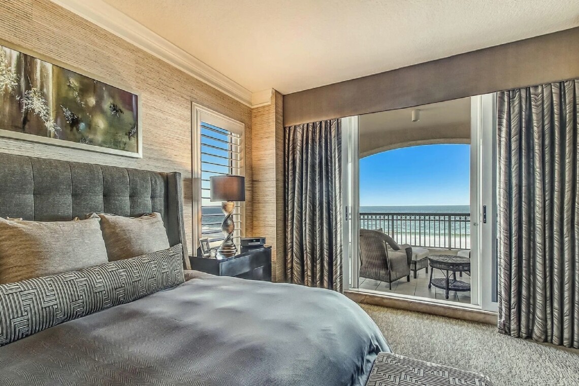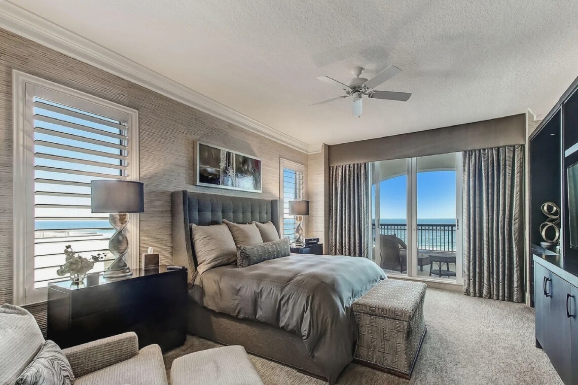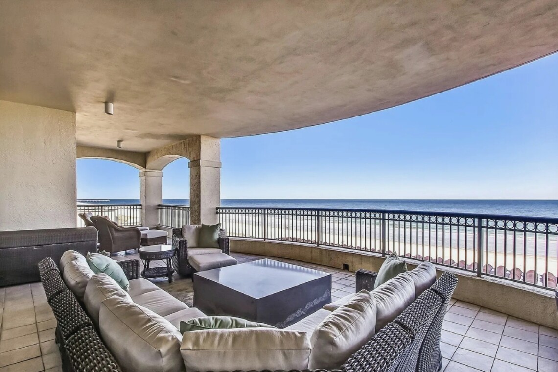 This four bedroom, five bathroom oceanfront condo at the Marbella Condominium offers more than 5,300 square feet of refined living space with sweeping views of the Atlantic from three private balconies, including an oceanfront terrace with a summer kitchen ideal for entertaining. The interior features high ceilings, an open layout, and a gourmet kitchen with Sub-Zero appliances, while one of the bedrooms has been converted into a private office for guest convenience. Building amenities include a heated beachfront pool, fitness center, and secure garage parking, creating a perfect blend of comfort and luxury for a memorable stay in Jacksonville Beach.