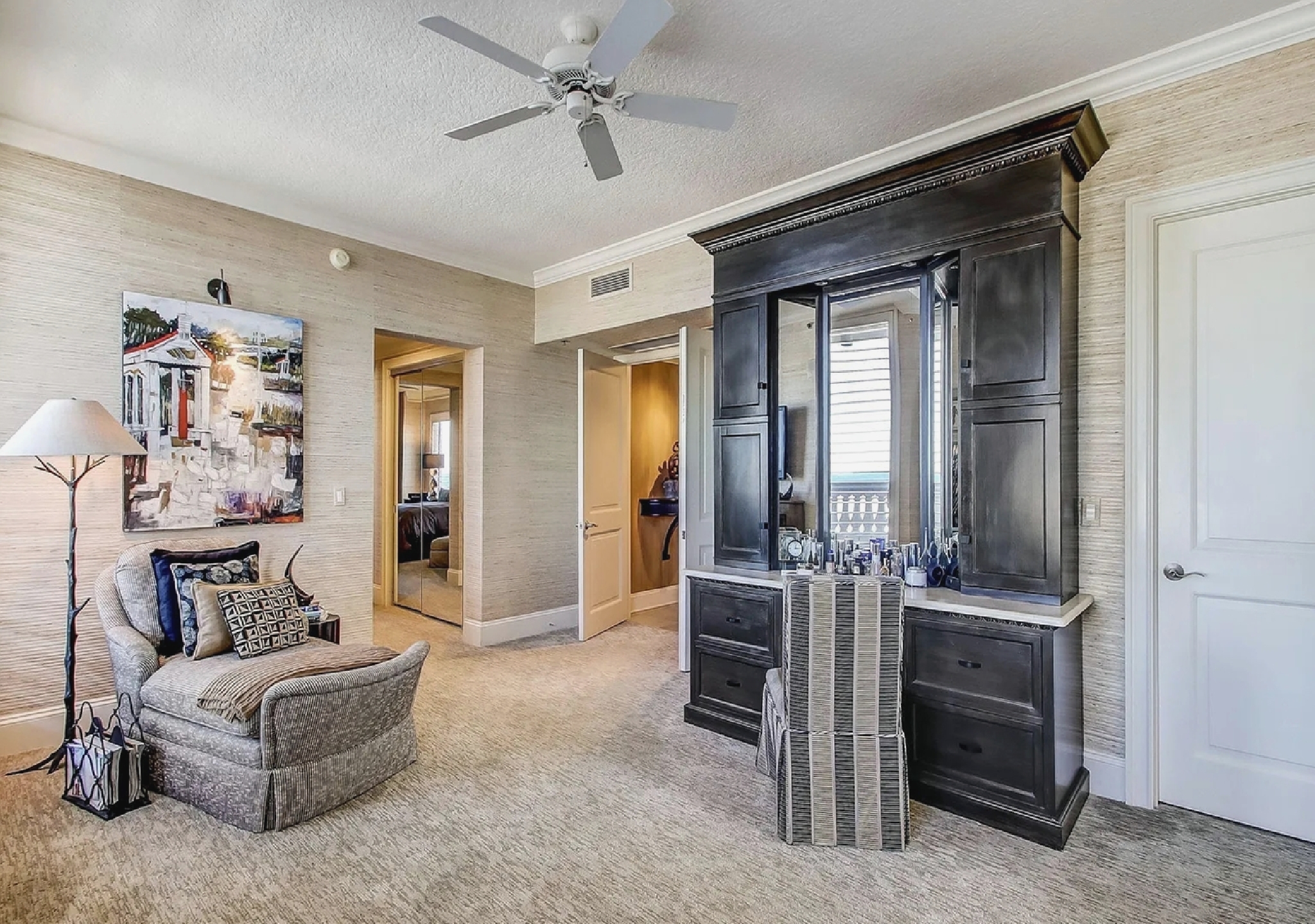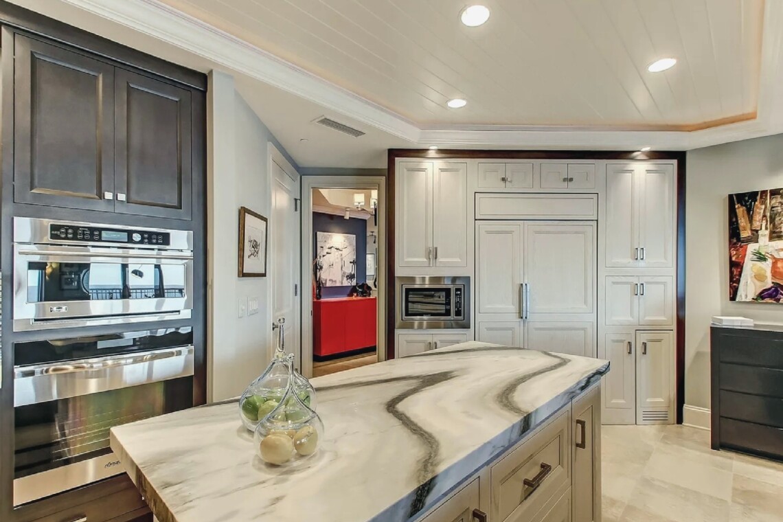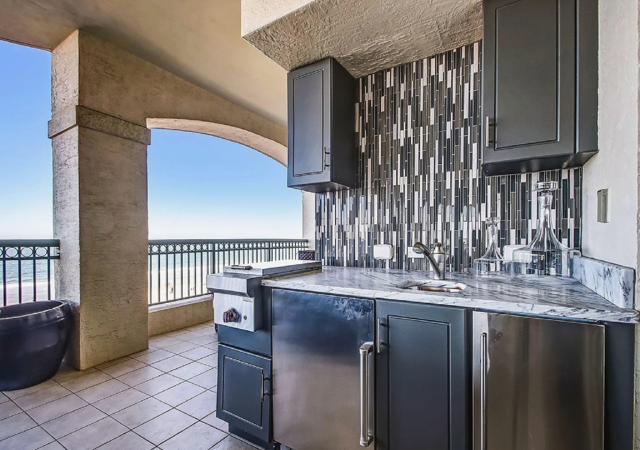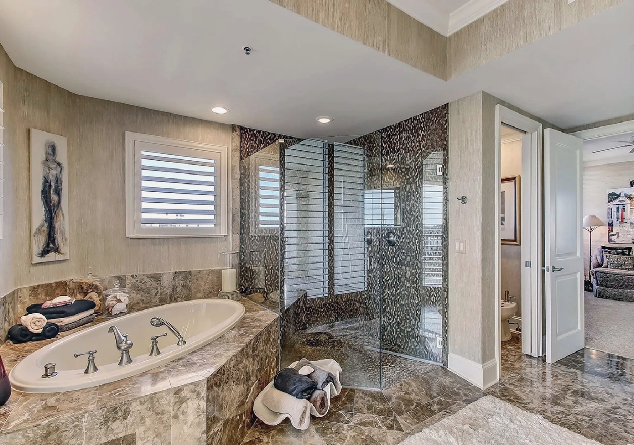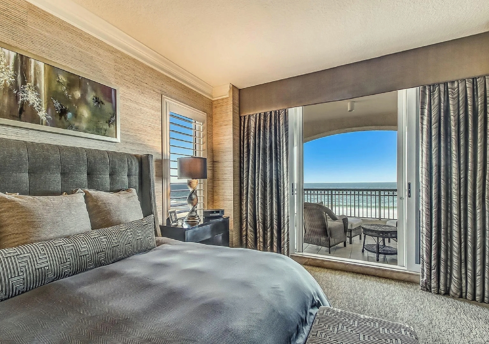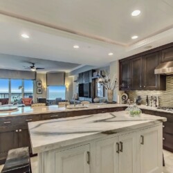 This four bedroom, five bathroom oceanfront condo at the Marbella Condominium offers more than 5,300 square feet of refined living space with sweeping views of the Atlantic from three private balconies, including an oceanfront terrace with a summer kitchen ideal for entertaining. The interior features high ceilings, an open layout, and a gourmet kitchen with Sub-Zero appliances, while one of the bedrooms has been converted into a private office for guest convenience. Building amenities include a heated beachfront pool, fitness center, and secure garage parking, creating a perfect blend of comfort and luxury for a memorable stay in Jacksonville Beach.