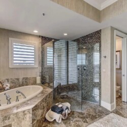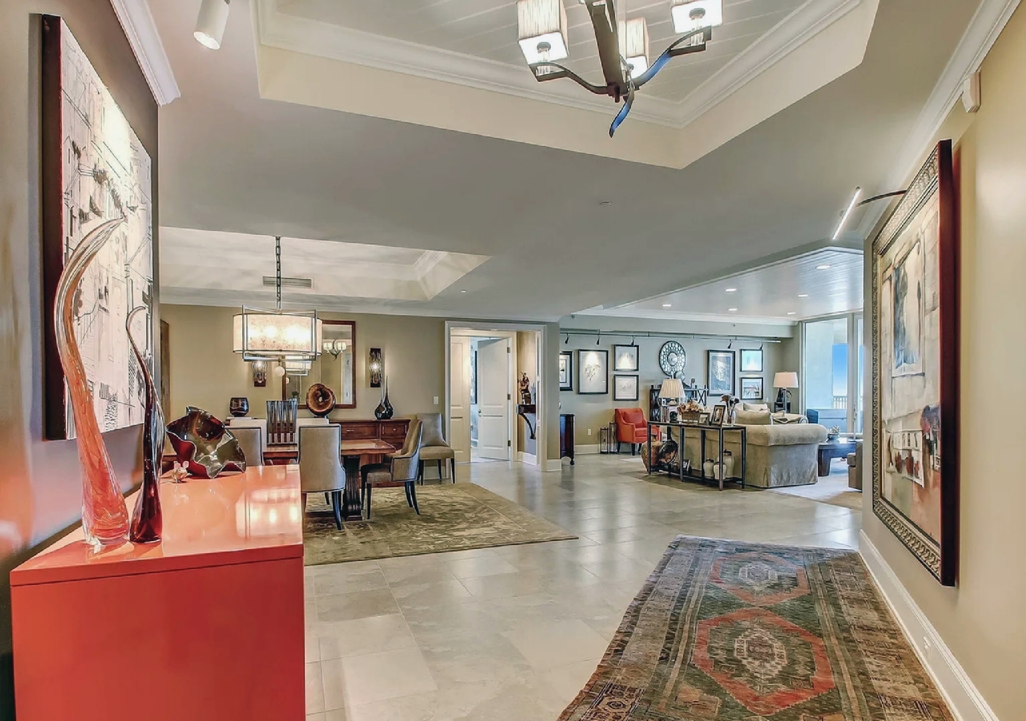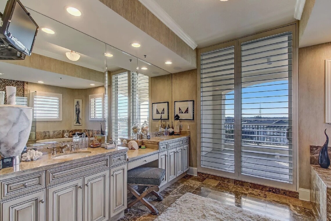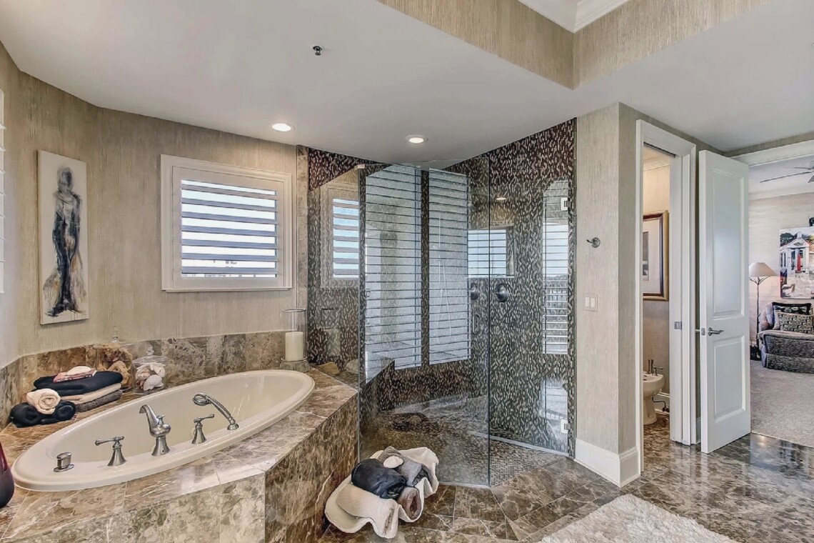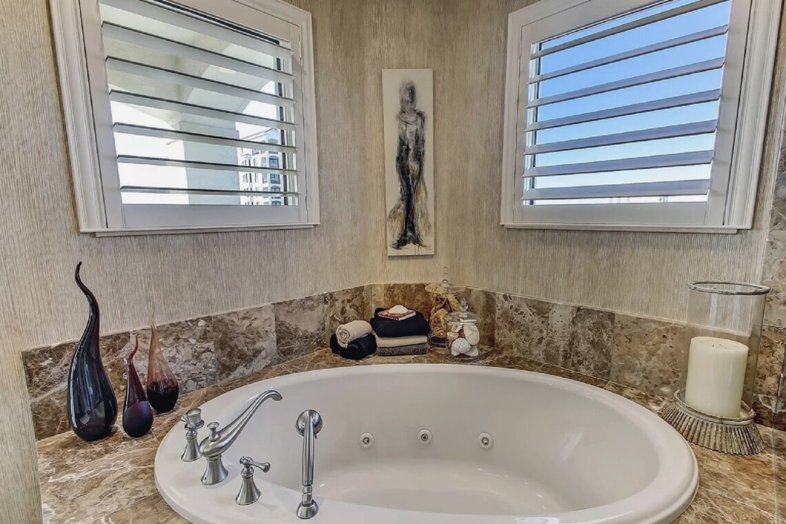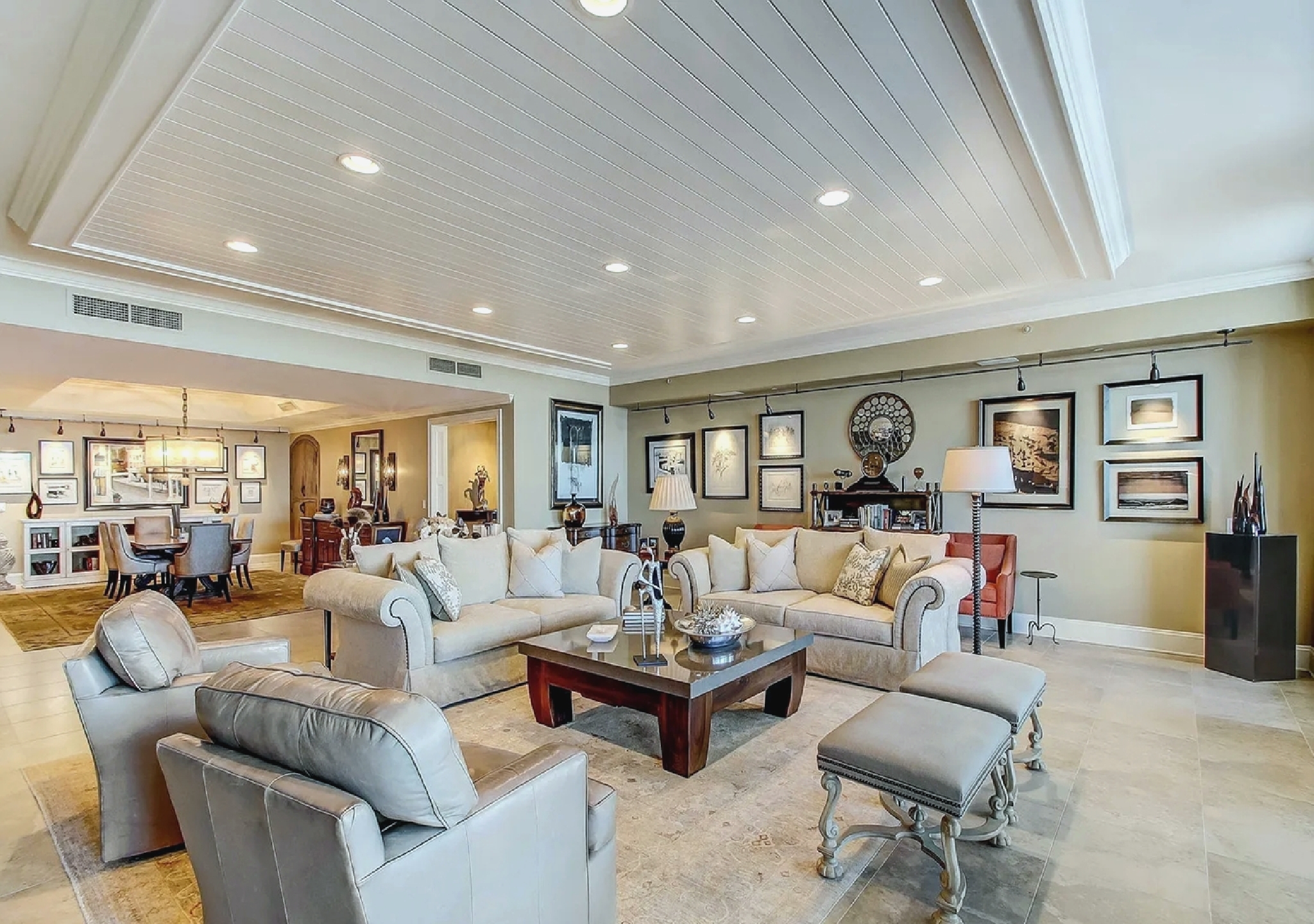This four bedroom, five bathroom oceanfront condo at the Marbella Condominium offers more than 5,300 square feet of refined living space with sweeping views of the Atlantic from three private balconies, including an oceanfront terrace with a summer kitchen ideal for entertaining. The interior features high ceilings, an open layout, and a gourmet kitchen with Sub-Zero appliances, while one of the bedrooms has been converted into a private office for guest convenience. Building amenities include a heated beachfront pool, fitness center, and secure garage parking, creating a perfect blend of comfort and luxury for a memorable stay in Jacksonville Beach.