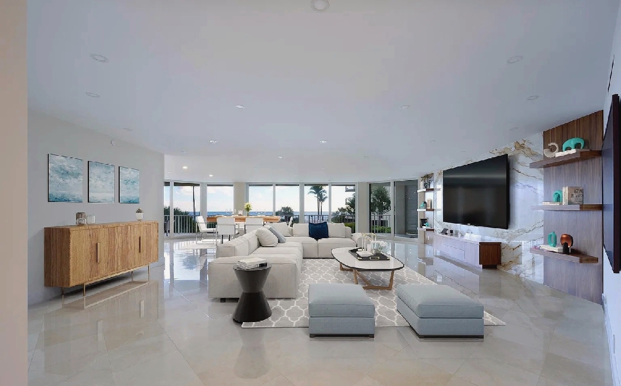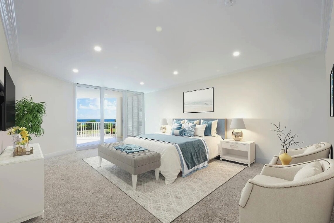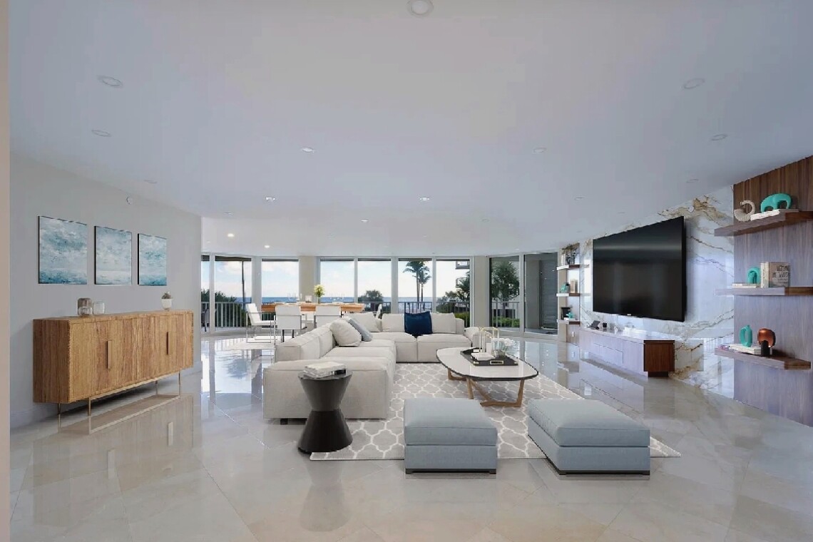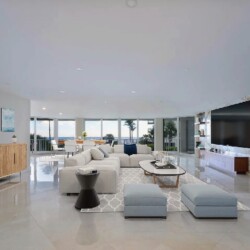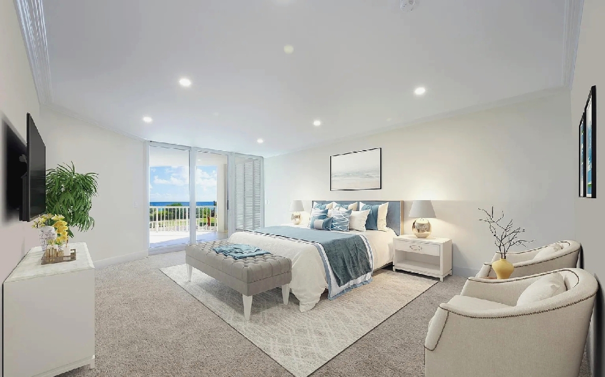 This four bedroom, six bathroom condo offers over 4,300 square feet of renovated living space with 780 feet of terraces facing east and west for sunrise and sunset ocean views. Highlights include a DownsView kitchen with Miele appliances, a primary suite with dual baths, porcelain and marble finishes, and three guest bedrooms plus a den. Private elevator access, a poolside cabana, and amenities such as tennis courts, a pool, gym, billiard and social rooms, and 24-hour concierge service make this residence an exceptional Palm Beach retreat.