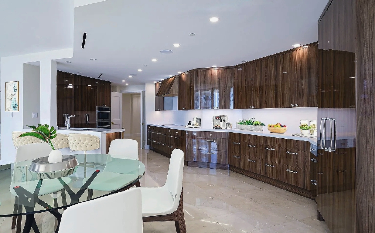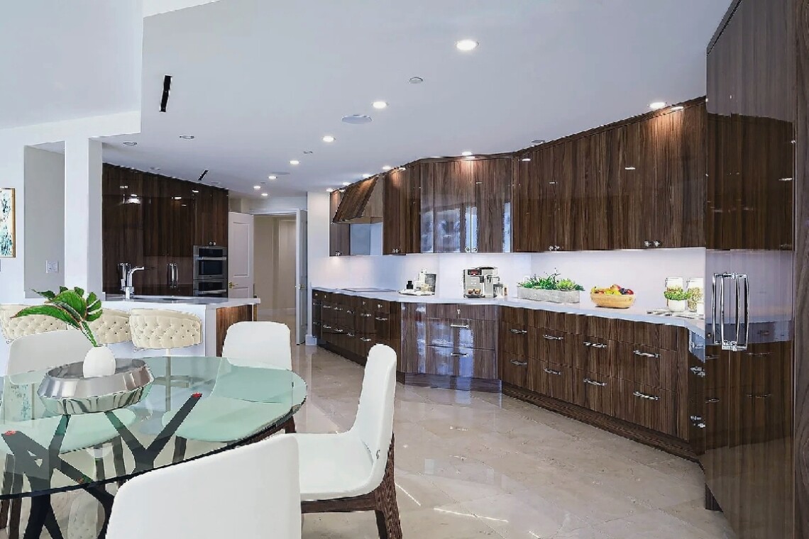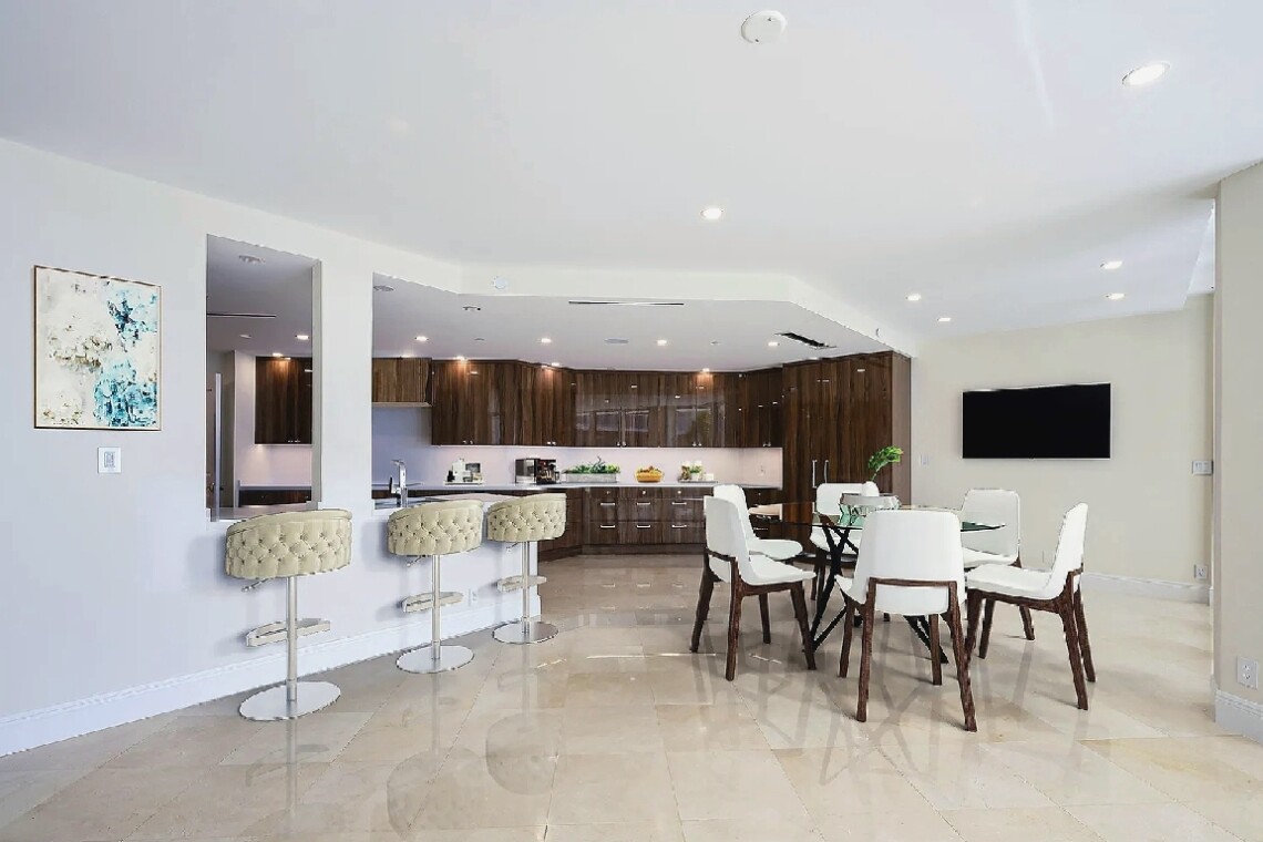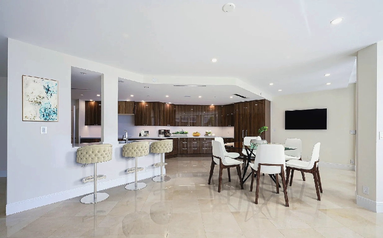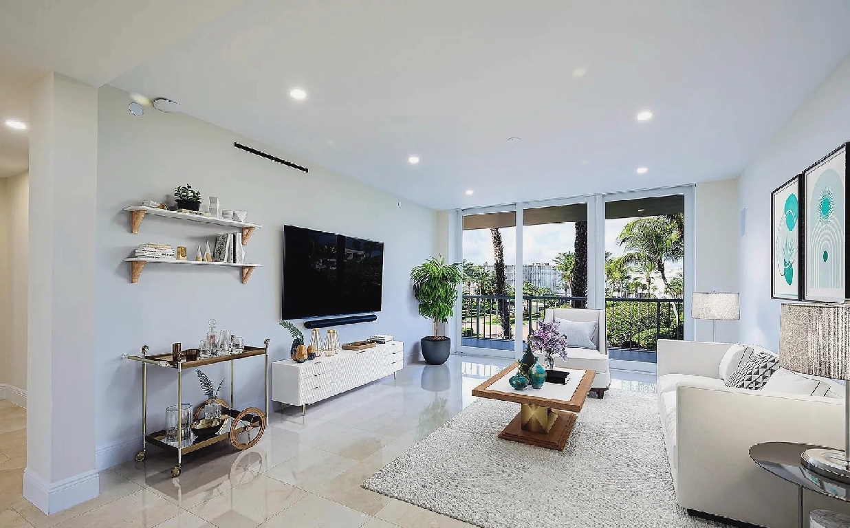 This four bedroom, six bathroom condo offers over 4,300 square feet of renovated living space with 780 feet of terraces facing east and west for sunrise and sunset ocean views. Highlights include a DownsView kitchen with Miele appliances, a primary suite with dual baths, porcelain and marble finishes, and three guest bedrooms plus a den. Private elevator access, a poolside cabana, and amenities such as tennis courts, a pool, gym, billiard and social rooms, and 24-hour concierge service make this residence an exceptional Palm Beach retreat.