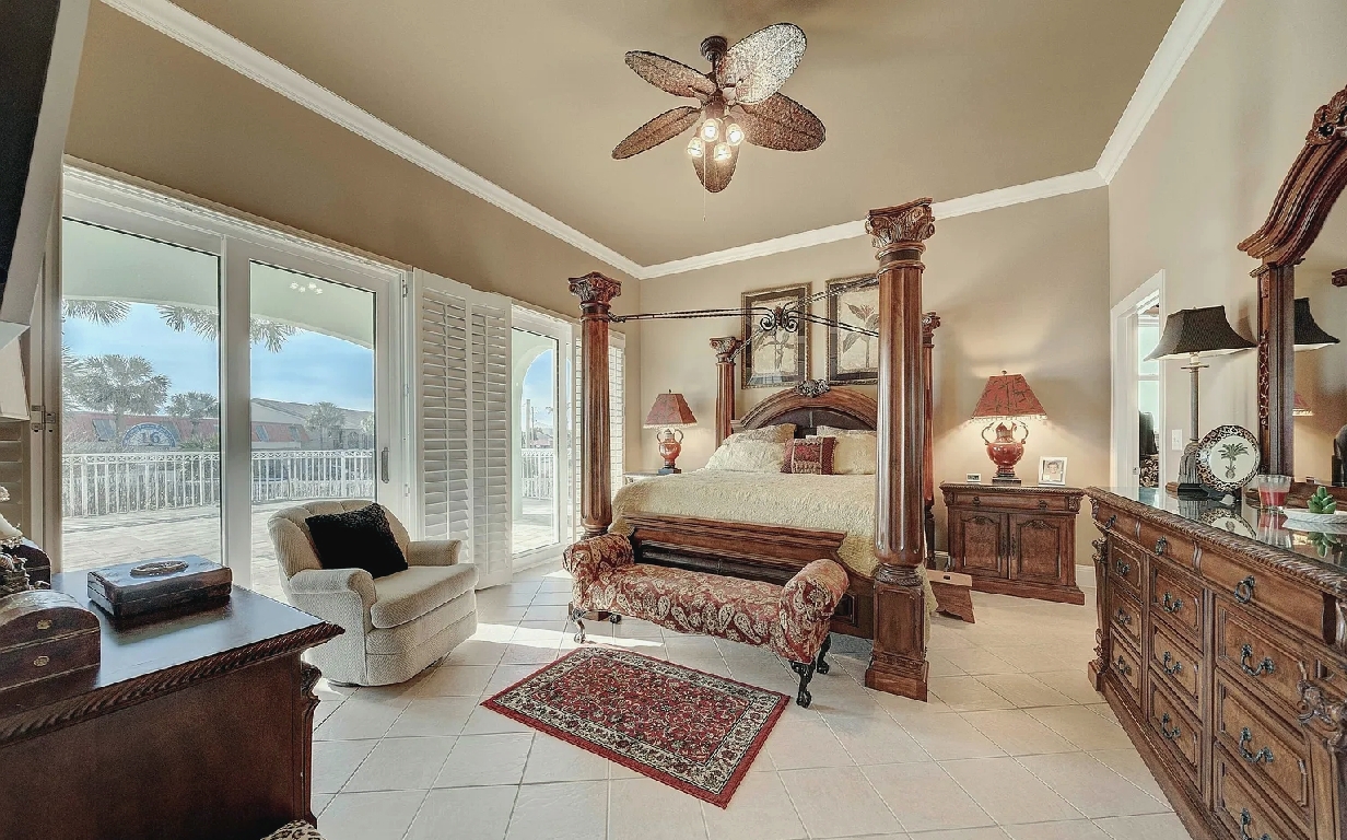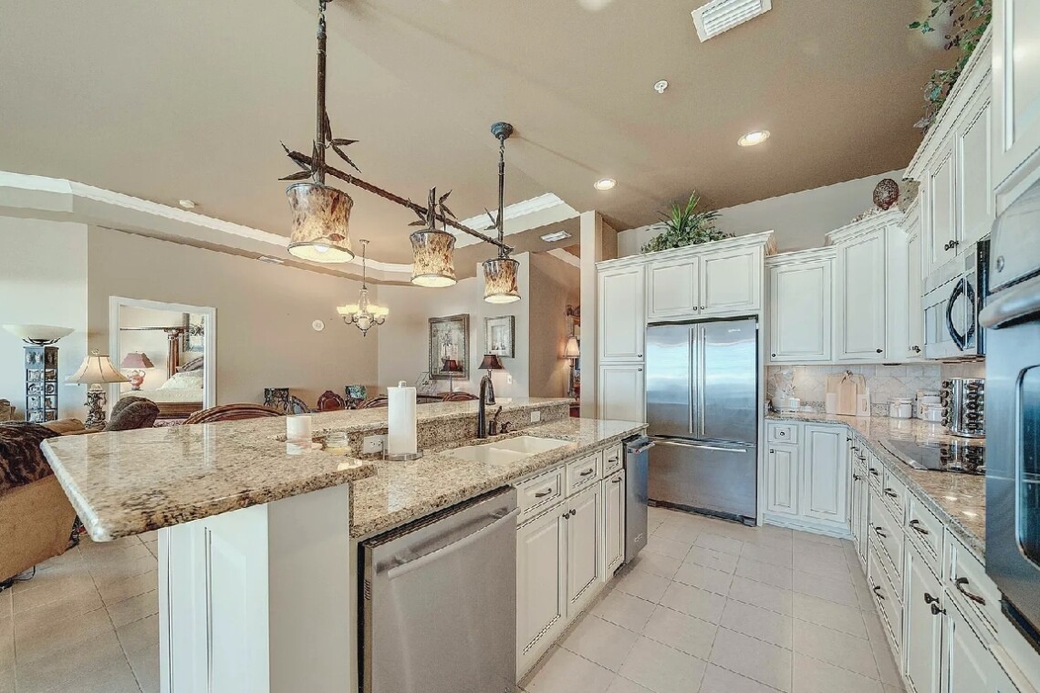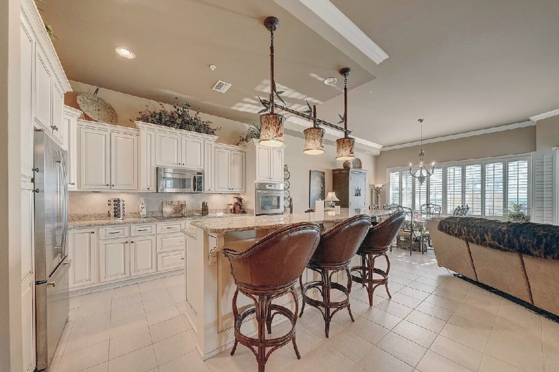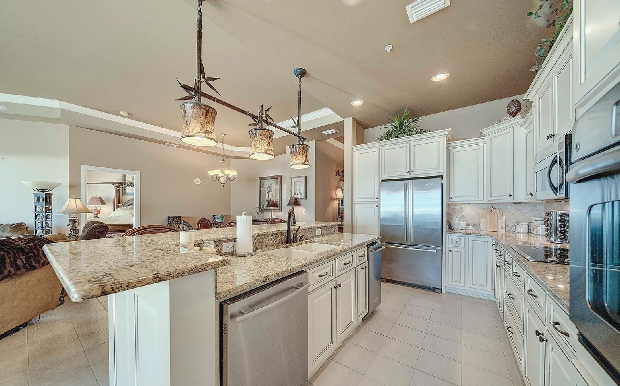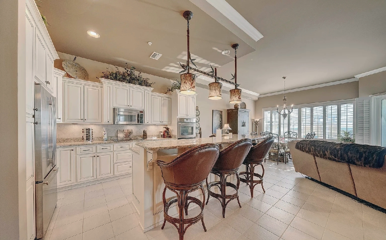 This four bedroom, three bathroom ground-floor penthouse offers nearly 2,500 square feet of refined living space with twelve-foot ceilings, granite countertops, and custom cabinetry throughout. Set within a premier Gulf-front complex, the residence includes a dedicated parking space in the secure underground garage with convenient elevator access. Guests can enjoy the privacy, security, and elegance of this spacious retreat while being just steps from the beach, making it an ideal choice for a luxurious coastal stay in Panama City Beach.