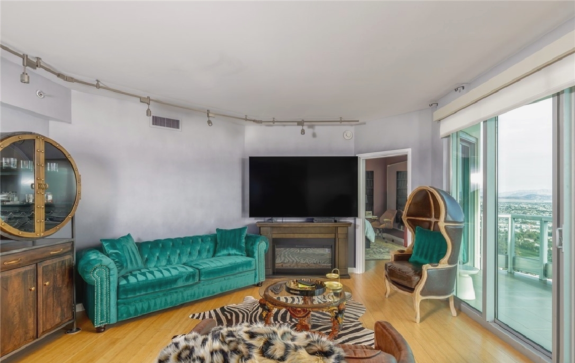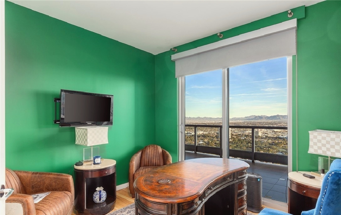 This top-floor penthouse offers panoramic views of the Las Vegas Strip, surrounding mountains, and city skyline through nearly 13-foot ceilings and walls of glass. An oversized outdoor terrace spans the entire length of the residence, with access from every room, creating a seamless indoor-outdoor lifestyle. The spacious open plan includes refined finishes, a modern kitchen, and three well-appointed bedrooms designed for both comfort and elegance. With its rare placement at the summit of the tower, this residence combines exclusivity, dramatic views, and the vibrant energy of Las Vegas living.