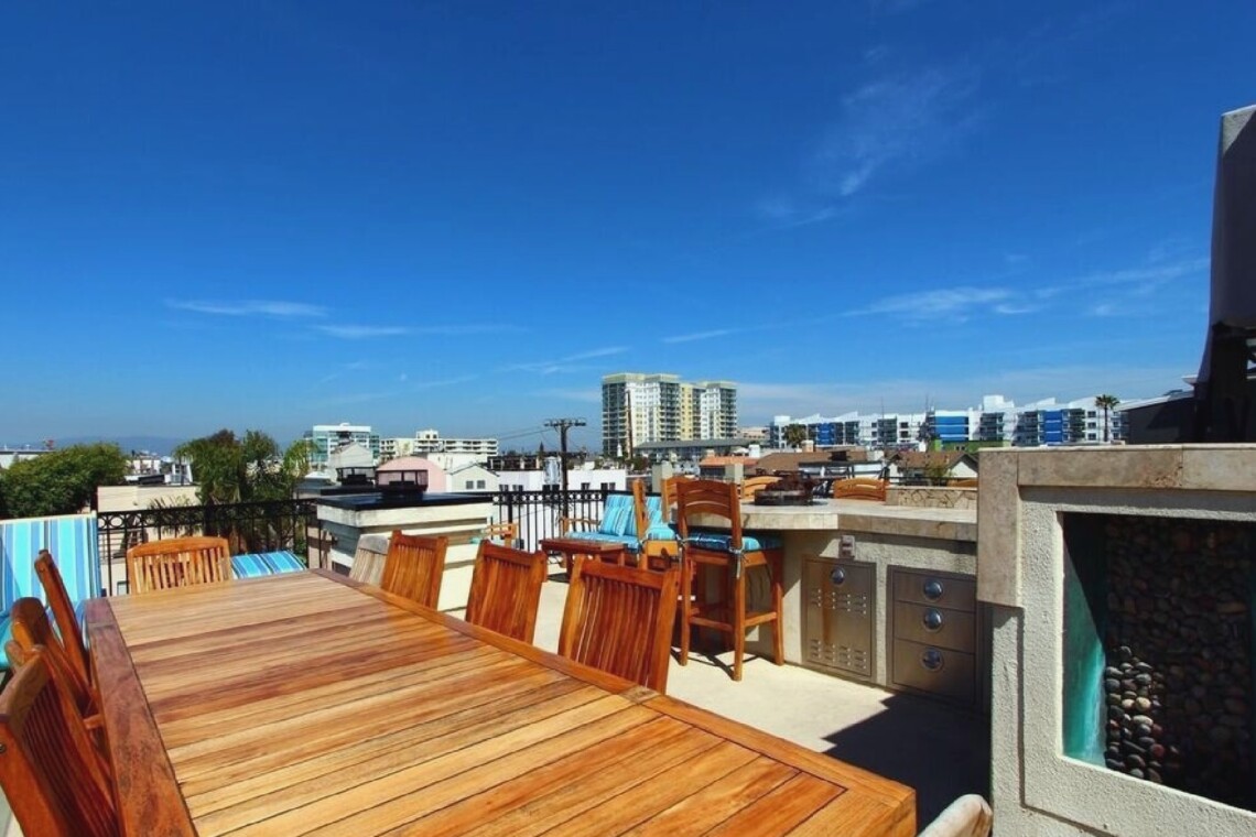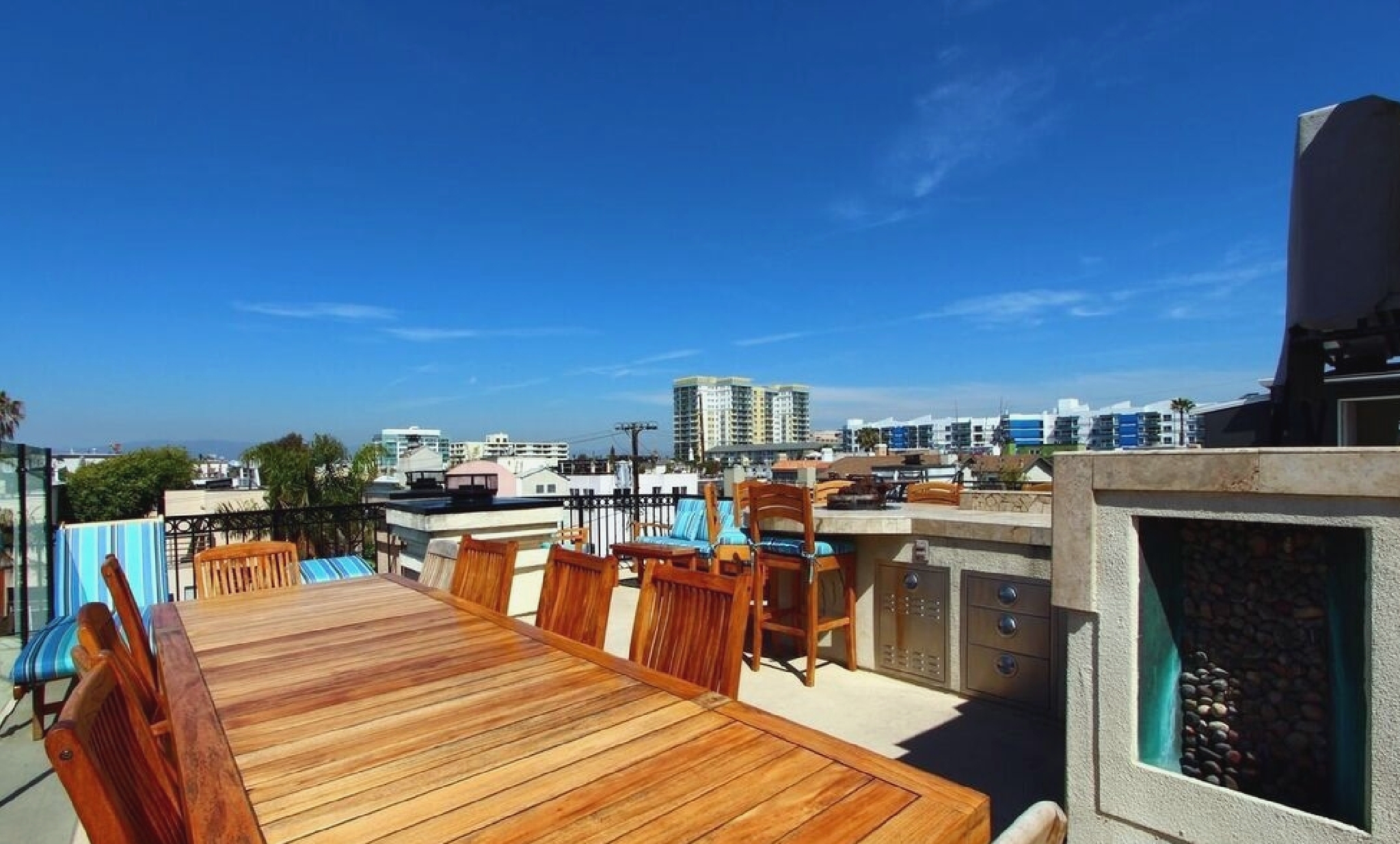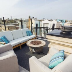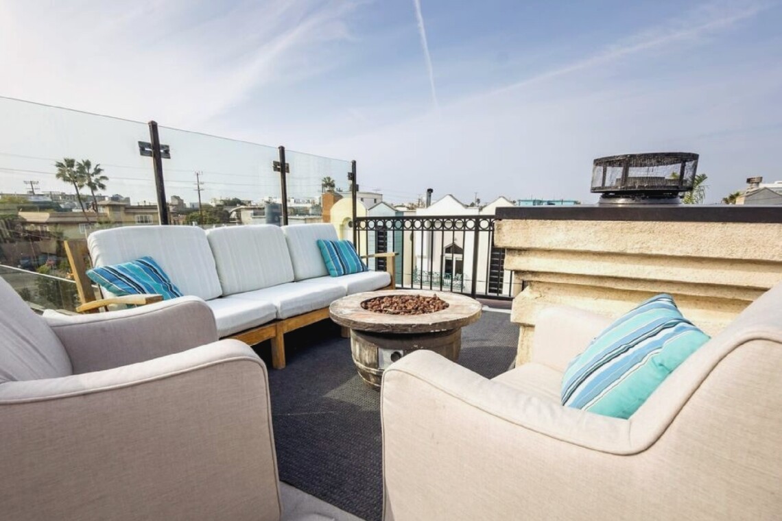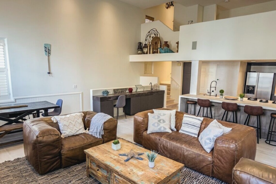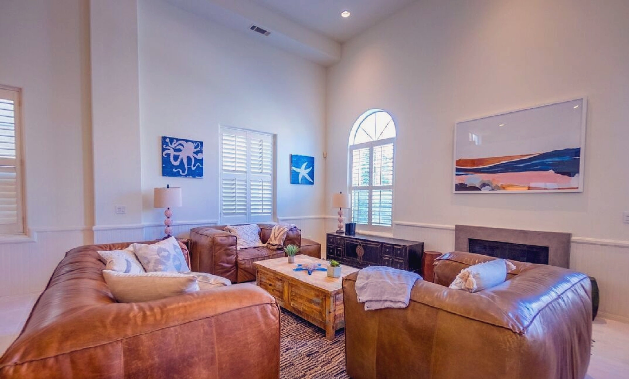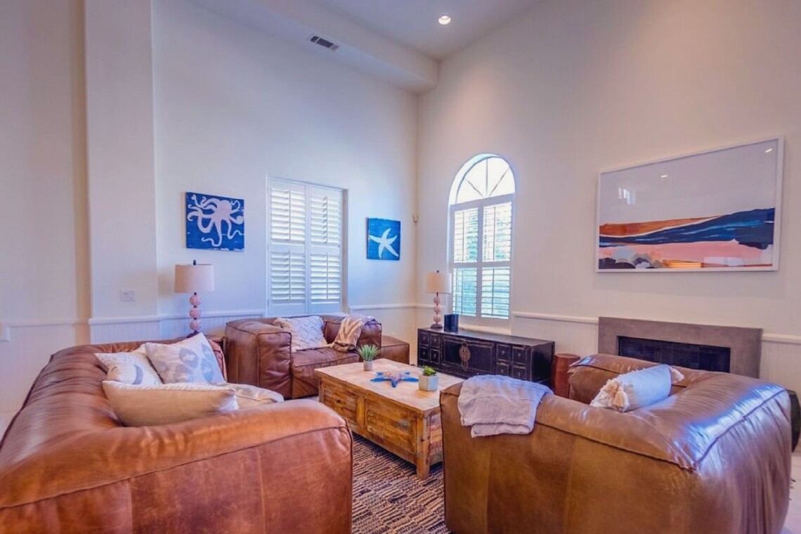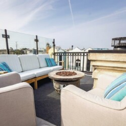 Just one block from the sand, this furnished beach home offers a bright and spacious layout with soaring ceilings and stylish modern finishes. A home theater with stadium seating and LED lighting adds a unique entertainment feature, while the updated kitchen includes a 10-foot island and premium appliances. Multiple fireplaces, large TVs, and comfortable living areas create a welcoming atmosphere for families and guests. The rooftop deck is an entertainer’s dream, complete with an outdoor kitchen, two fire pits, and ocean views. Thoughtfully designed for both relaxation and gatherings, this home blends coastal living with upscale comfort.