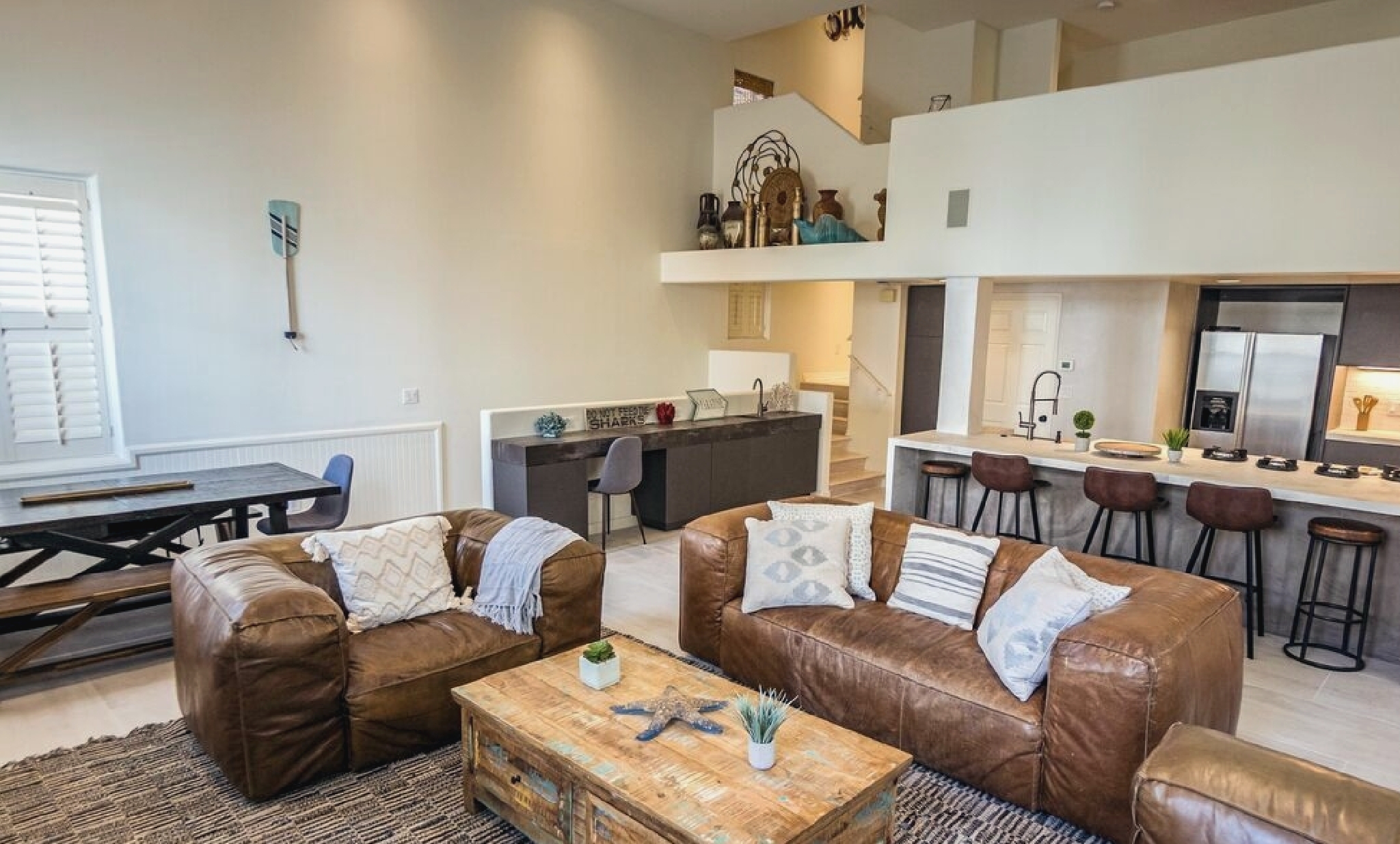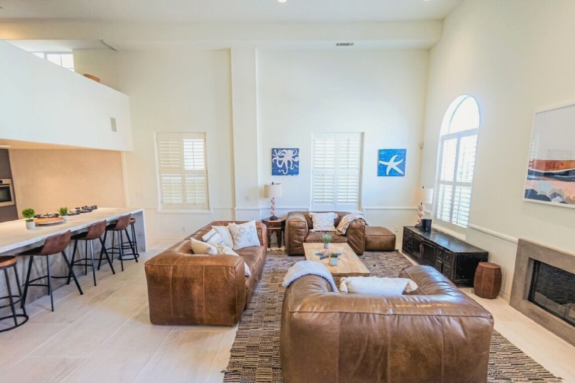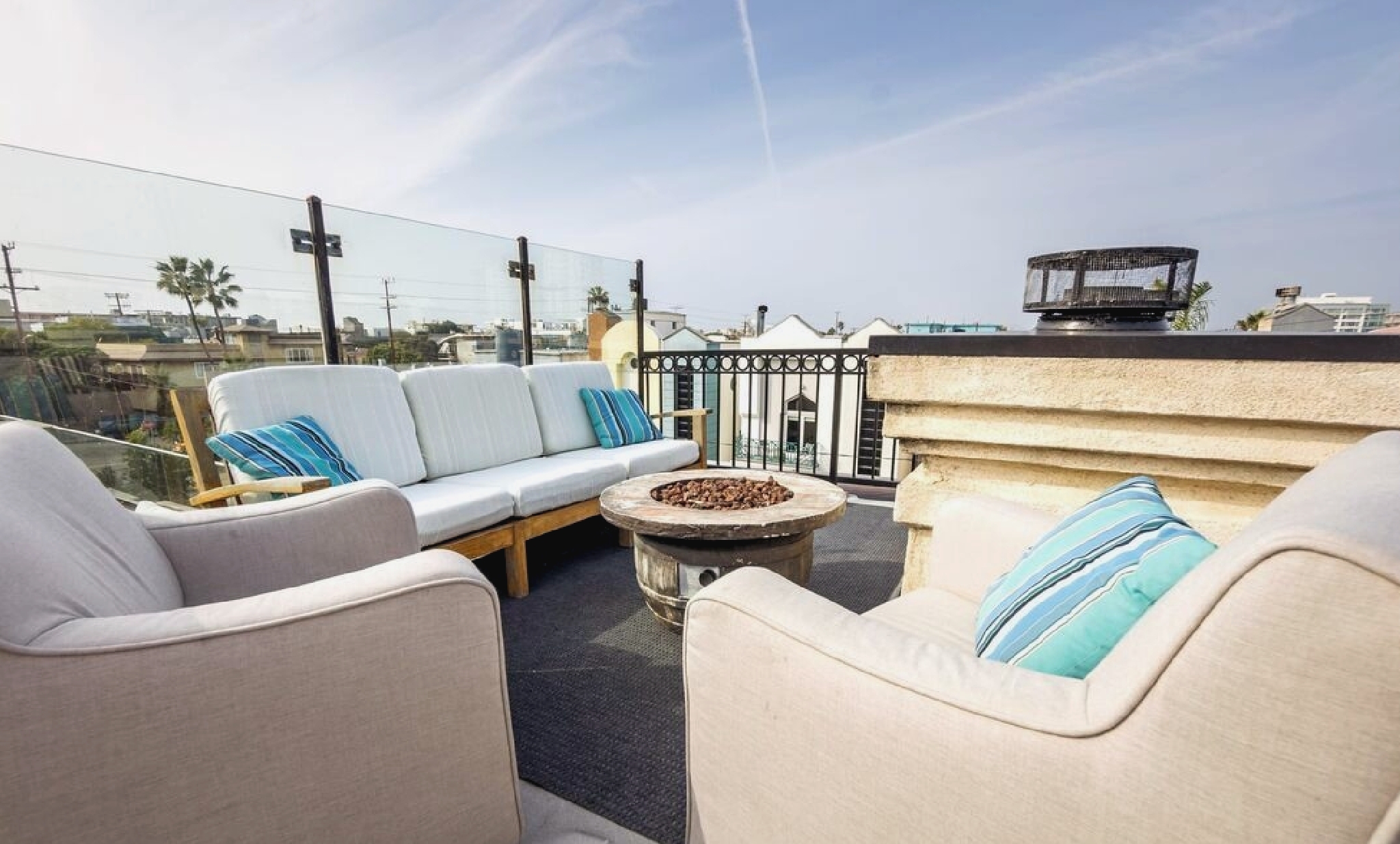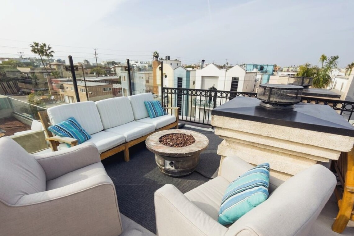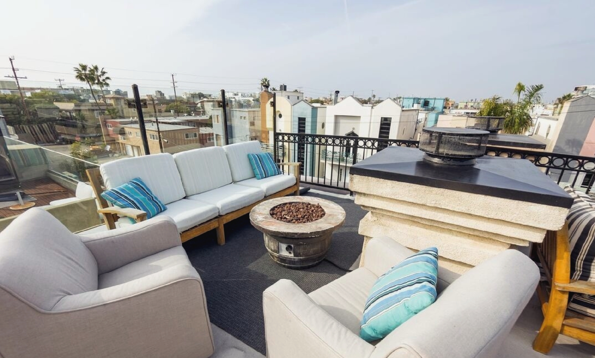 Just one block from the sand, this furnished beach home offers a bright and spacious layout with soaring ceilings and stylish modern finishes. A home theater with stadium seating and LED lighting adds a unique entertainment feature, while the updated kitchen includes a 10-foot island and premium appliances. Multiple fireplaces, large TVs, and comfortable living areas create a welcoming atmosphere for families and guests. The rooftop deck is an entertainer’s dream, complete with an outdoor kitchen, two fire pits, and ocean views. Thoughtfully designed for both relaxation and gatherings, this home blends coastal living with upscale comfort.