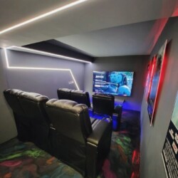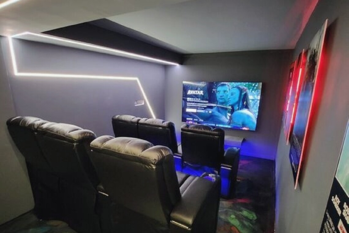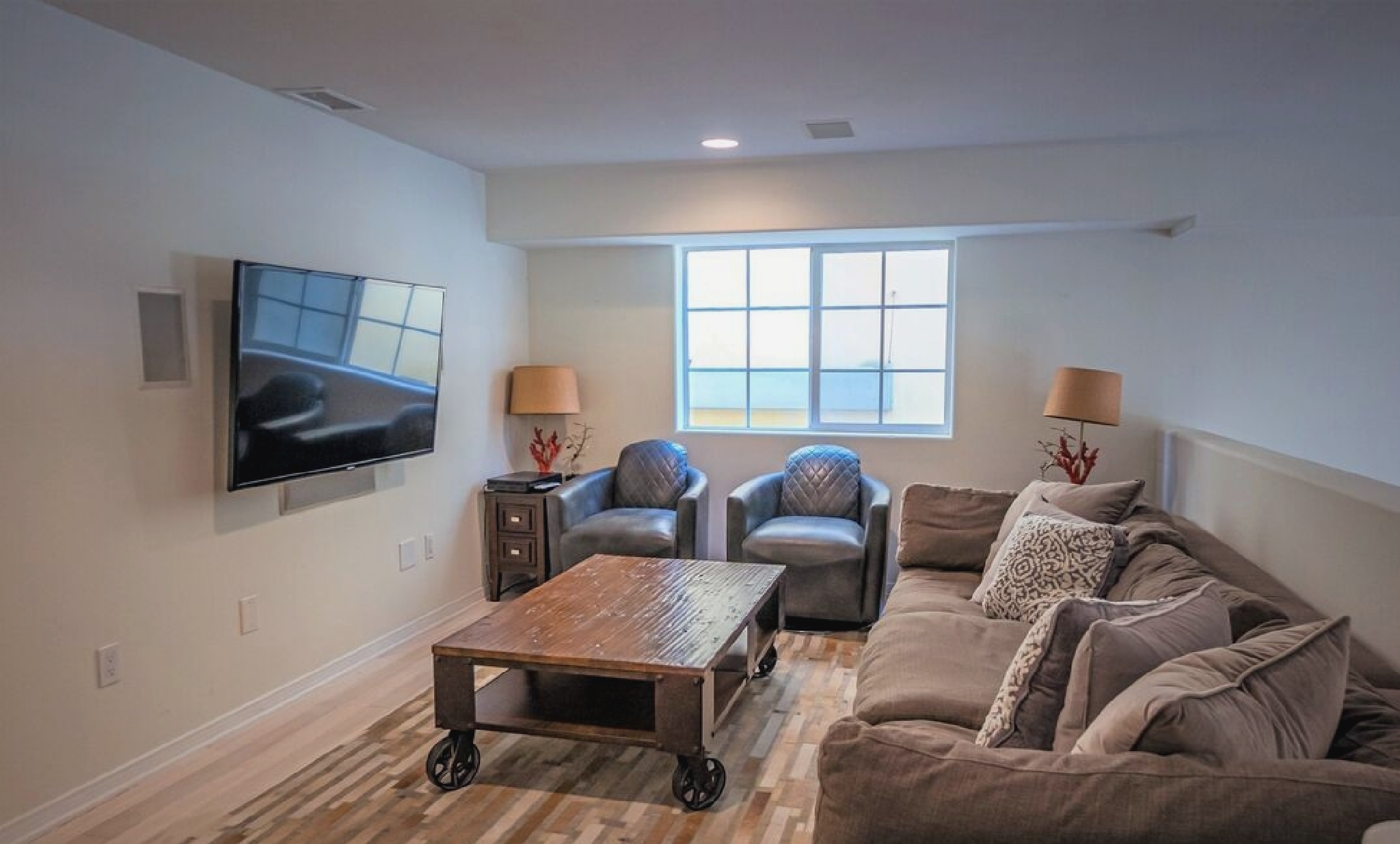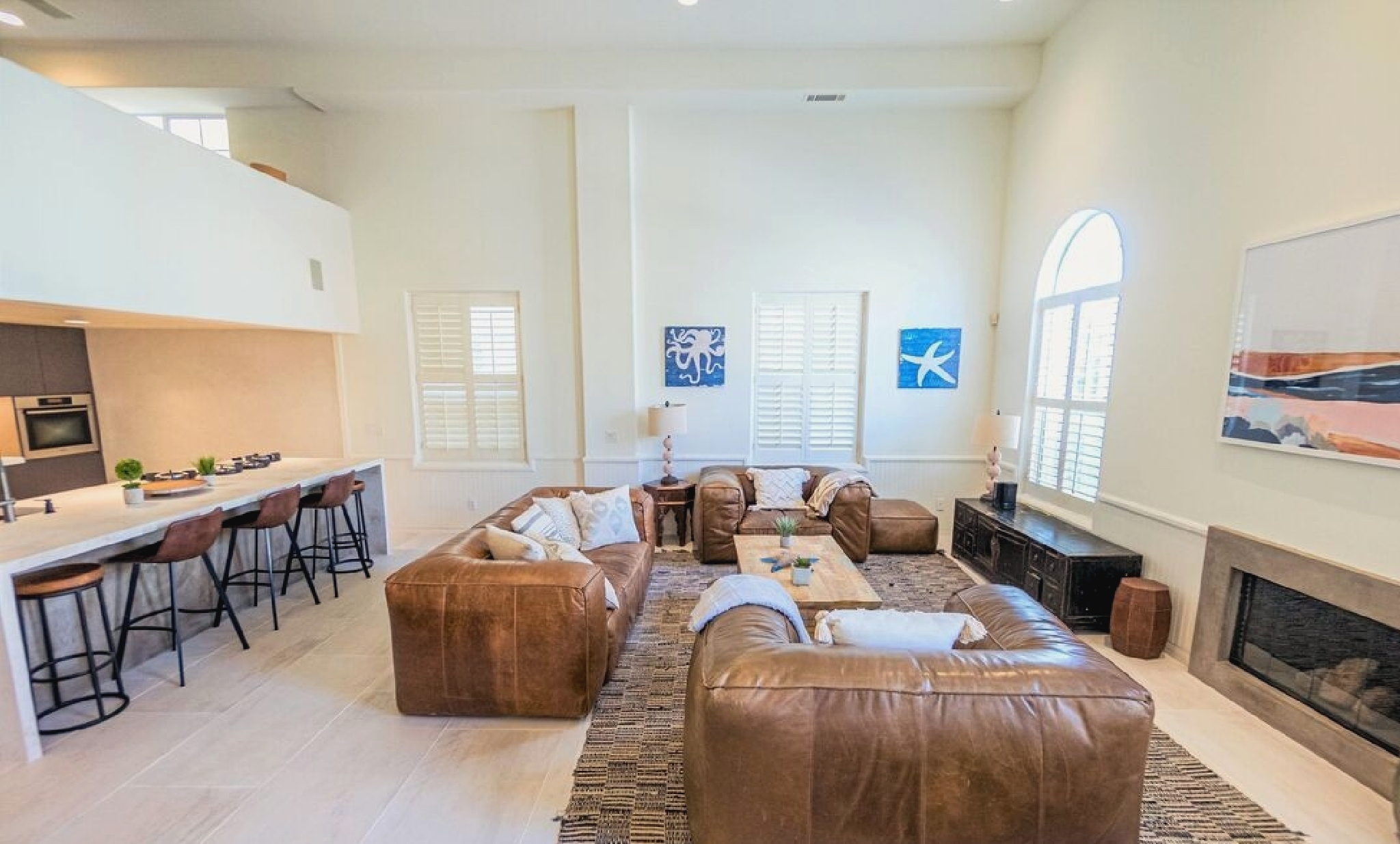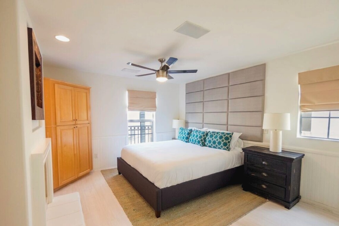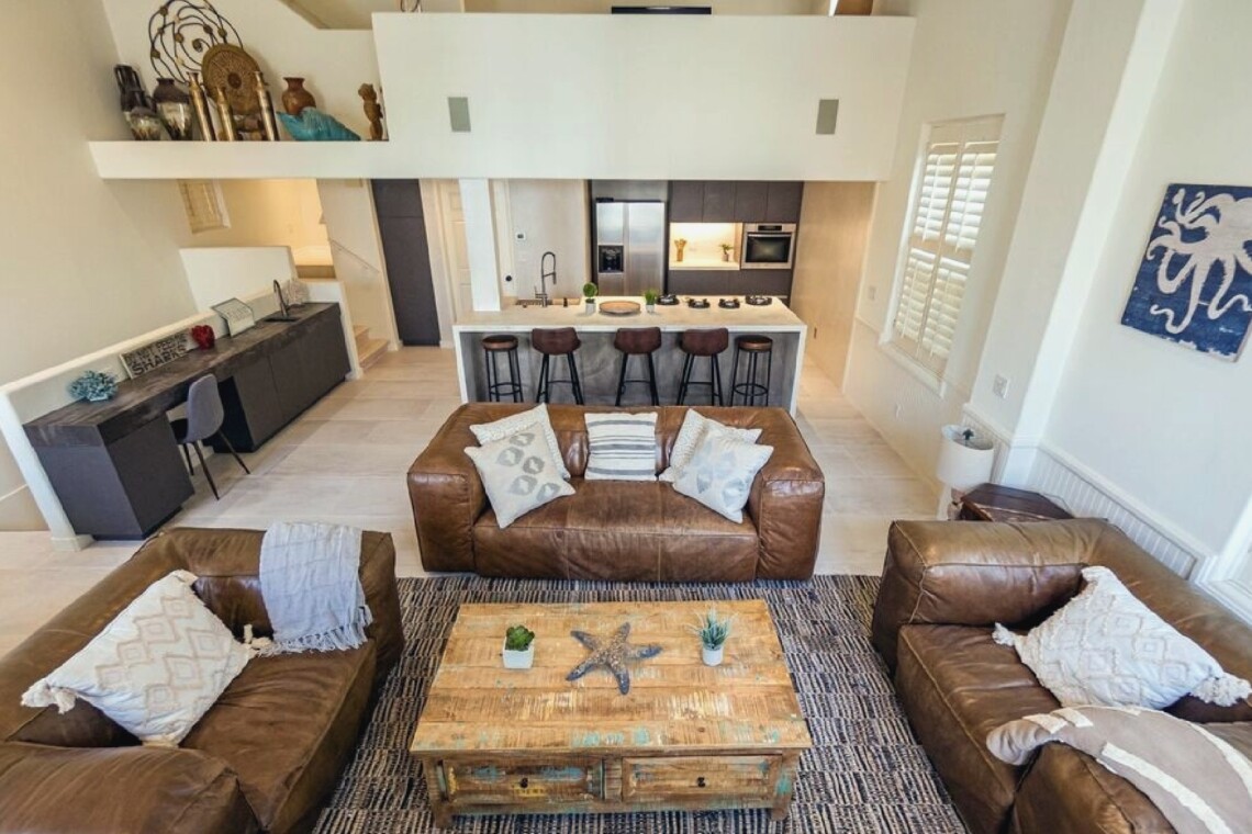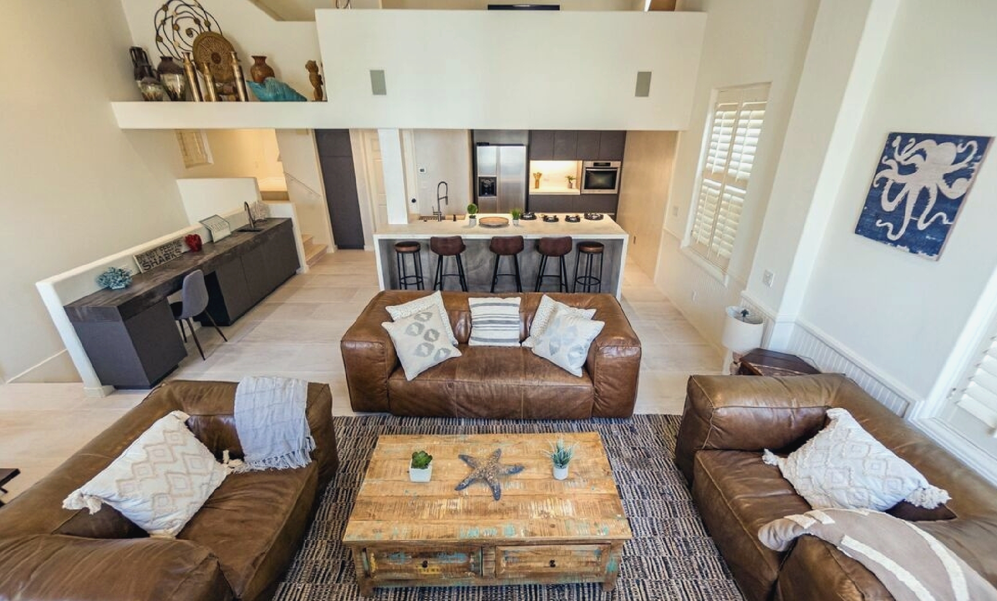 Just one block from the sand, this furnished beach home offers a bright and spacious layout with soaring ceilings and stylish modern finishes. A home theater with stadium seating and LED lighting adds a unique entertainment feature, while the updated kitchen includes a 10-foot island and premium appliances. Multiple fireplaces, large TVs, and comfortable living areas create a welcoming atmosphere for families and guests. The rooftop deck is an entertainer’s dream, complete with an outdoor kitchen, two fire pits, and ocean views. Thoughtfully designed for both relaxation and gatherings, this home blends coastal living with upscale comfort.
