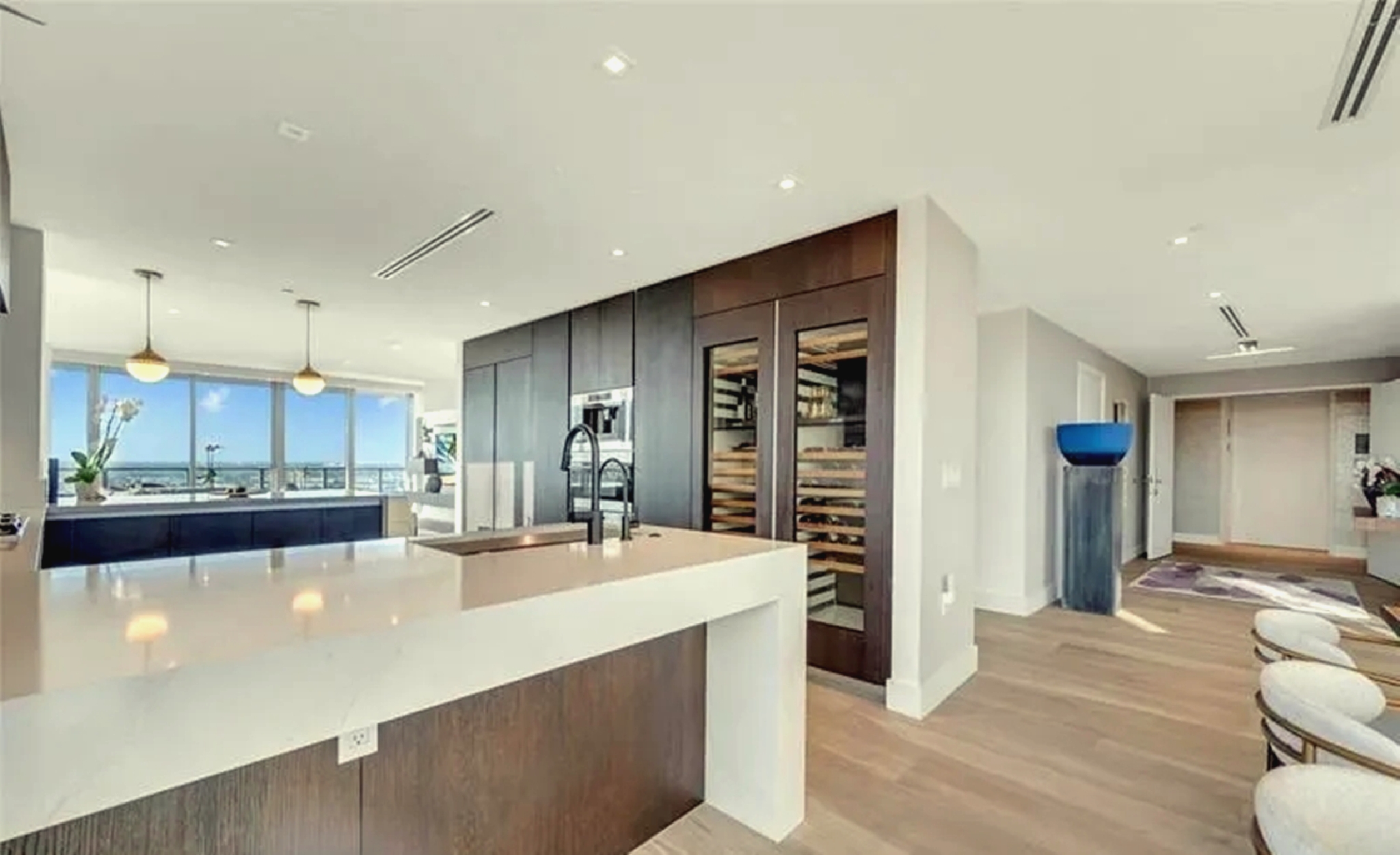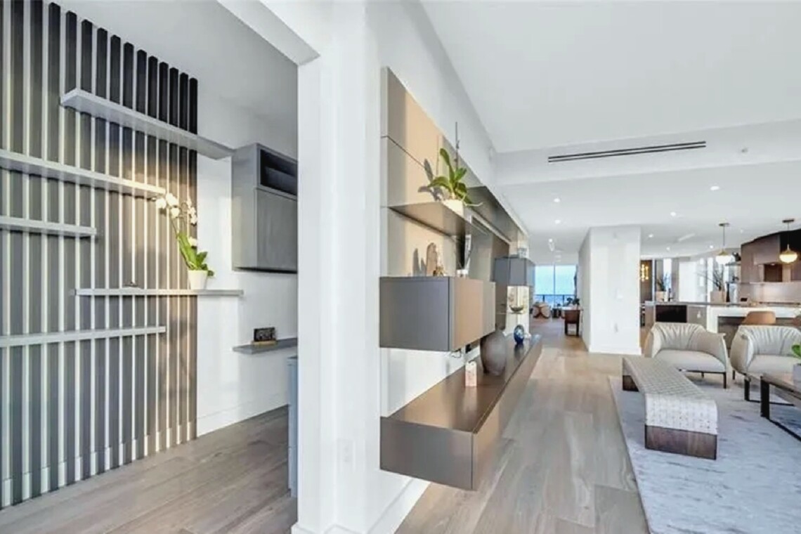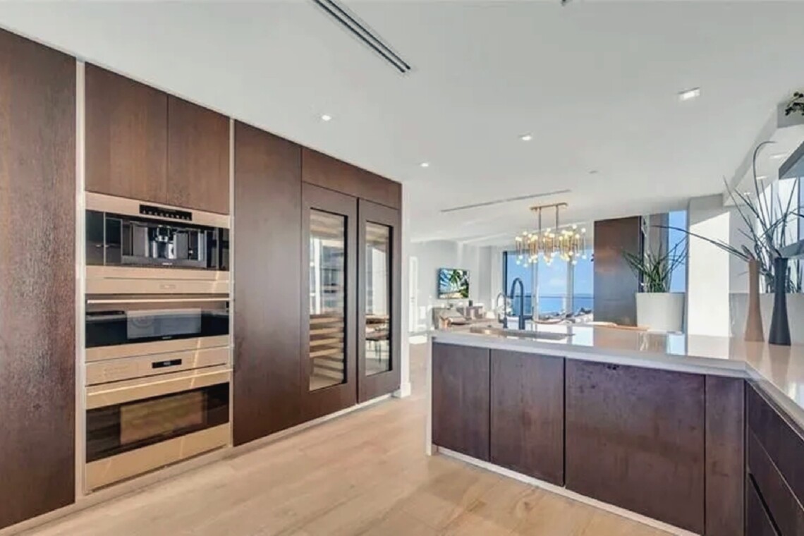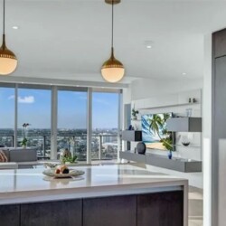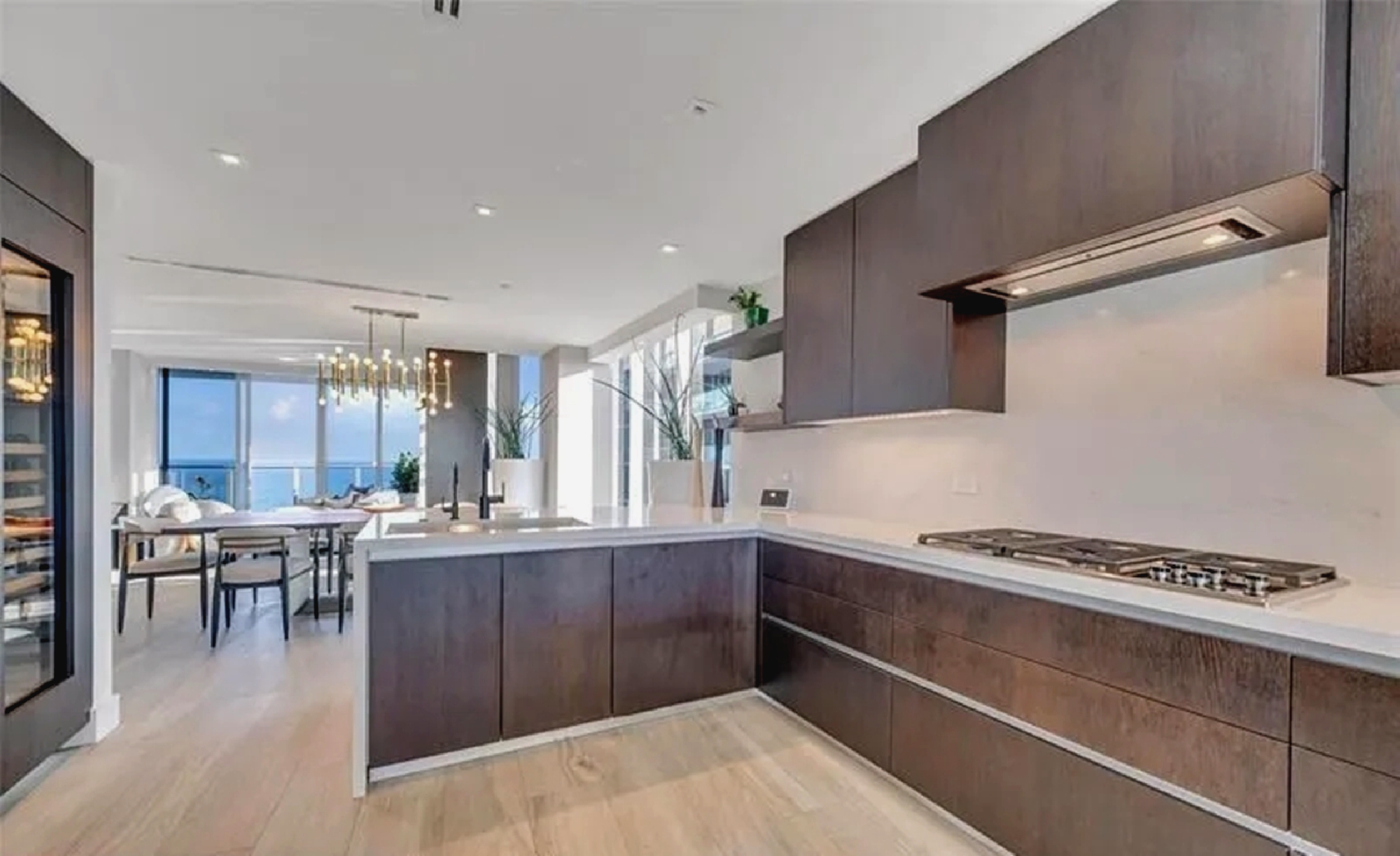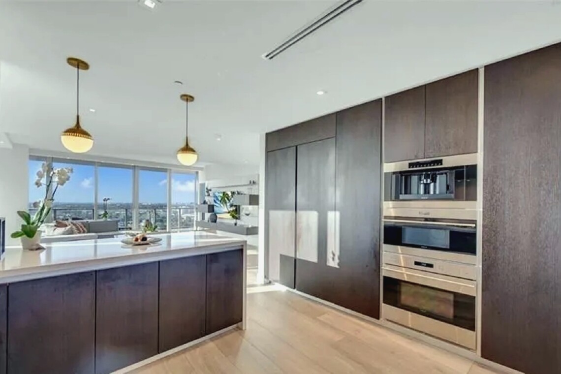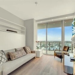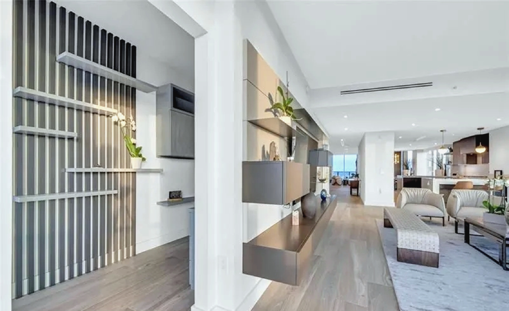 This three bedroom, four bathroom oceanfront penthouse offers over 3,400 square feet of refined living space with two private terraces showcasing sweeping views of the ocean, Intracoastal, and city skyline. The primary suite features dual sinks and a soaking tub, while the interior is finished with modern details, large windows, and custom built-ins that create a bright and elegant setting. Guests can enjoy resort-style amenities including a heated pool, cabana, fitness center, and café, along with two garage spaces and valet service for added convenience, making this residence an ideal destination for a luxurious coastal stay.