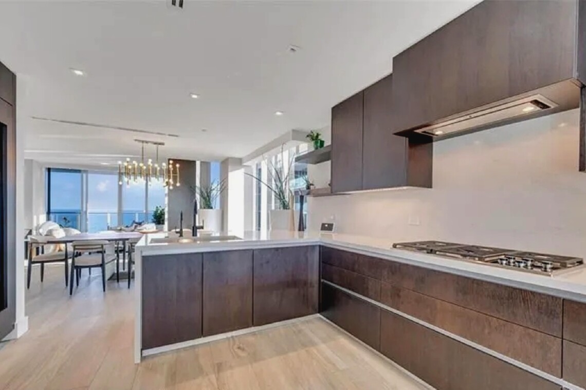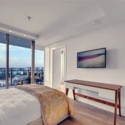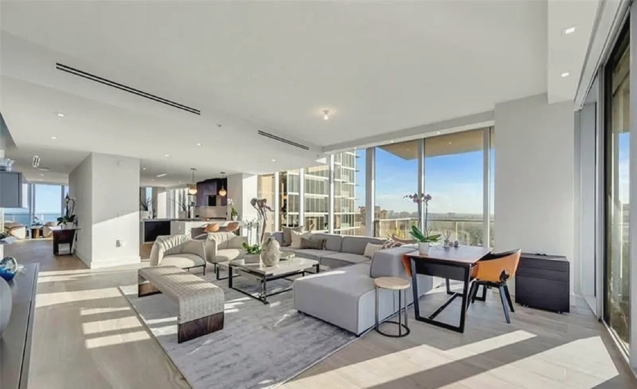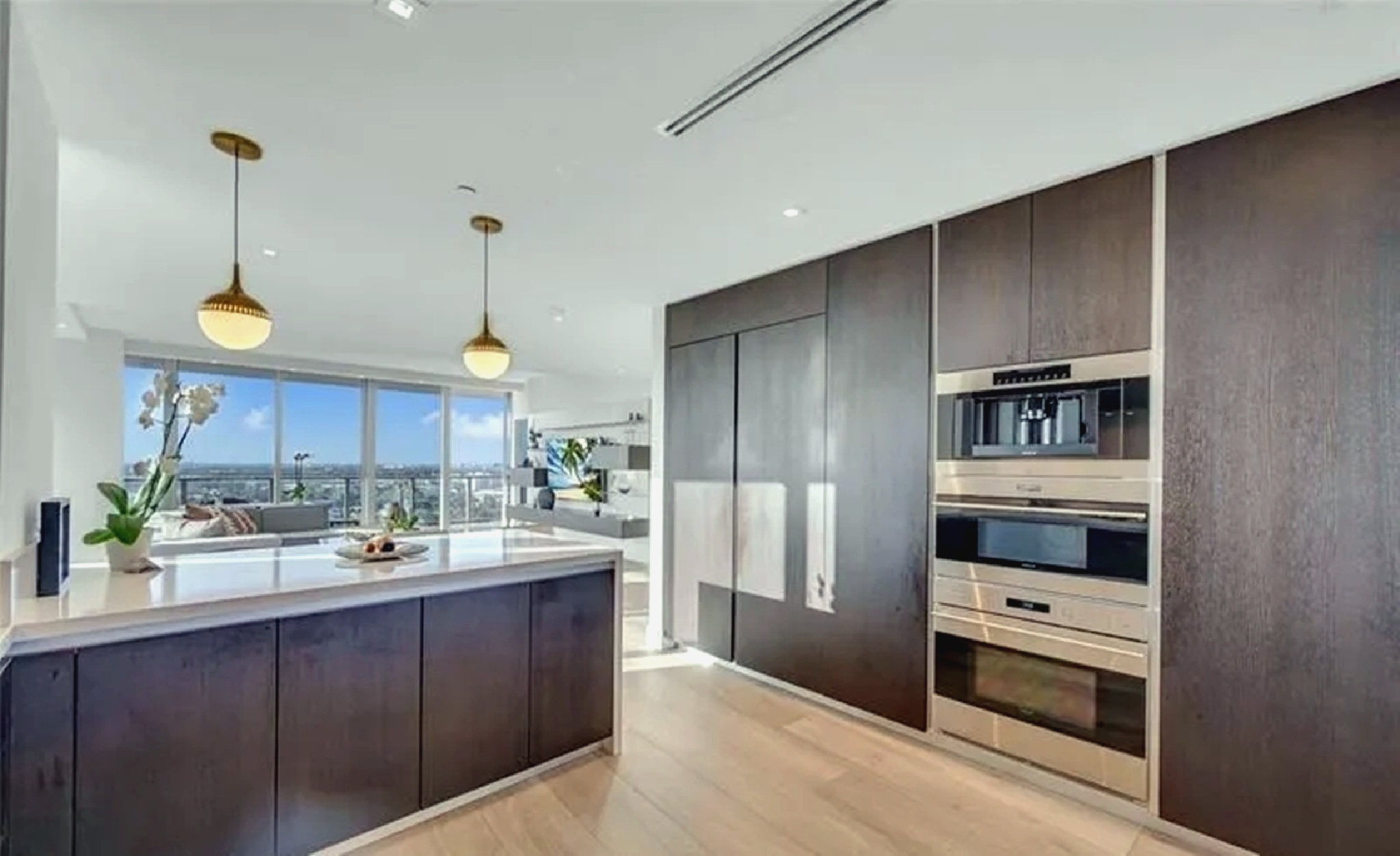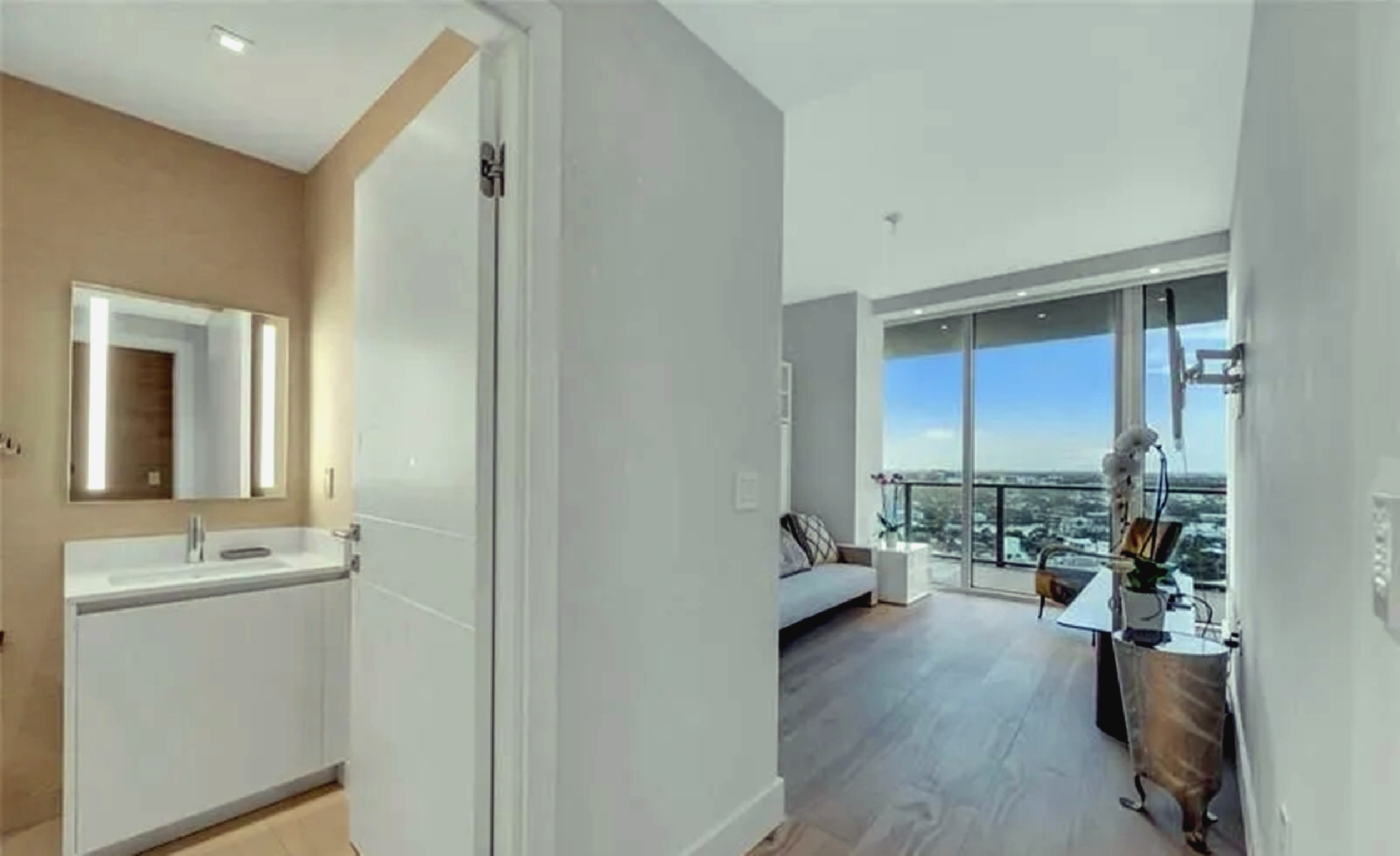 This three bedroom, four bathroom oceanfront penthouse offers over 3,400 square feet of refined living space with two private terraces showcasing sweeping views of the ocean, Intracoastal, and city skyline. The primary suite features dual sinks and a soaking tub, while the interior is finished with modern details, large windows, and custom built-ins that create a bright and elegant setting. Guests can enjoy resort-style amenities including a heated pool, cabana, fitness center, and café, along with two garage spaces and valet service for added convenience, making this residence an ideal destination for a luxurious coastal stay.