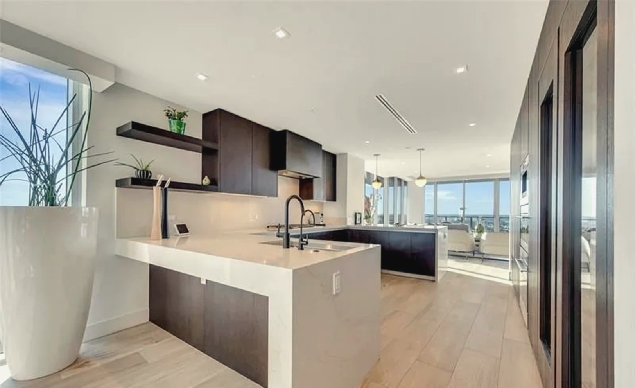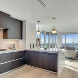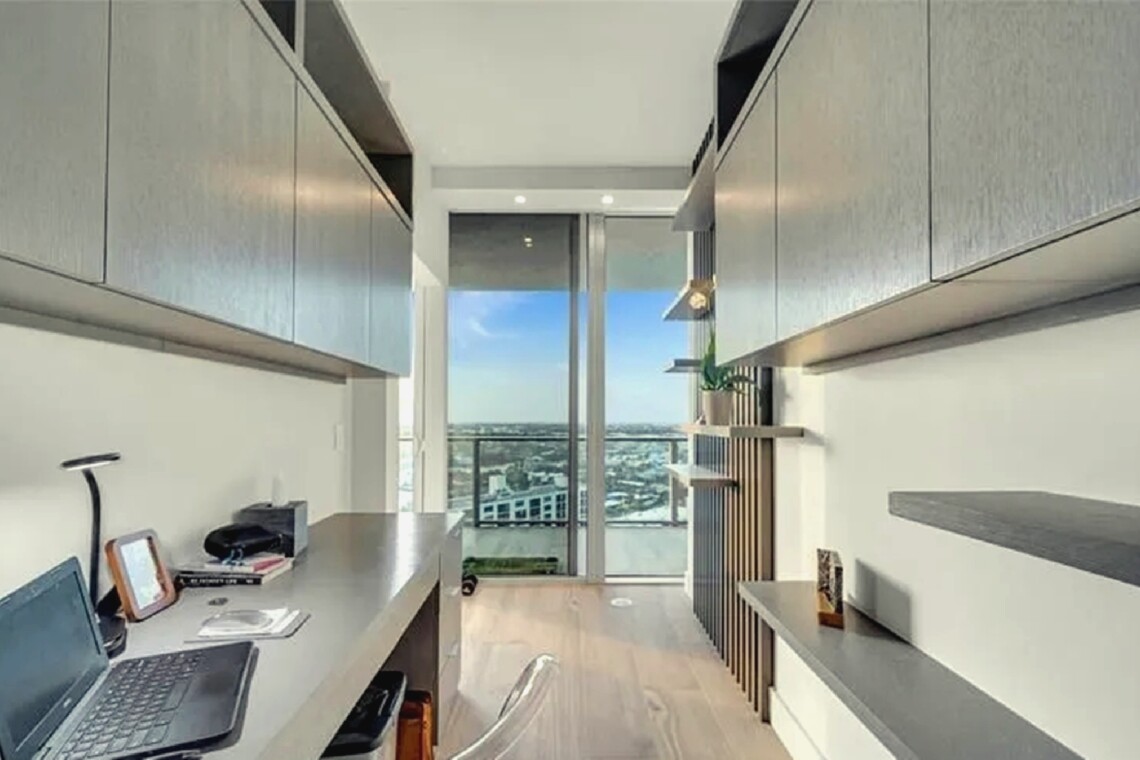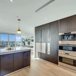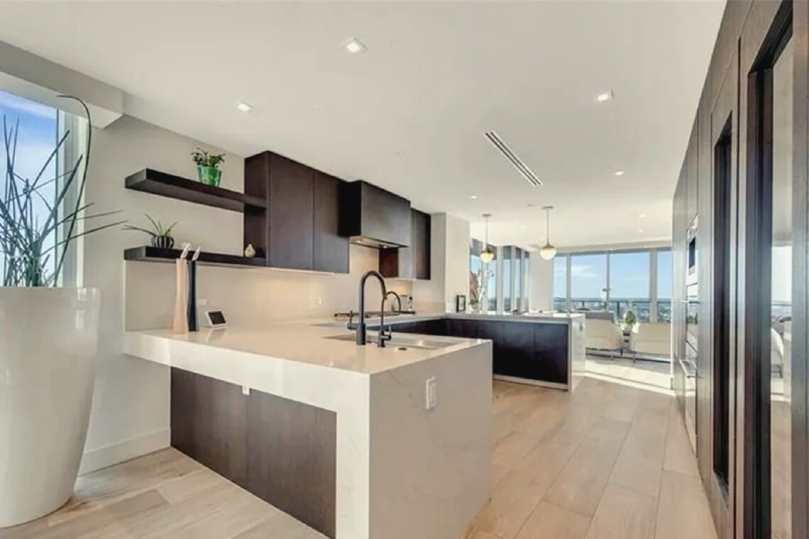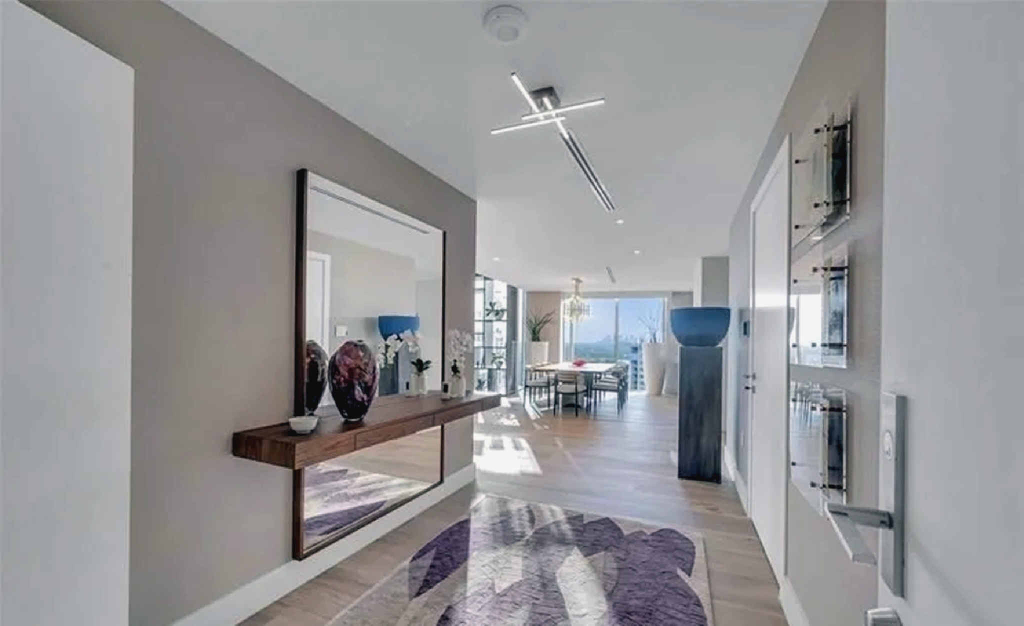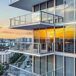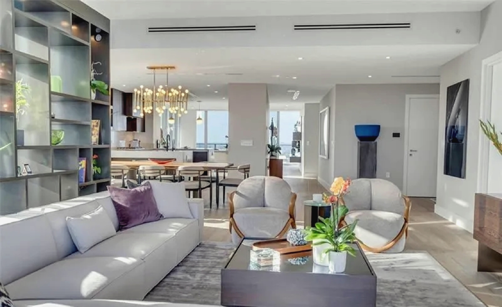 This three bedroom, four bathroom oceanfront penthouse offers over 3,400 square feet of refined living space with two private terraces showcasing sweeping views of the ocean, Intracoastal, and city skyline. The primary suite features dual sinks and a soaking tub, while the interior is finished with modern details, large windows, and custom built-ins that create a bright and elegant setting. Guests can enjoy resort-style amenities including a heated pool, cabana, fitness center, and café, along with two garage spaces and valet service for added convenience, making this residence an ideal destination for a luxurious coastal stay.