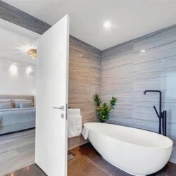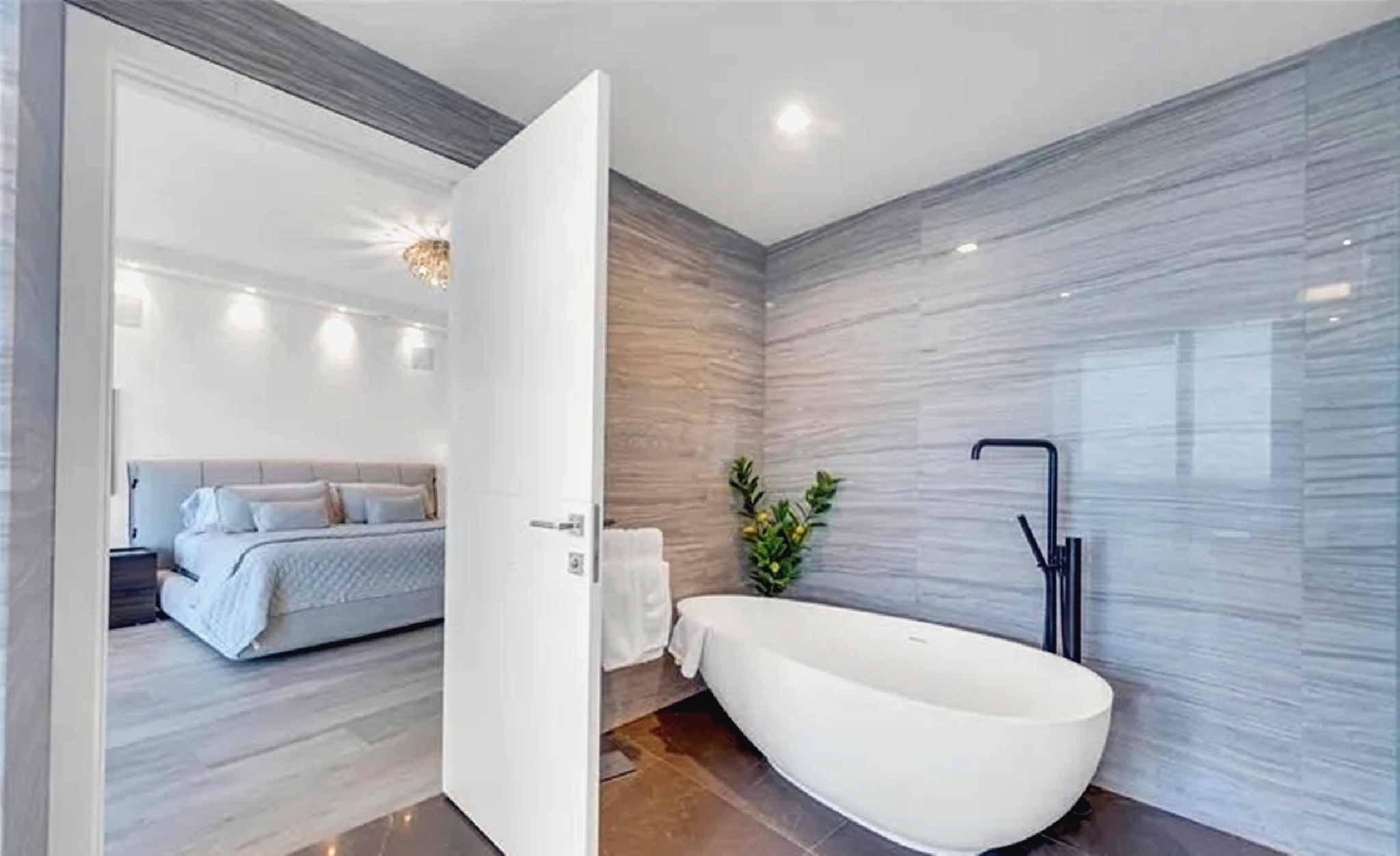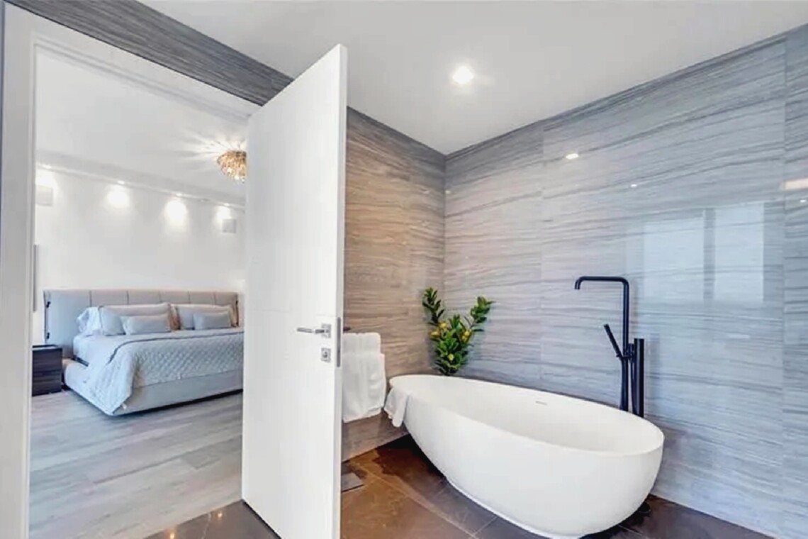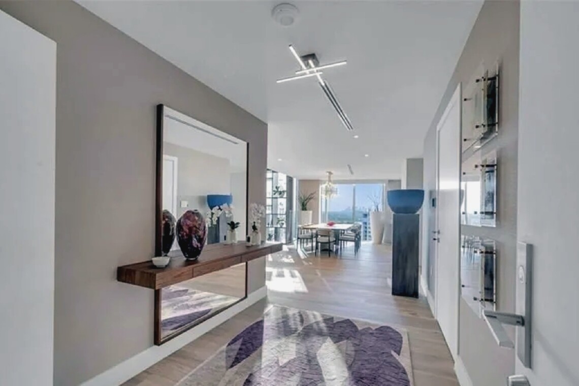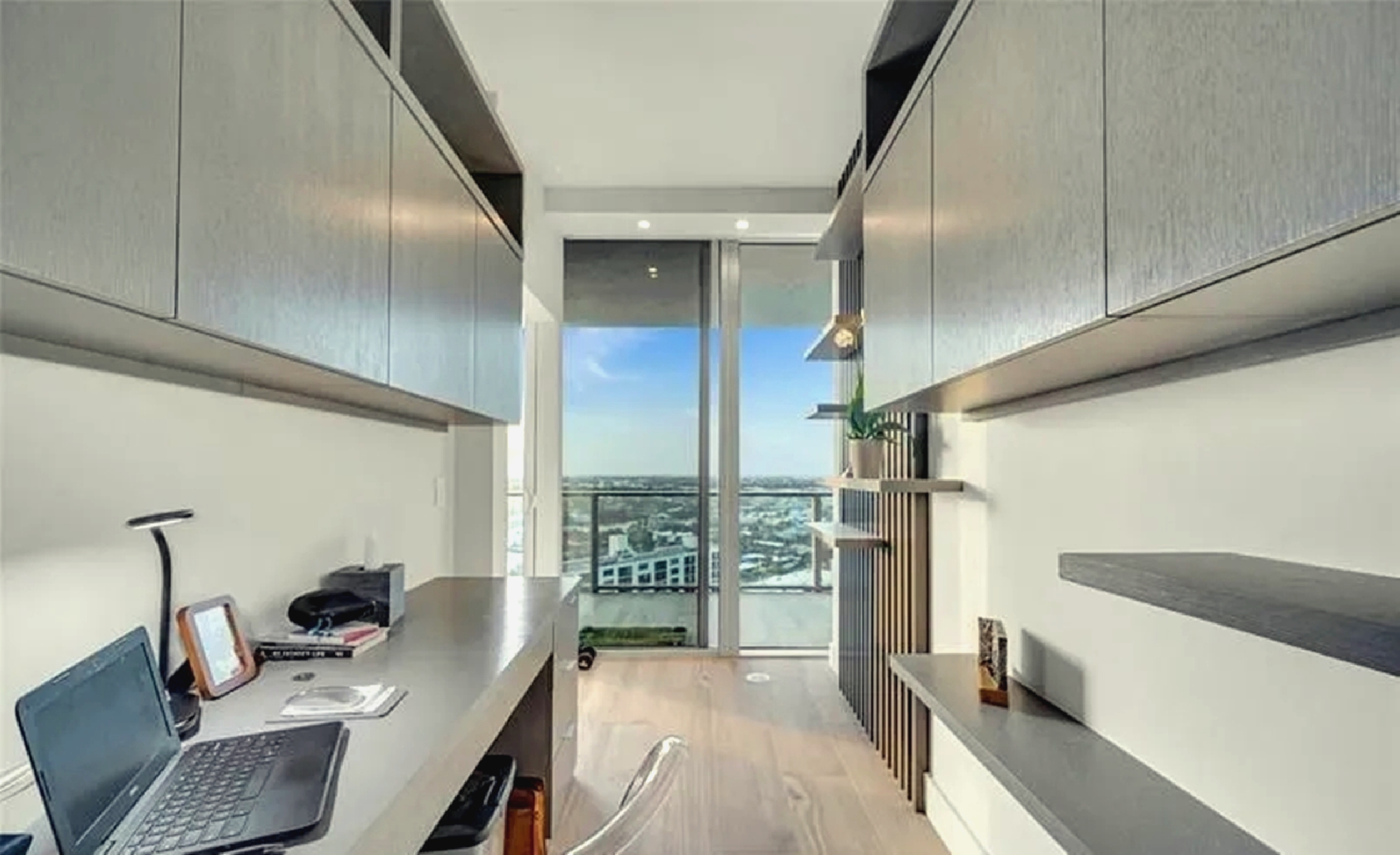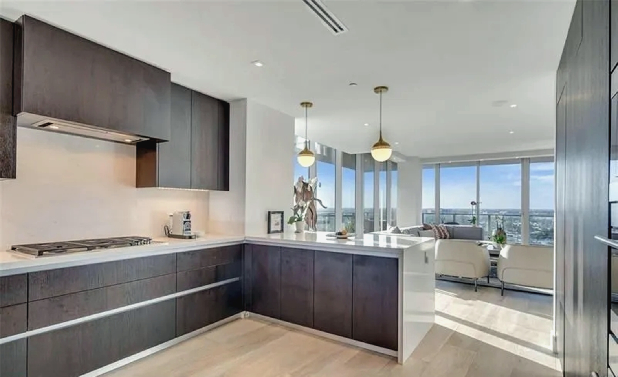 This three bedroom, four bathroom oceanfront penthouse offers over 3,400 square feet of refined living space with two private terraces showcasing sweeping views of the ocean, Intracoastal, and city skyline. The primary suite features dual sinks and a soaking tub, while the interior is finished with modern details, large windows, and custom built-ins that create a bright and elegant setting. Guests can enjoy resort-style amenities including a heated pool, cabana, fitness center, and café, along with two garage spaces and valet service for added convenience, making this residence an ideal destination for a luxurious coastal stay.