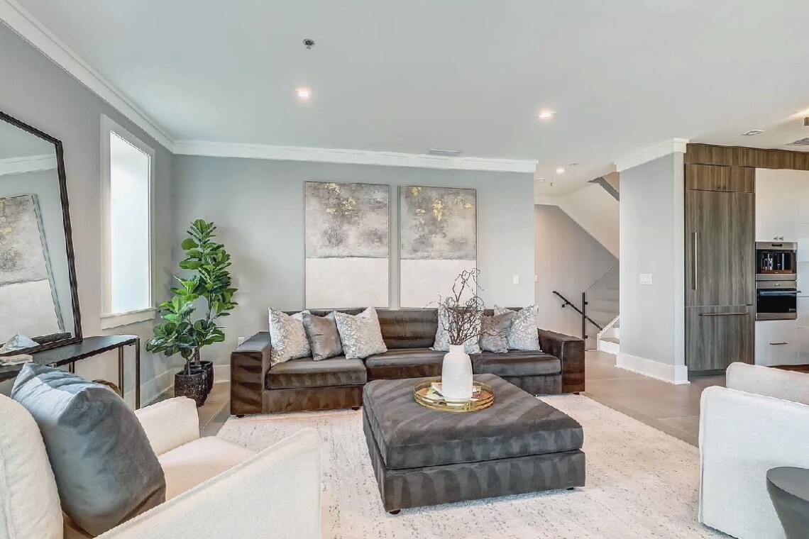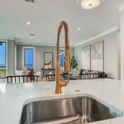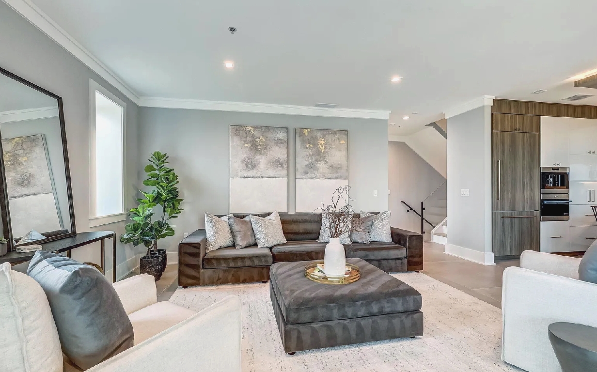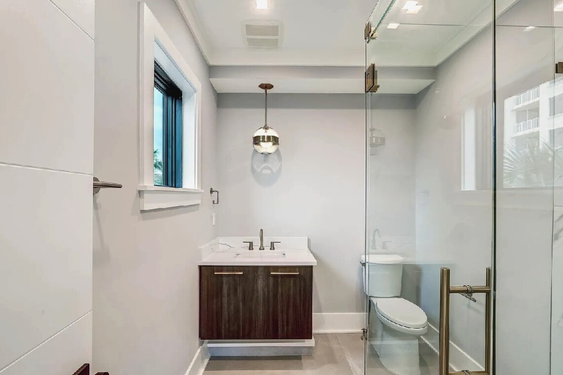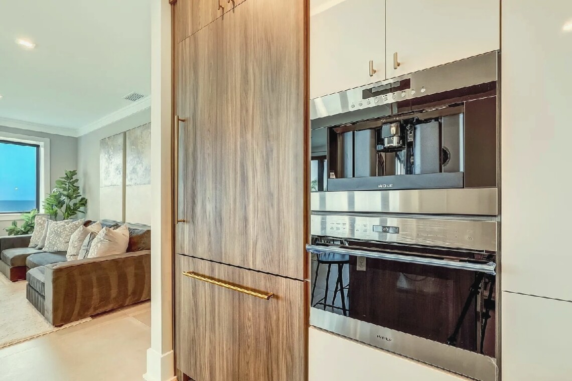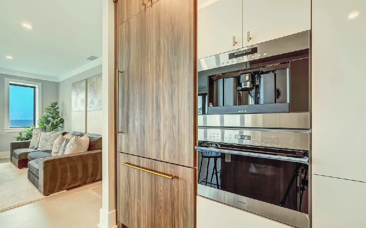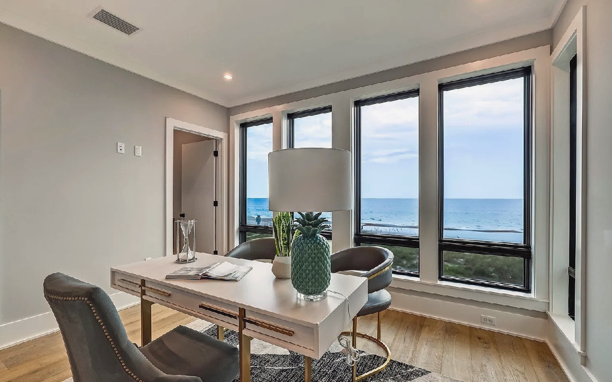 This three bedroom, four bathroom residence offers over 2,500 square feet of coastal living across three stories with sweeping Atlantic views from every level. The open-plan main floor features a gourmet kitchen with Wolf and Thermador appliances, floor-to-ceiling windows, and a spacious balcony, while the upper level includes a serene primary suite with spa-style bath and an additional ensuite guest room. Guests enjoy private amenities such as an oceanfront pool, rooftop patio with fire pit, and a backyard designed for entertaining, all within an exclusive five-unit community in Jacksonville Beach.