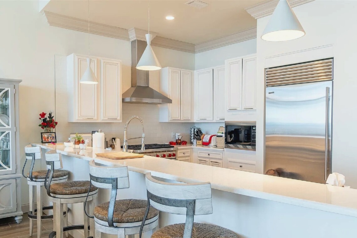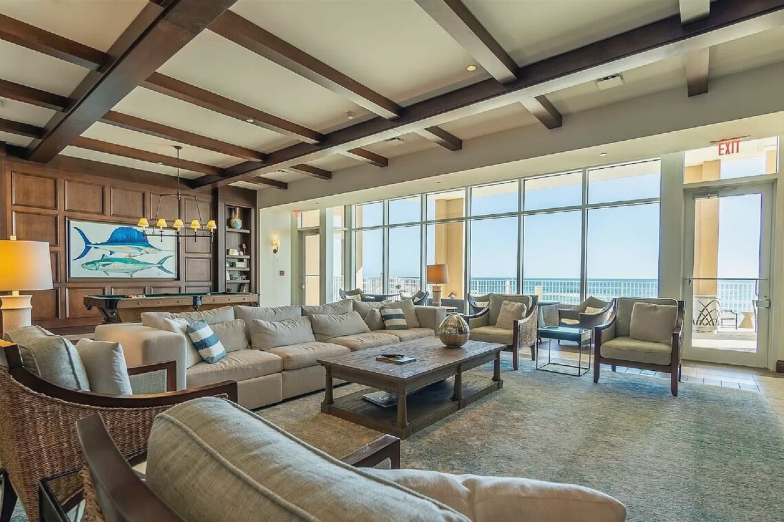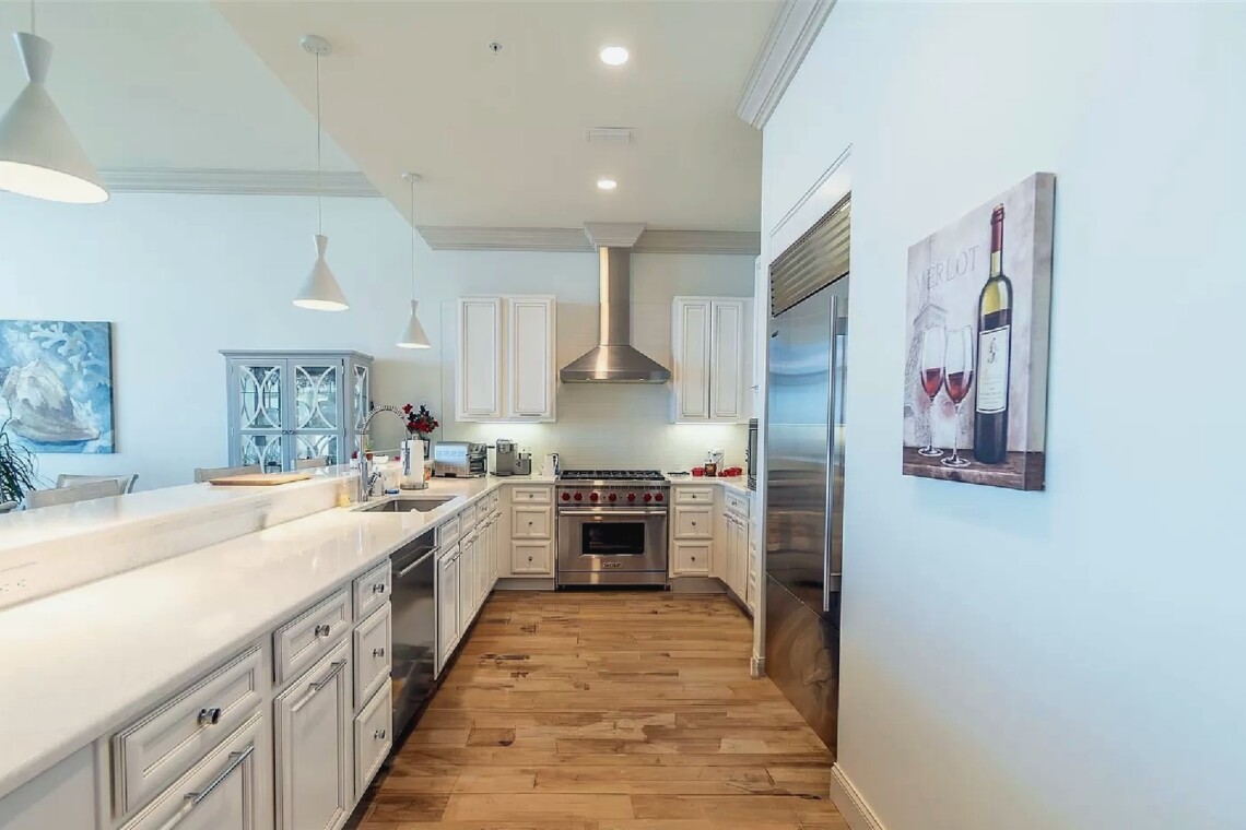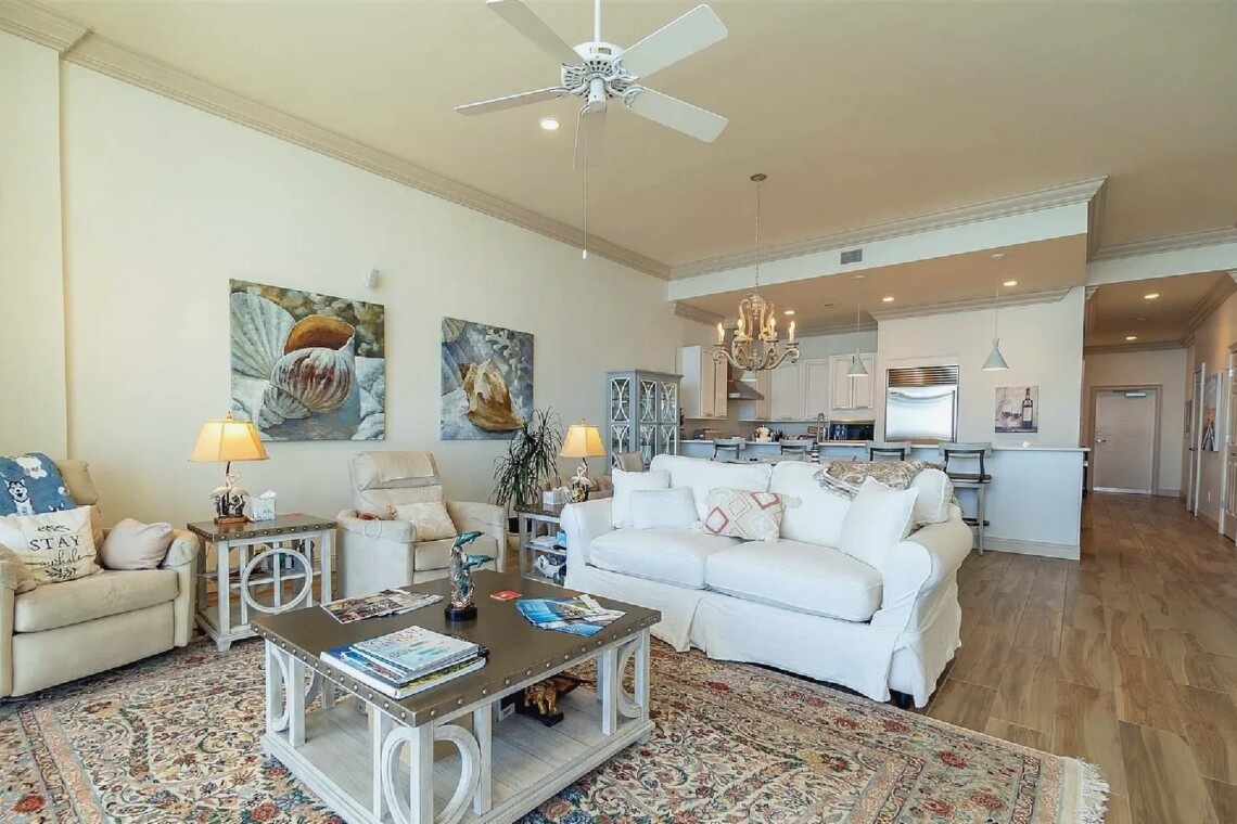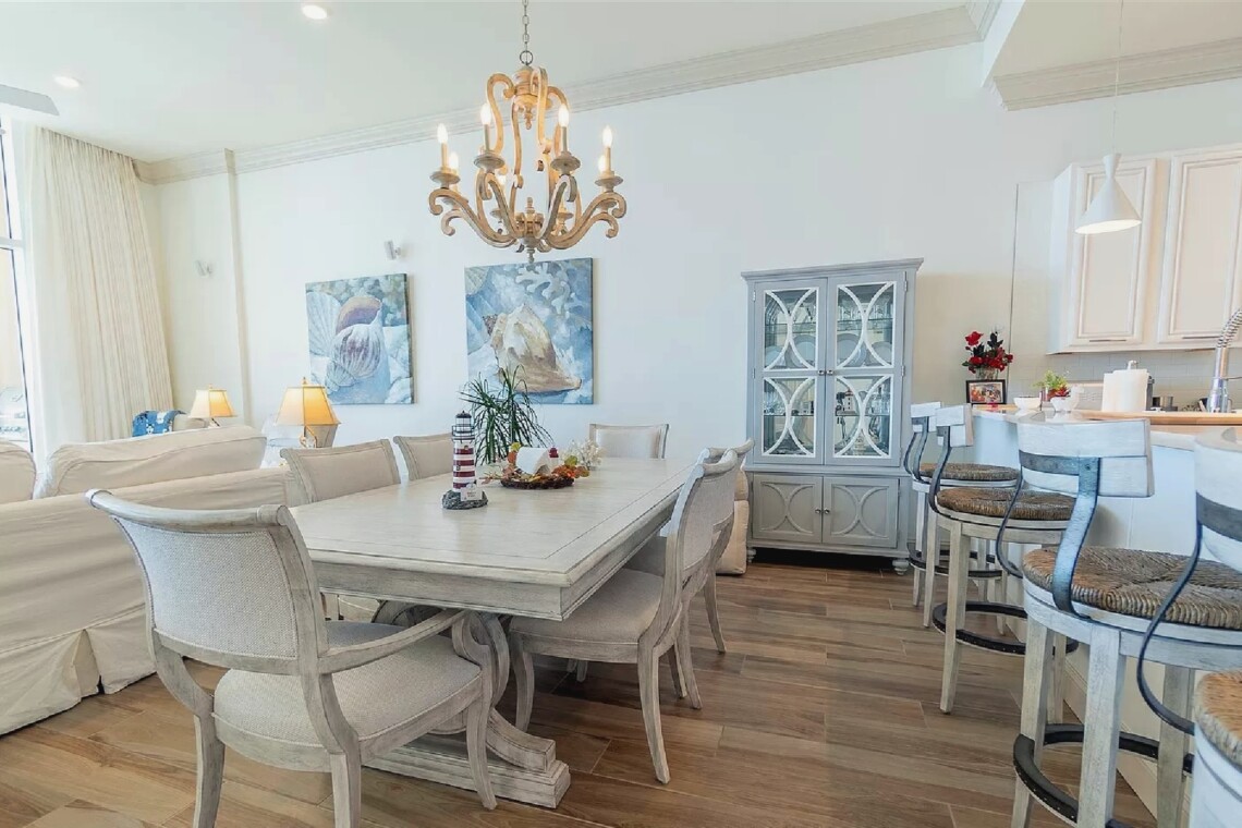 This three bedroom, four bathroom penthouse offers over 2,000 square feet of refined living space with twelve-foot ceilings, floor-to-ceiling glass, and sweeping views of the Gulf and National Seashore. The open layout includes a chef’s kitchen with Wolf appliances, quartz countertops, and high-end finishes throughout, while the spacious outdoor terrace with gas grill provides an ideal setting for entertaining. Located in a gated, low-density community with indoor and outdoor pools, a fitness center, and direct access to a quiet beach, this residence delivers an exclusive coastal retreat with both privacy and luxury.