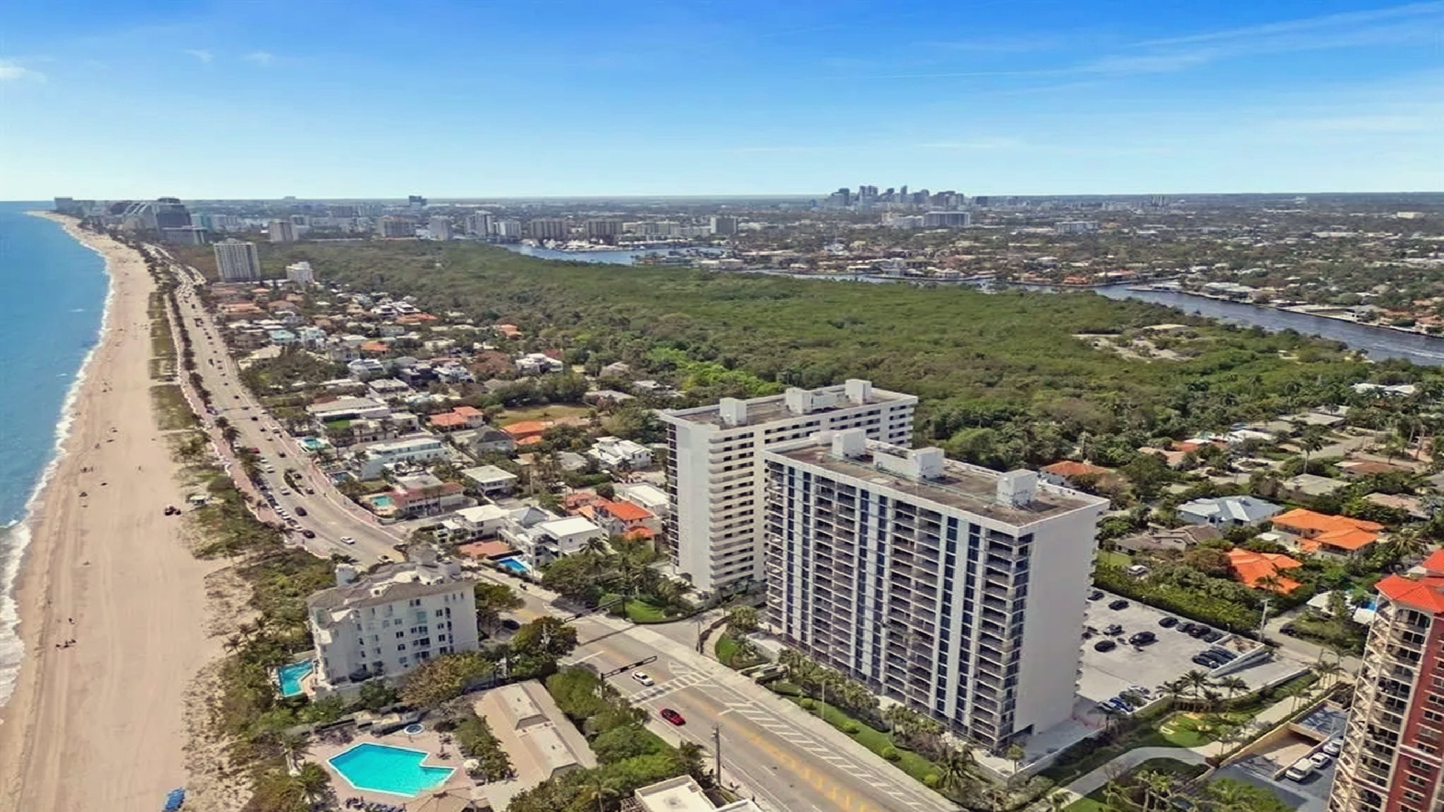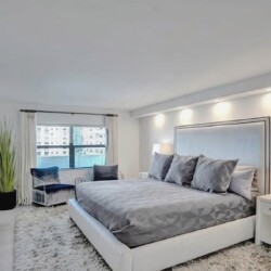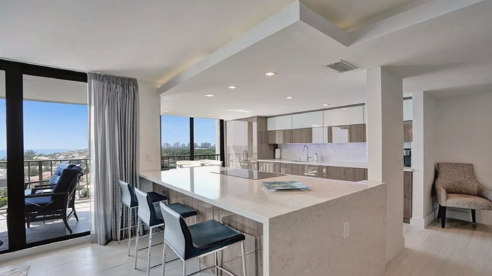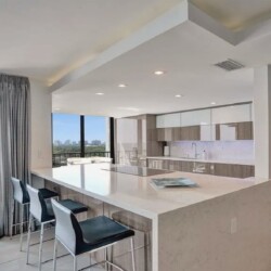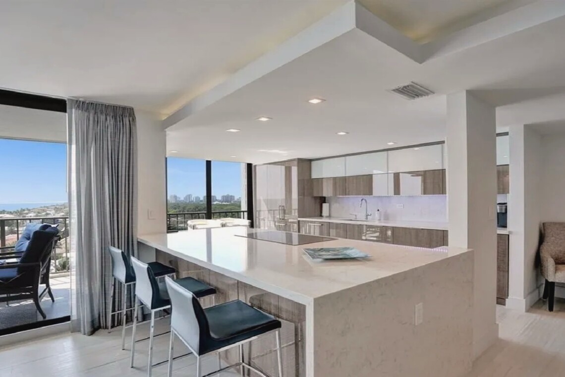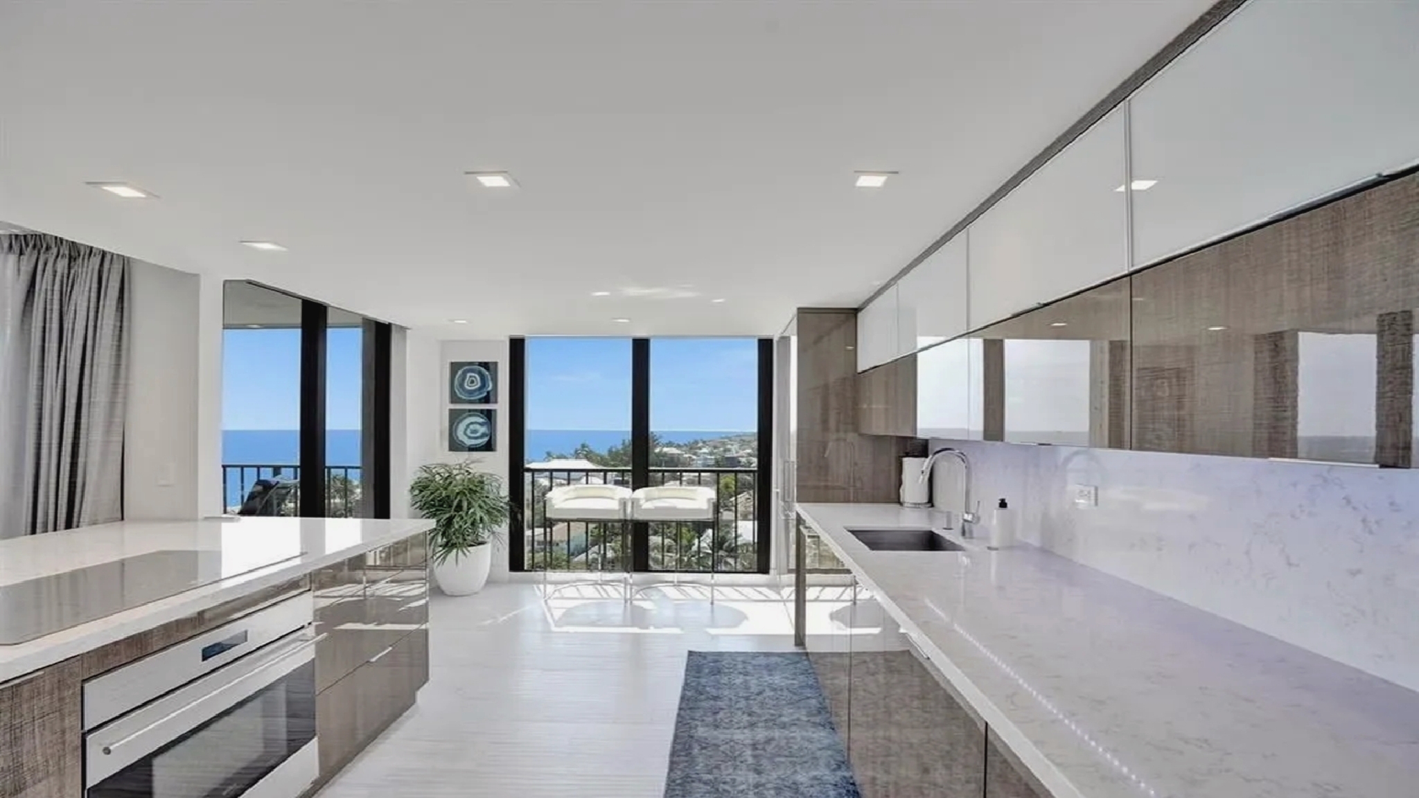 This two bedroom, two bathroom apartment offers 1,500 square feet of comfortable living with sweeping views of the ocean, Fort Lauderdale skyline, and Hugh Birch Park from a south-facing terrace designed for year-round enjoyment. The renovated kitchen features quartz counters, premium Thermador appliances, and built-in Gaggenau wine coolers, while both bedrooms include en-suite baths and custom closets for convenience. Guests can take advantage of resort-style amenities at The Shore Club, including a beachfront complex with heated pool, spa, gym, grill area, and direct beach access with chairs and umbrellas provided, making this residence a stylish and relaxing coastal escape.