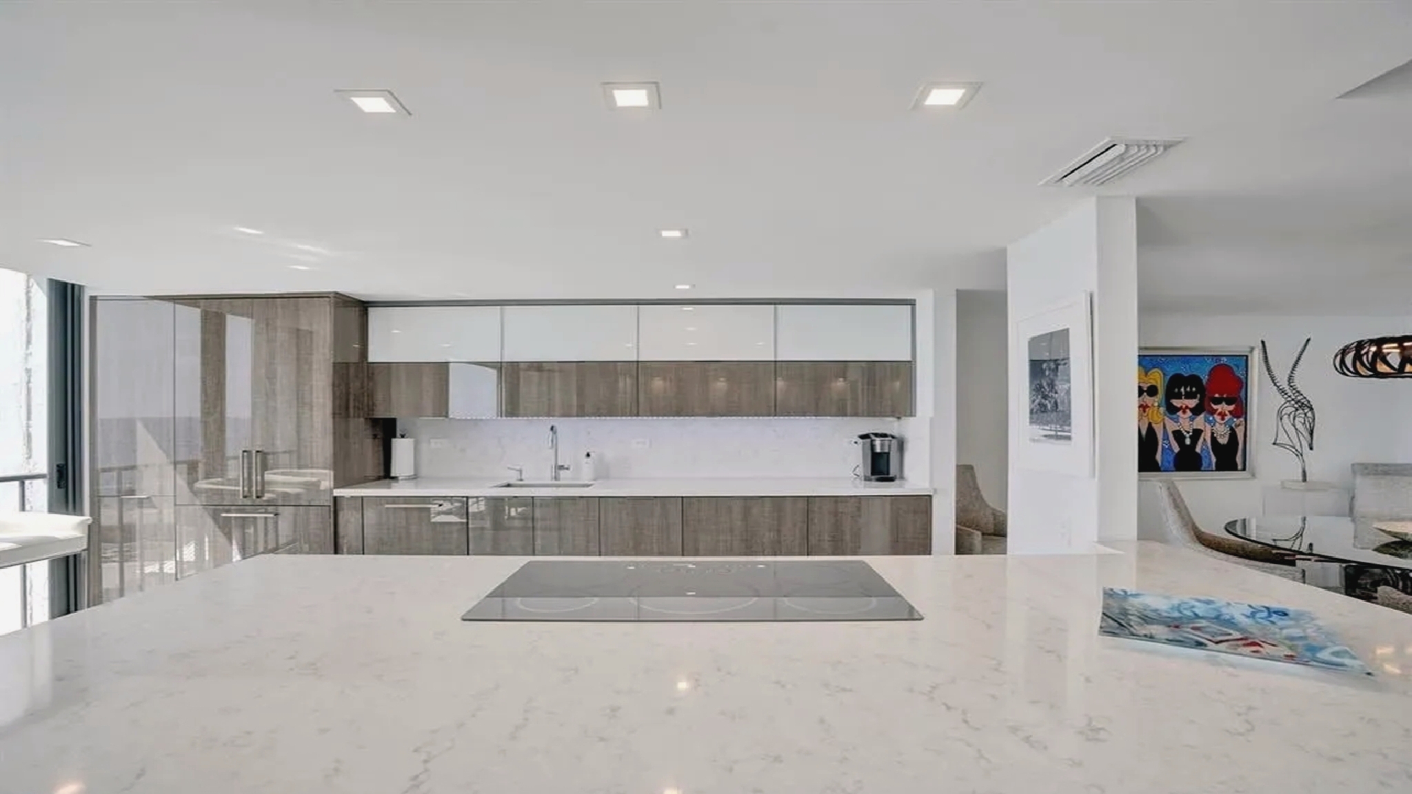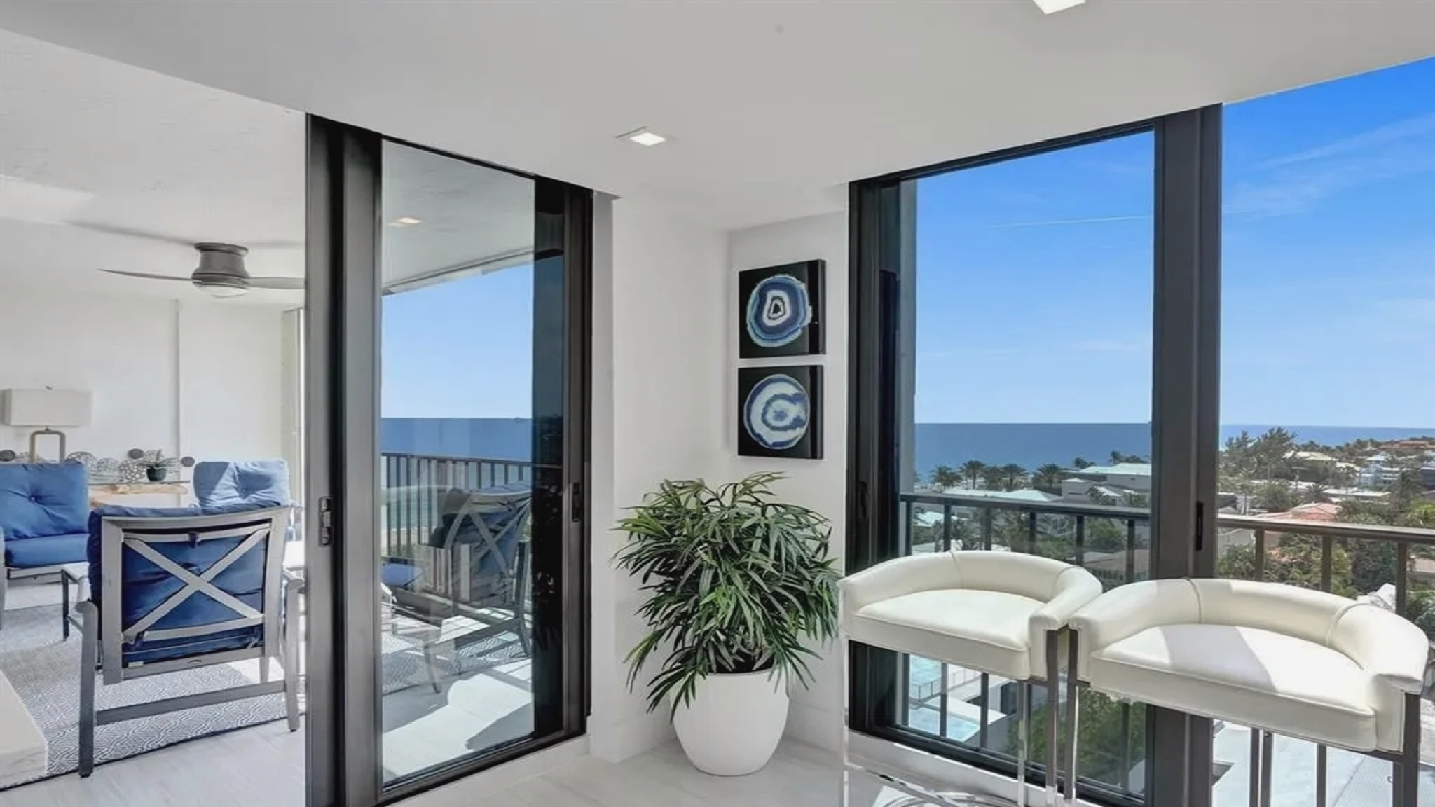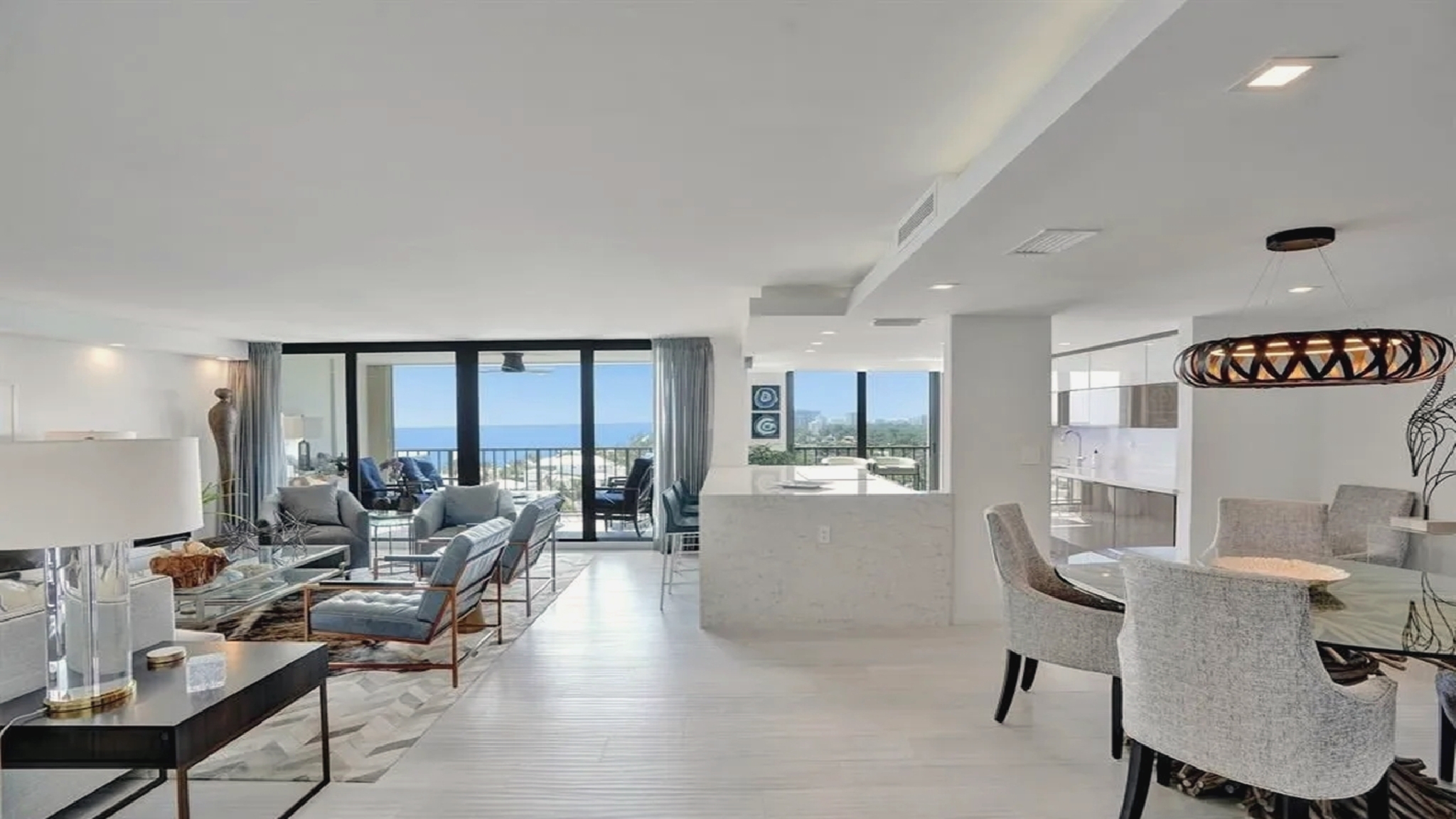 This two bedroom, two bathroom apartment offers 1,500 square feet of comfortable living with sweeping views of the ocean, Fort Lauderdale skyline, and Hugh Birch Park from a south-facing terrace designed for year-round enjoyment. The renovated kitchen features quartz counters, premium Thermador appliances, and built-in Gaggenau wine coolers, while both bedrooms include en-suite baths and custom closets for convenience. Guests can take advantage of resort-style amenities at The Shore Club, including a beachfront complex with heated pool, spa, gym, grill area, and direct beach access with chairs and umbrellas provided, making this residence a stylish and relaxing coastal escape.