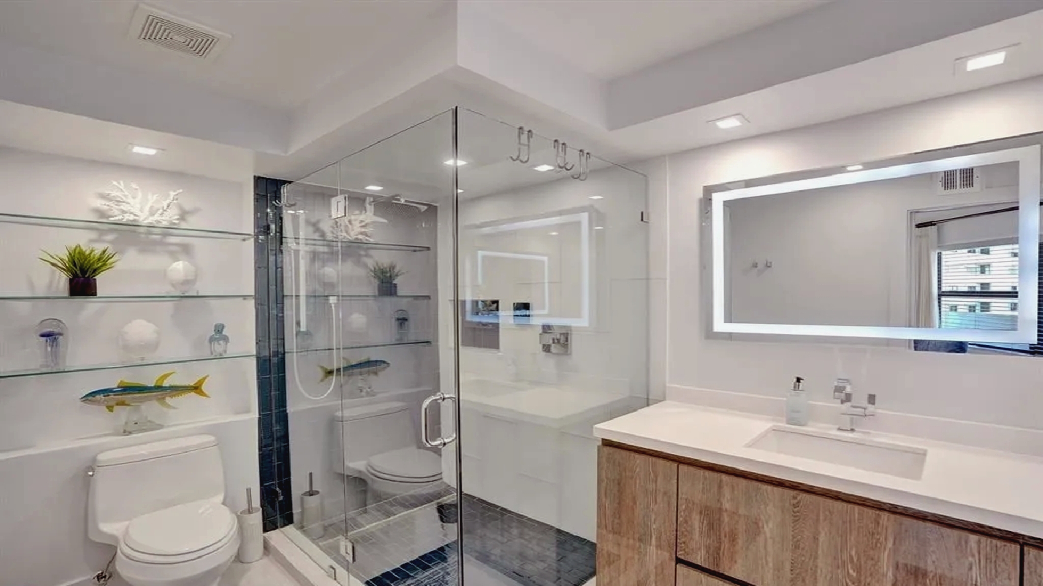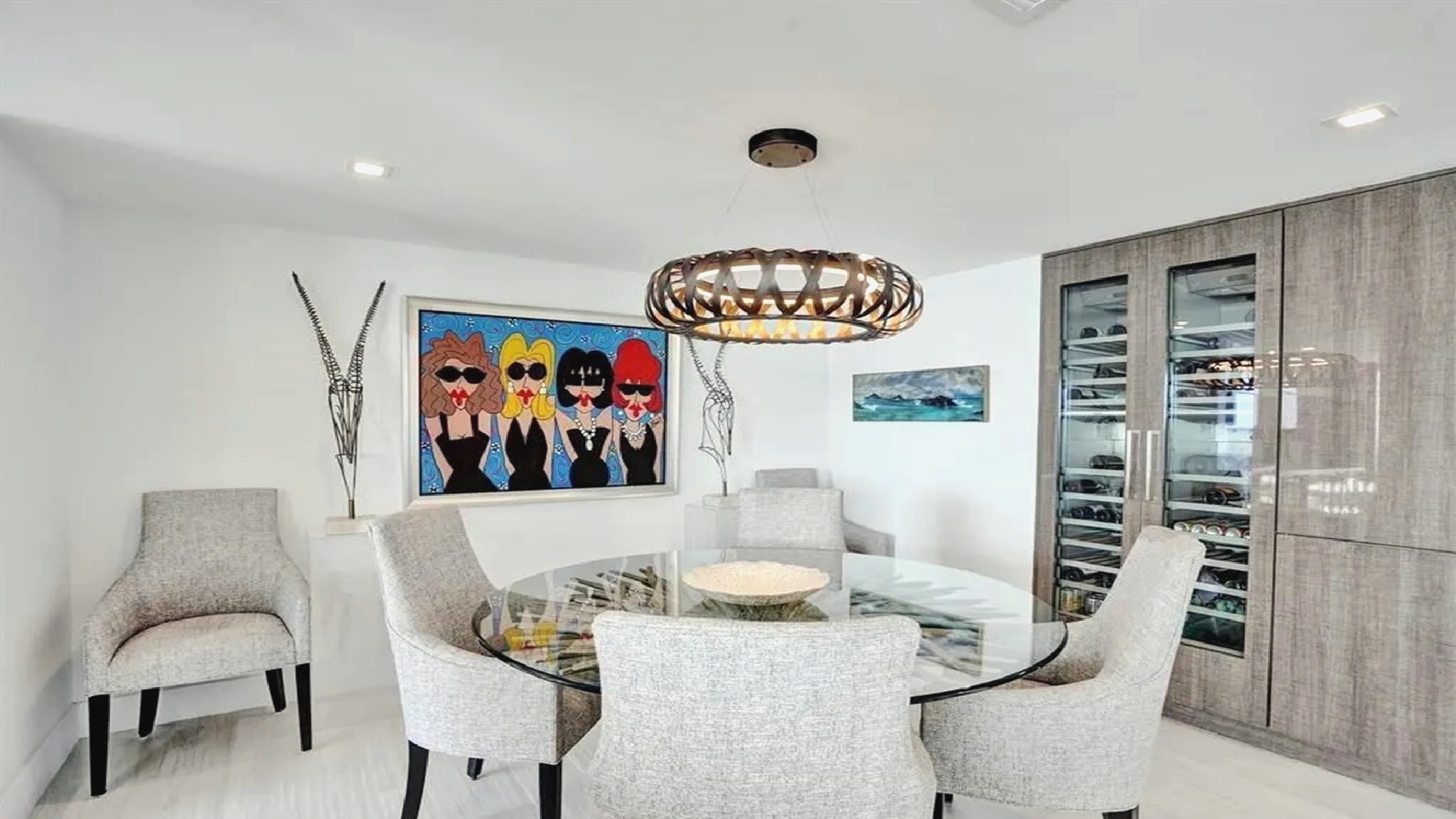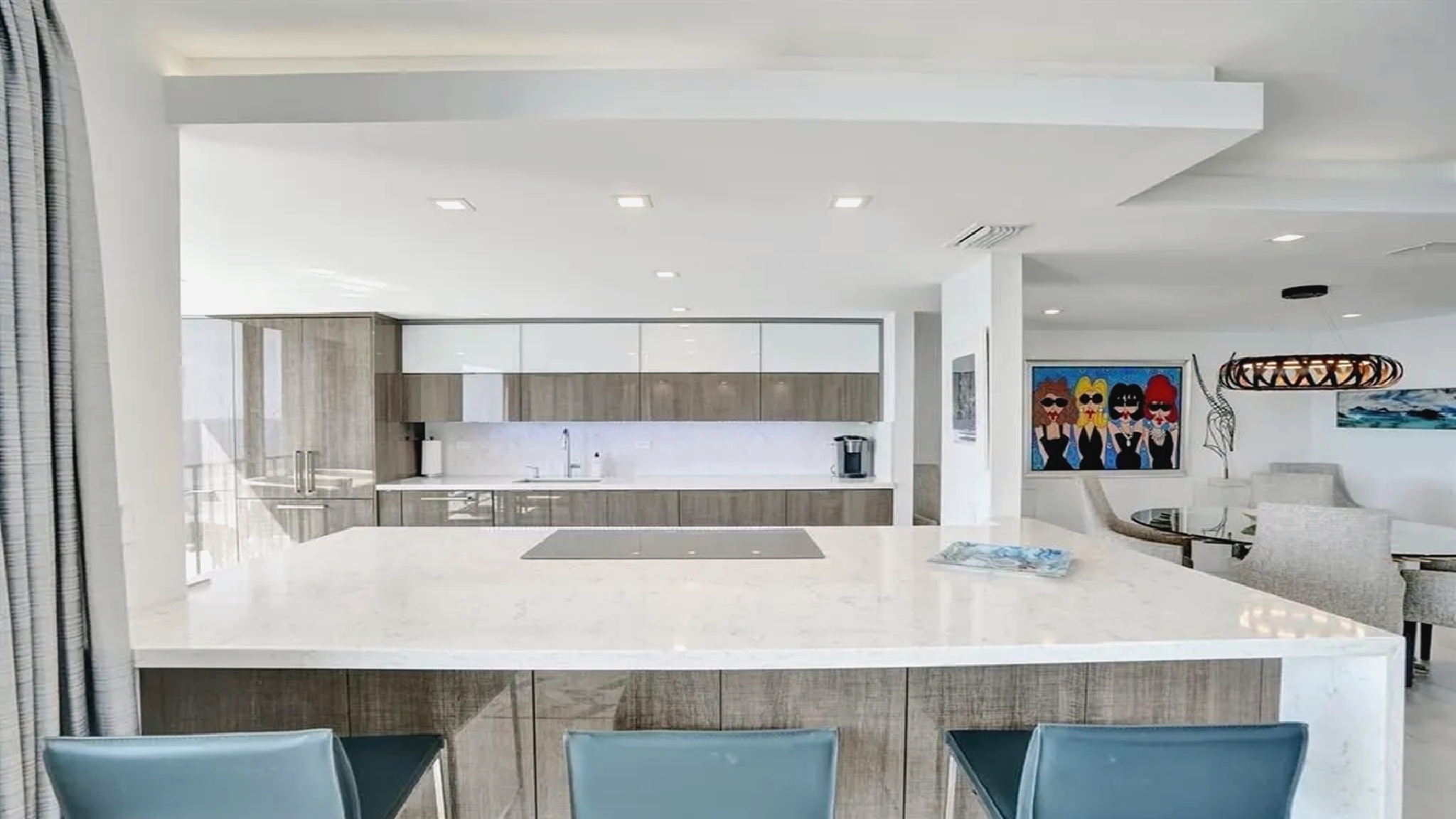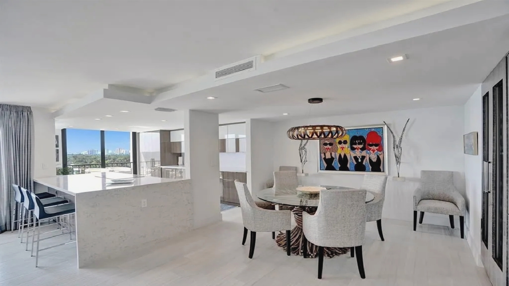 This two bedroom, two bathroom apartment offers 1,500 square feet of comfortable living with sweeping views of the ocean, Fort Lauderdale skyline, and Hugh Birch Park from a south-facing terrace designed for year-round enjoyment. The renovated kitchen features quartz counters, premium Thermador appliances, and built-in Gaggenau wine coolers, while both bedrooms include en-suite baths and custom closets for convenience. Guests can take advantage of resort-style amenities at The Shore Club, including a beachfront complex with heated pool, spa, gym, grill area, and direct beach access with chairs and umbrellas provided, making this residence a stylish and relaxing coastal escape.
