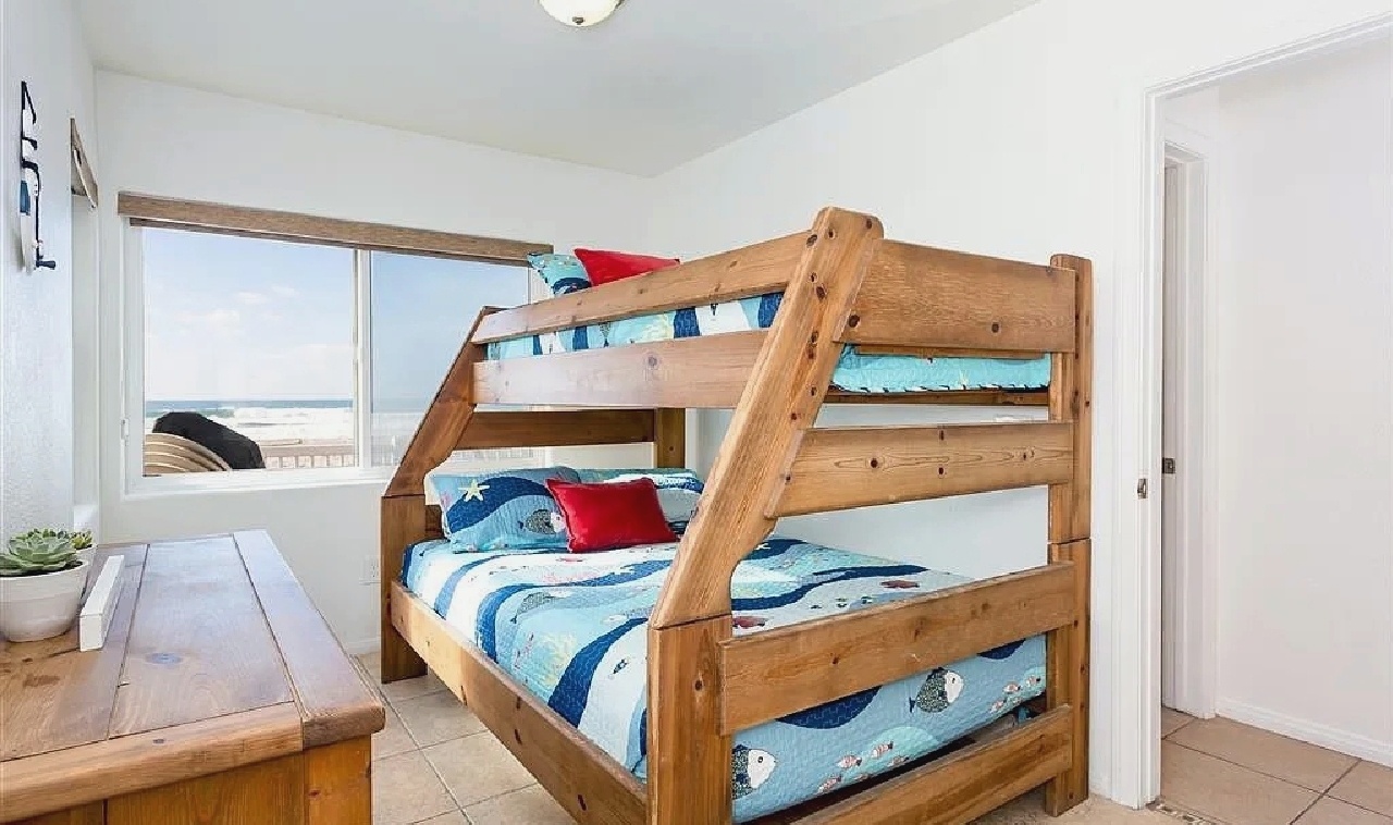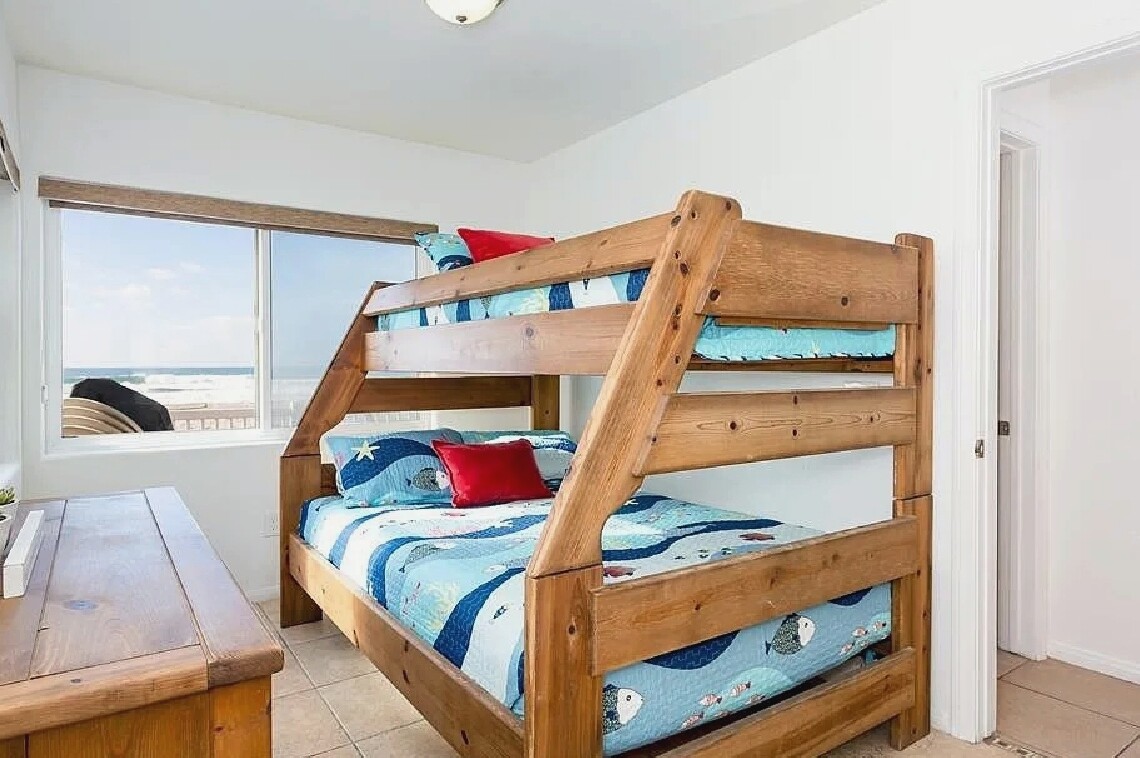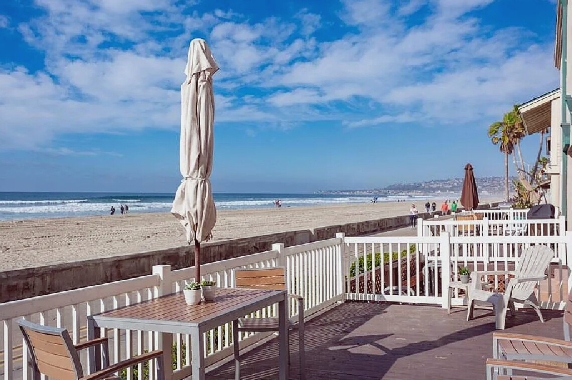 This two bedroom, one bathroom oceanfront condo offers 607 square feet of living space with sweeping views from the living room, bedroom, and private deck overlooking the beach. Fully furnished and turnkey, the residence includes a modern kitchen with dishwasher and in-unit laundry. Located within walking distance of Belmont Park, local restaurants, shops, and the bayside, this property combines comfort, convenience, and a prime beachfront setting in Mission Beach.