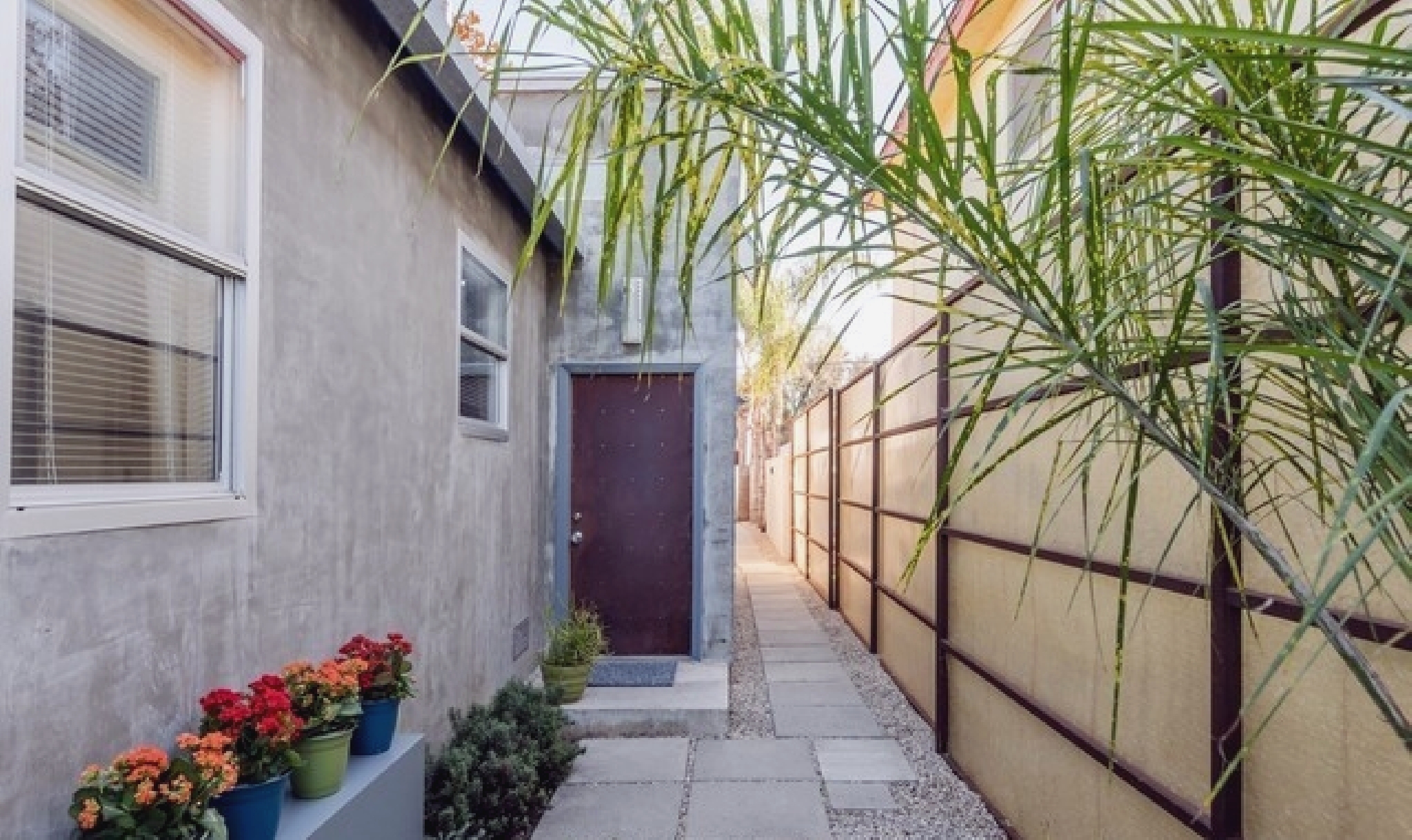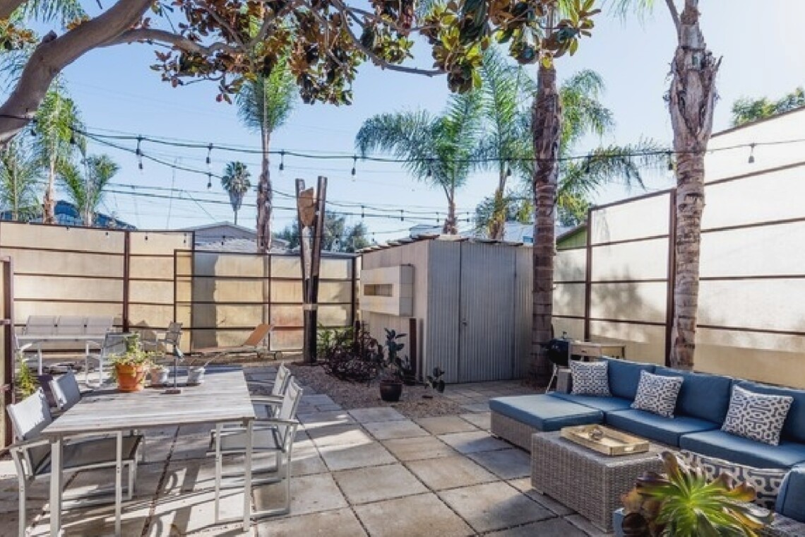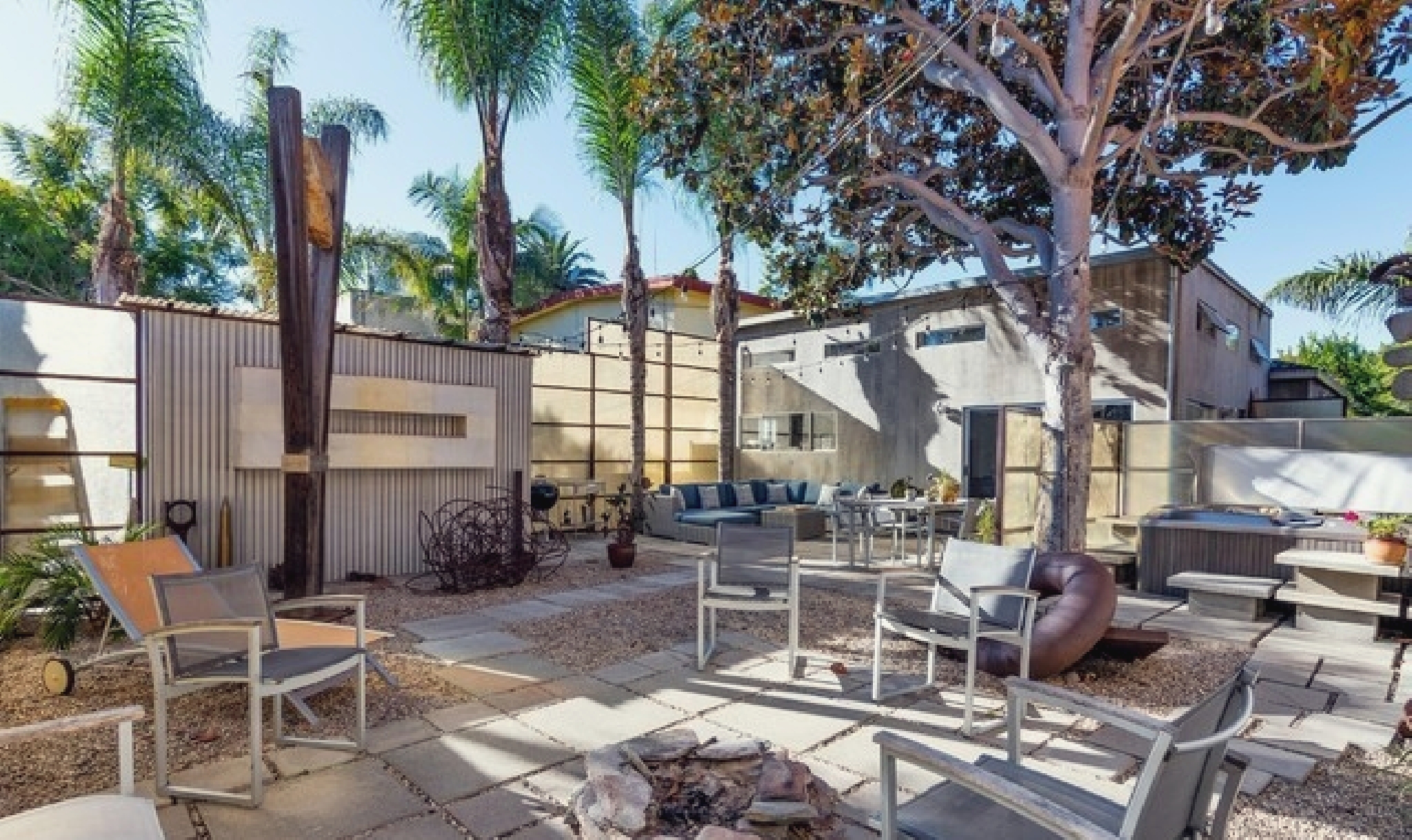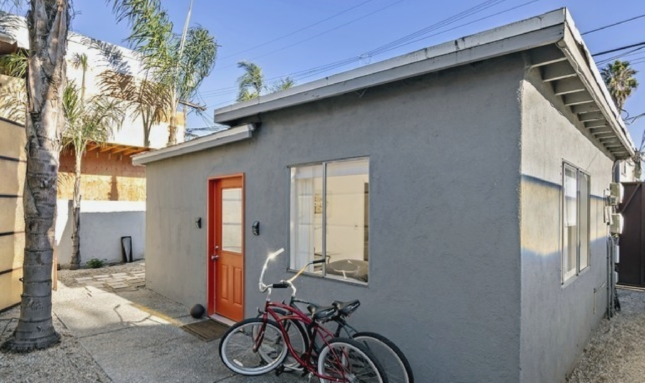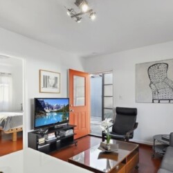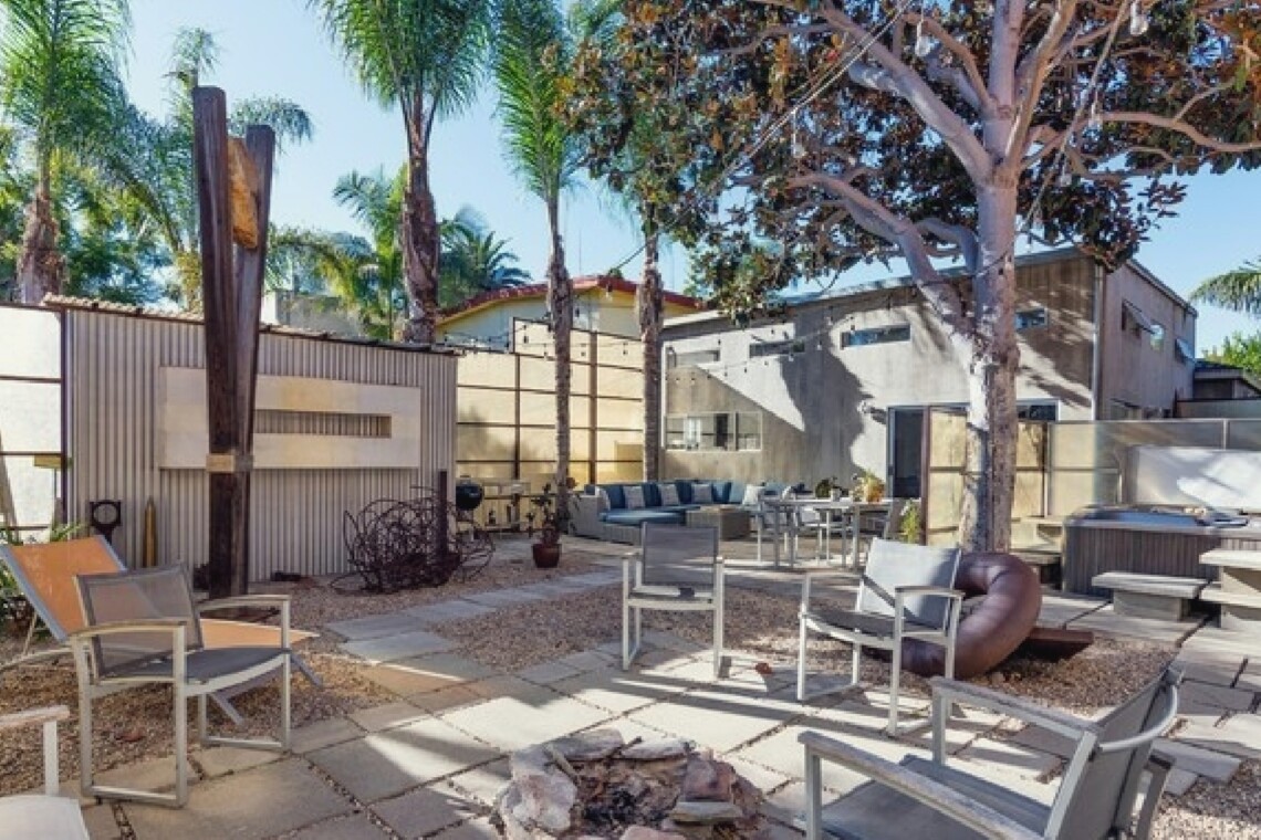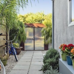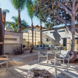 This gated Venice retreat offers a unique blend of indoor-outdoor living, featuring a main residence with soaring ceilings, polished concrete floors, and a seamless open layout. A detached guesthouse with its own private patio provides added flexibility for visitors or extended stays. Outdoor amenities include a Jacuzzi, shower, fire pit, and lush dining space, all set within a private garden oasis. Just blocks from the beach and moments from Abbot Kinney, the location places you at the center of Venice’s vibrant culture, dining, and shopping scene.