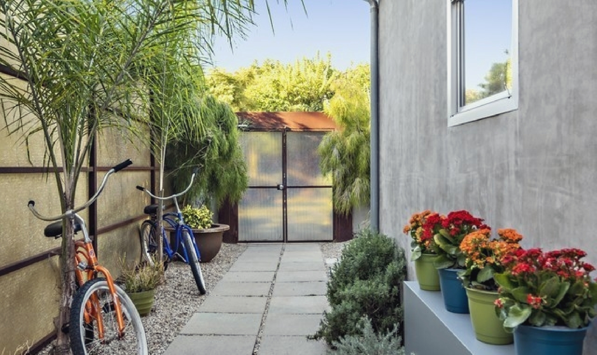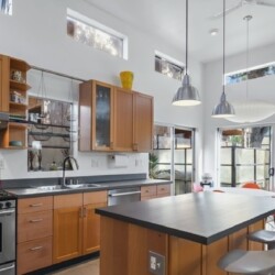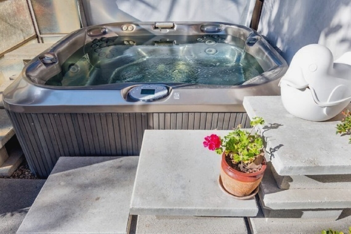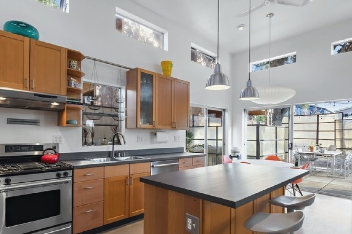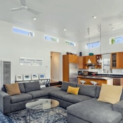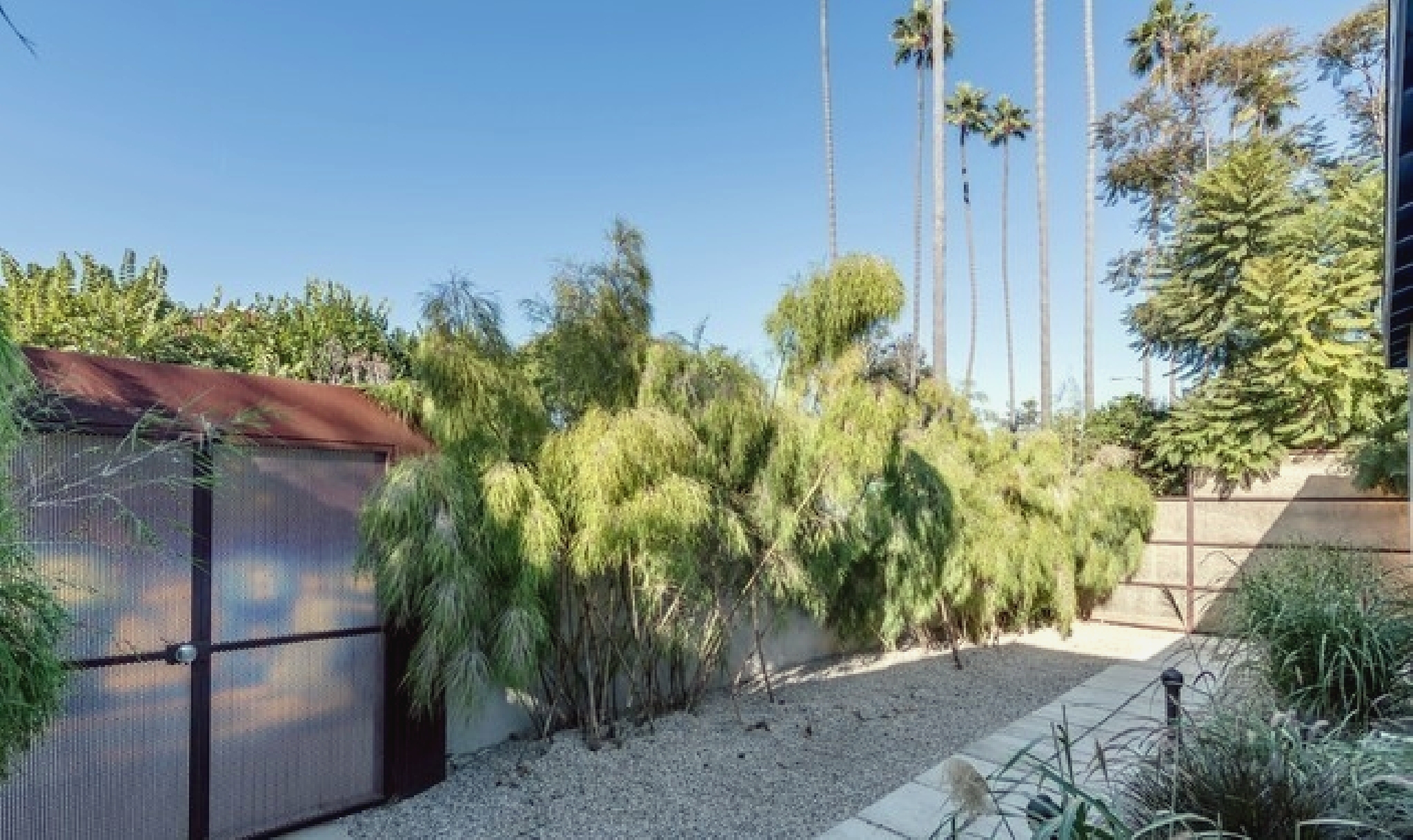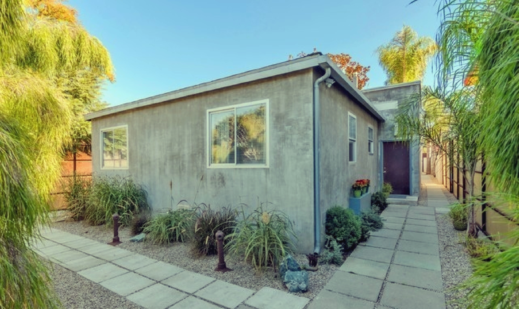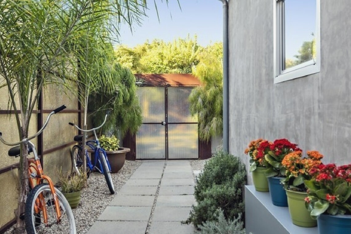 This gated Venice retreat offers a unique blend of indoor-outdoor living, featuring a main residence with soaring ceilings, polished concrete floors, and a seamless open layout. A detached guesthouse with its own private patio provides added flexibility for visitors or extended stays. Outdoor amenities include a Jacuzzi, shower, fire pit, and lush dining space, all set within a private garden oasis. Just blocks from the beach and moments from Abbot Kinney, the location places you at the center of Venice’s vibrant culture, dining, and shopping scene.