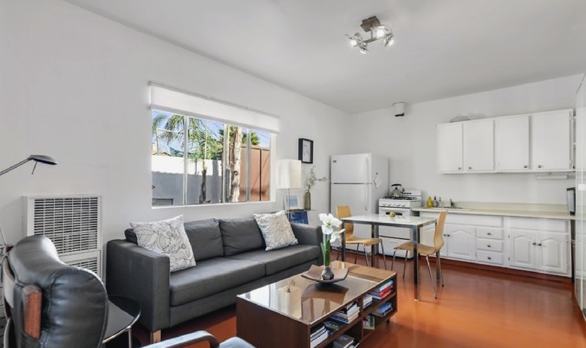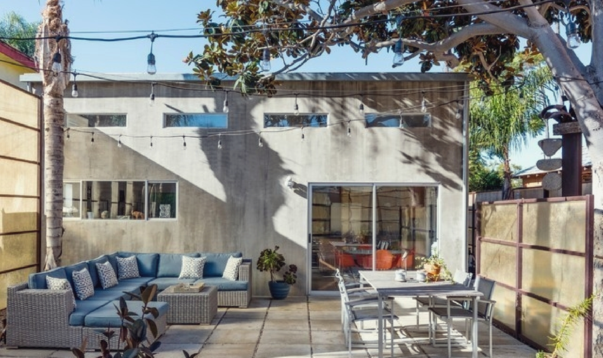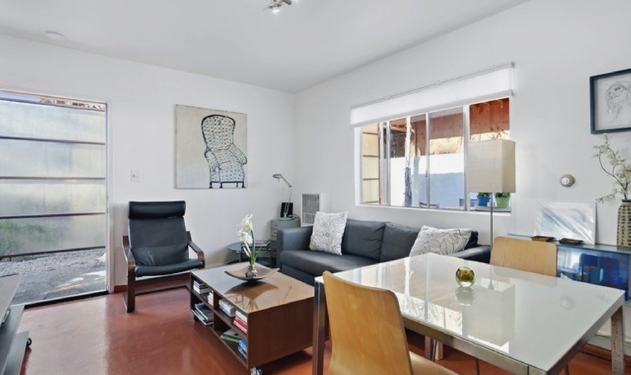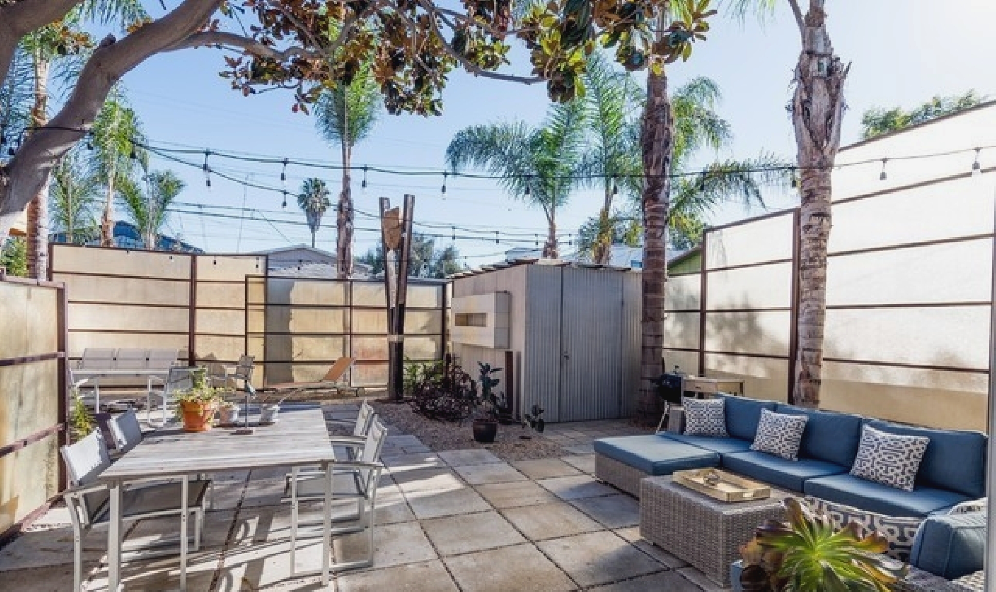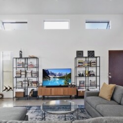 This gated Venice retreat offers a unique blend of indoor-outdoor living, featuring a main residence with soaring ceilings, polished concrete floors, and a seamless open layout. A detached guesthouse with its own private patio provides added flexibility for visitors or extended stays. Outdoor amenities include a Jacuzzi, shower, fire pit, and lush dining space, all set within a private garden oasis. Just blocks from the beach and moments from Abbot Kinney, the location places you at the center of Venice’s vibrant culture, dining, and shopping scene.