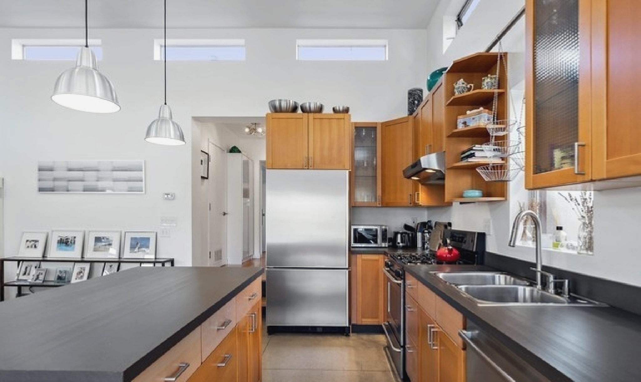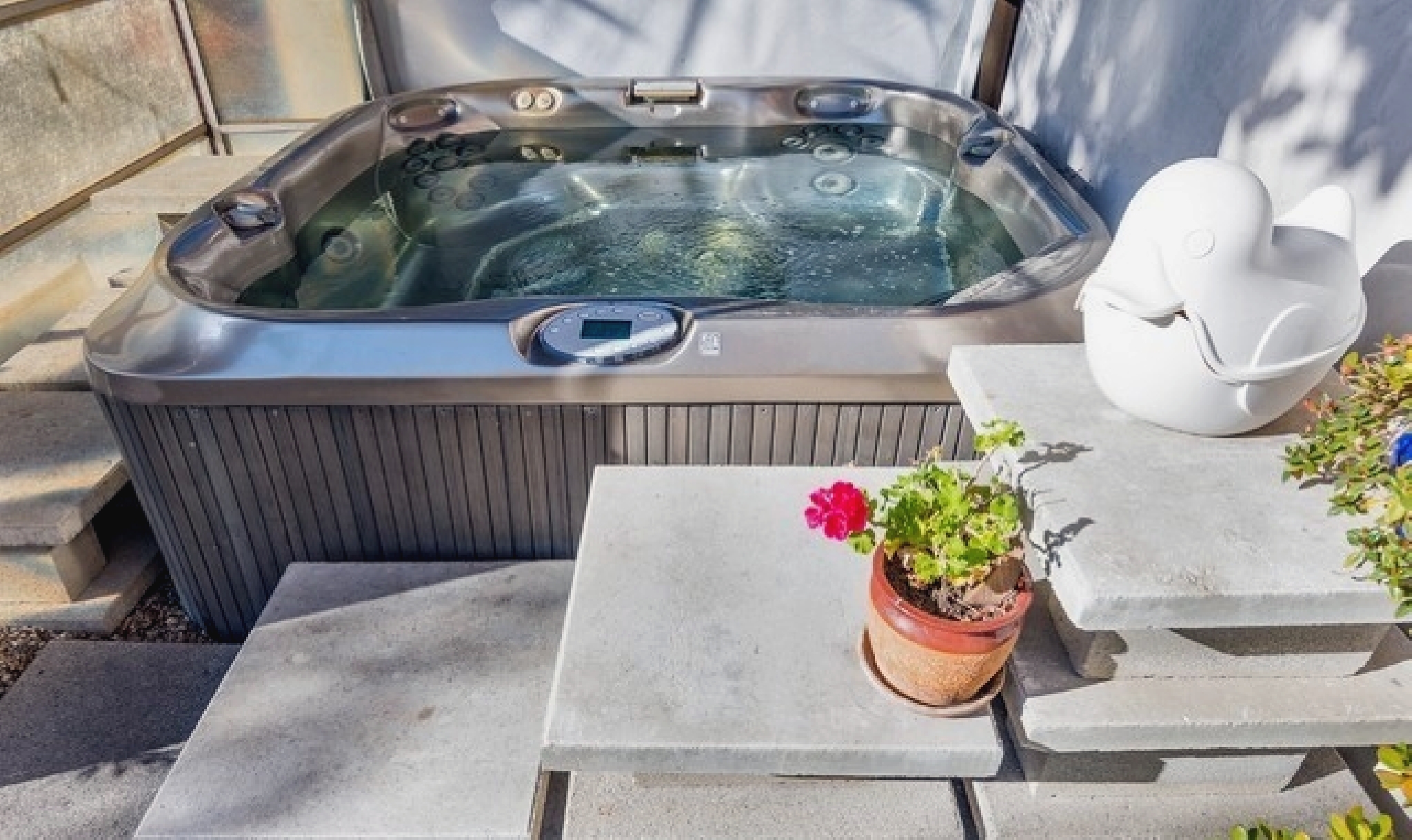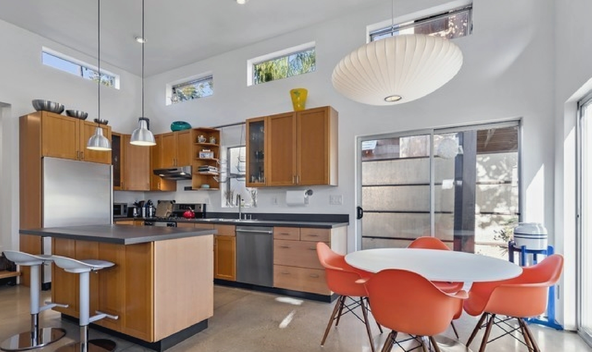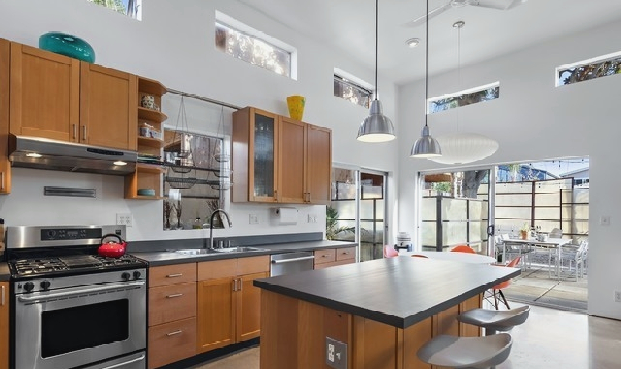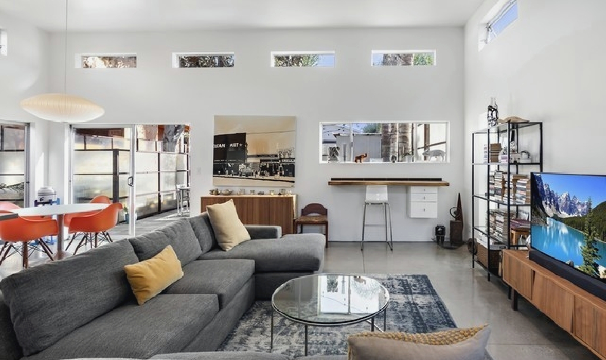 This gated Venice retreat offers a unique blend of indoor-outdoor living, featuring a main residence with soaring ceilings, polished concrete floors, and a seamless open layout. A detached guesthouse with its own private patio provides added flexibility for visitors or extended stays. Outdoor amenities include a Jacuzzi, shower, fire pit, and lush dining space, all set within a private garden oasis. Just blocks from the beach and moments from Abbot Kinney, the location places you at the center of Venice’s vibrant culture, dining, and shopping scene.
